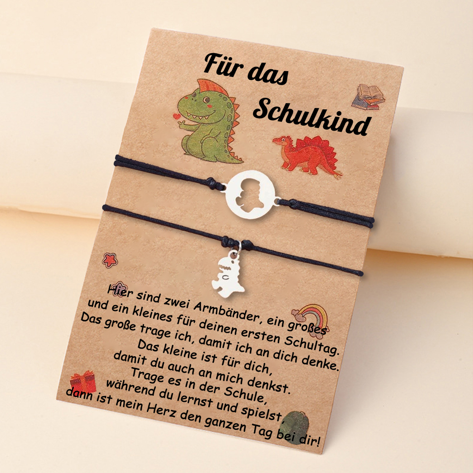 Dinos Armbänder Set mit 2 Ketten-Für das Schulkind Mein Herz den ganzen Tag bei dir-Schulanfang Geschenk mit Nachrichtenkarte