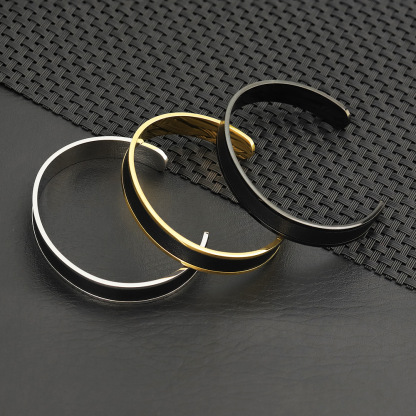 Dieses Armband versprüht mit seinem gradlinigen Design eine ungezwungene Eleganz und verleiht jedem Outfit eine gewisse Lässigkeit. Das offen gestaltete Armband aus silberglänzendem Edelstahl ist in verschiedenen Farben erhältlich.