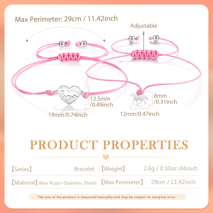Einhorn Armbänder Set mit 2 Ketten-Für das Schulkind Mein Herz den ganzen Tag bei dir-Schulanfang Geschenk mit Nachrichtenkarte