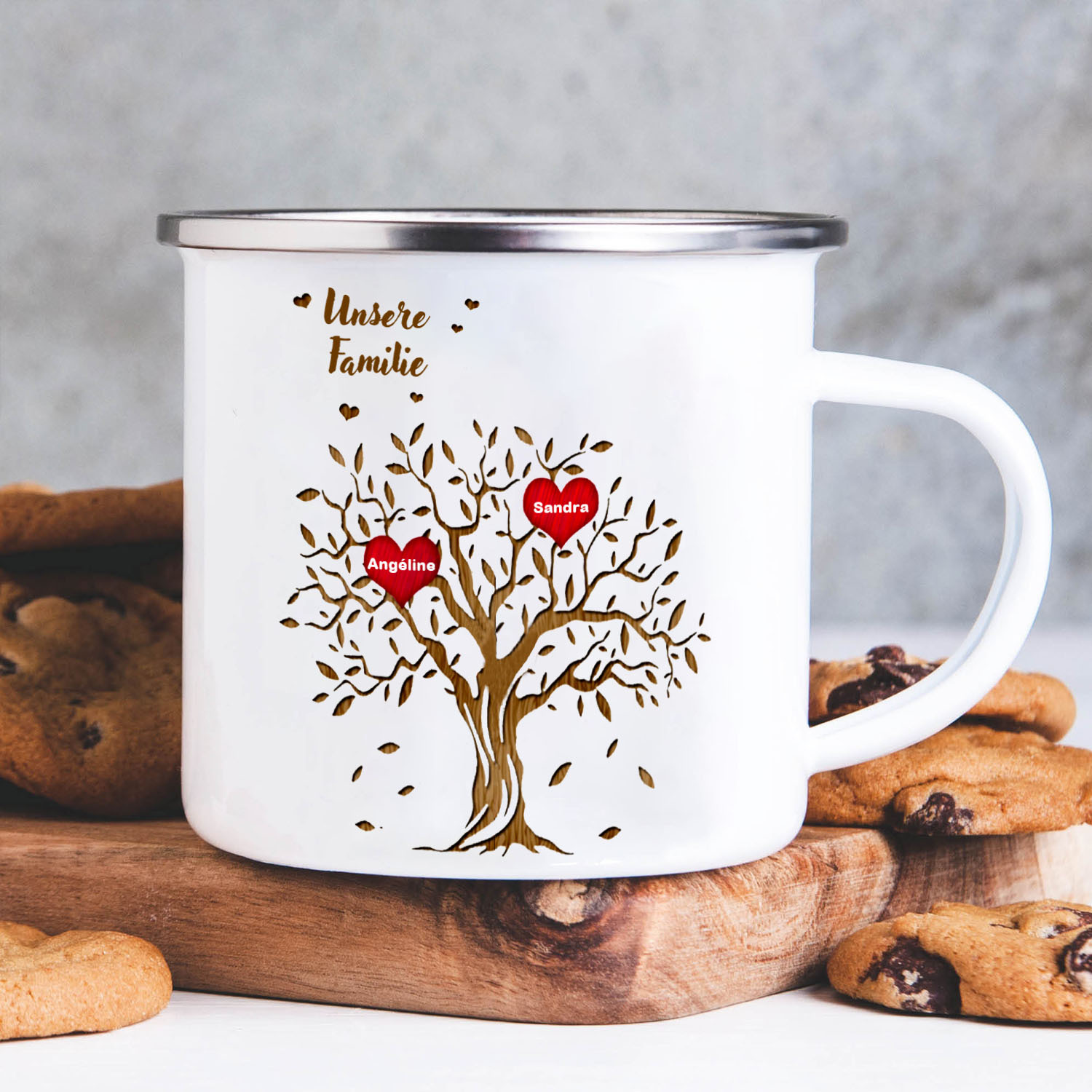 Emaille Tasse-Personalisierte 2 Namen & Text Familienstammbaum Emaille Becher