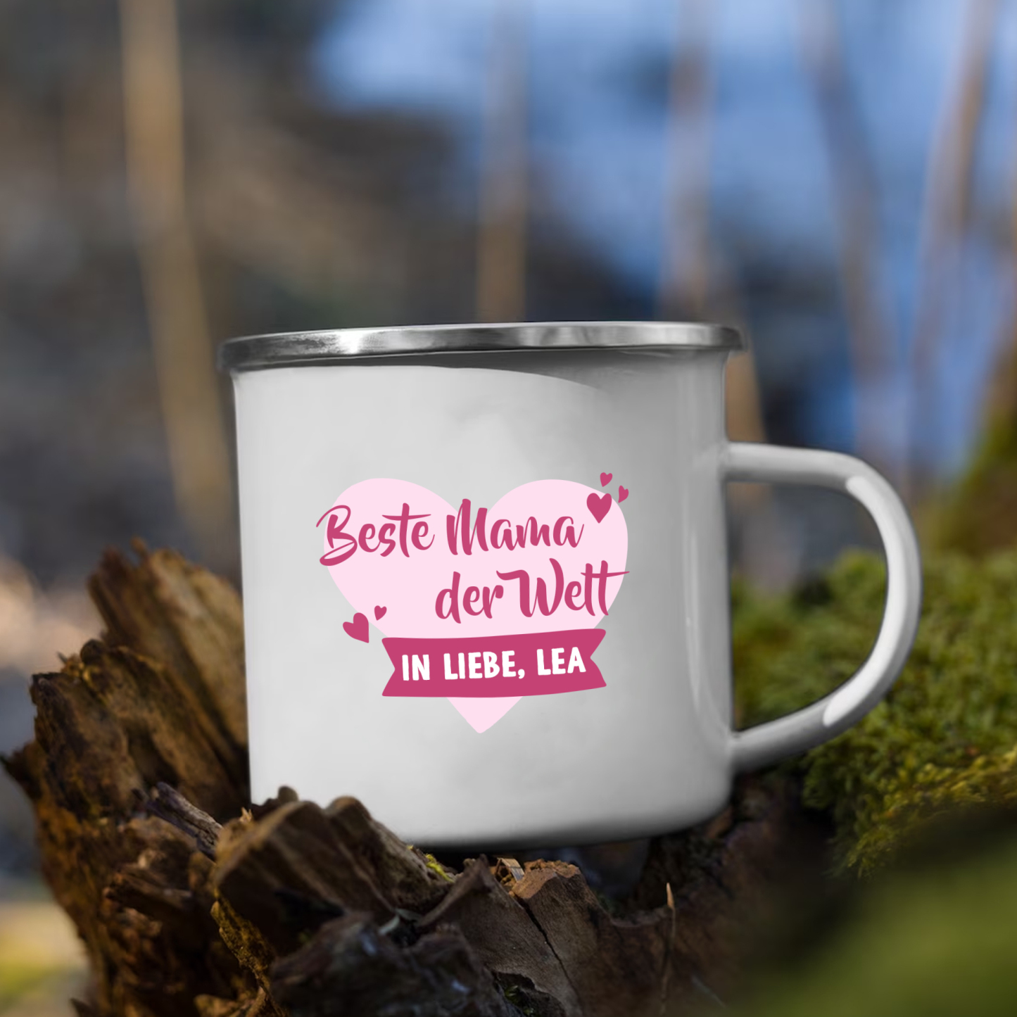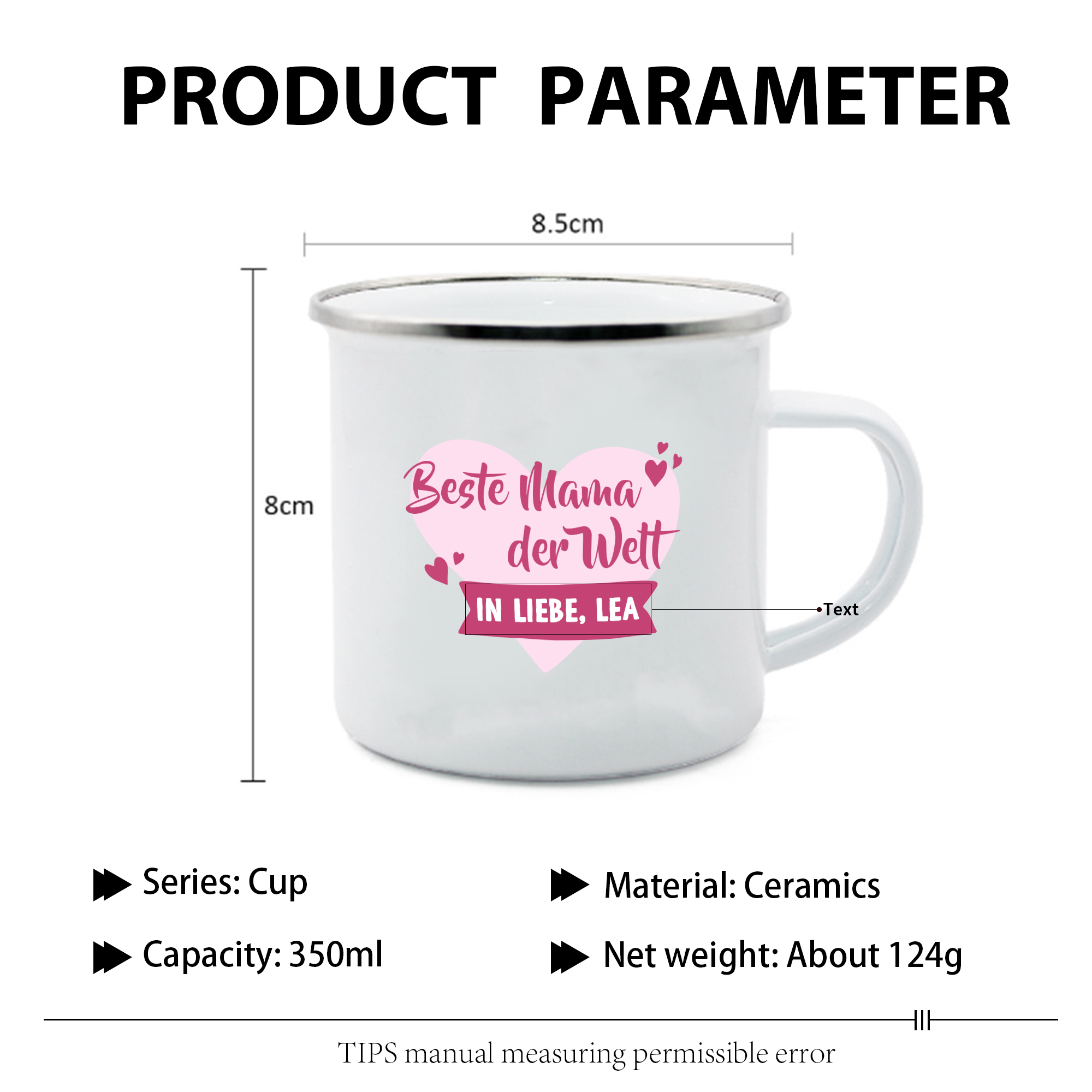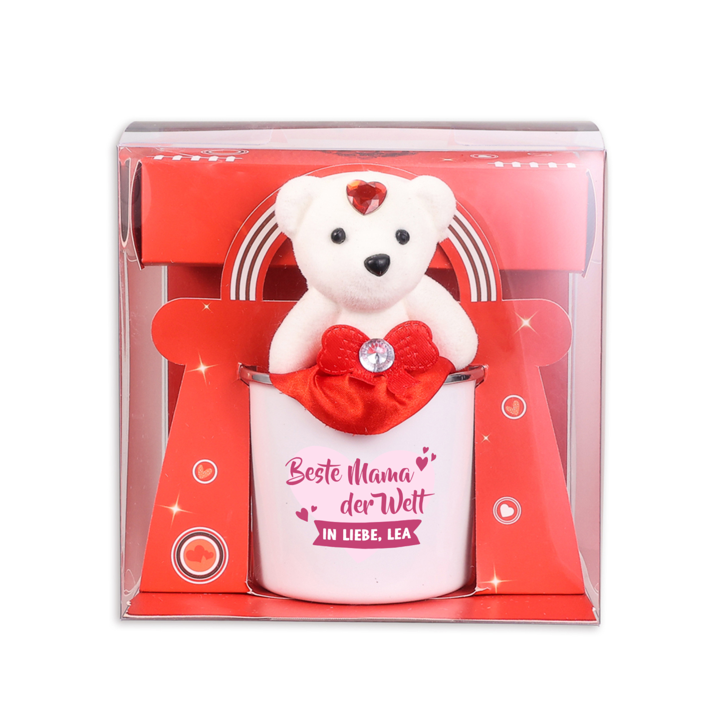 Emaille Tasse Geschenkpackung mit Bären Spielzeug-Personalisierter Text Emaille Becher-Geschenk für Mutter