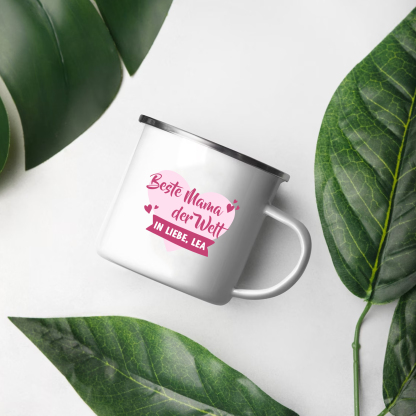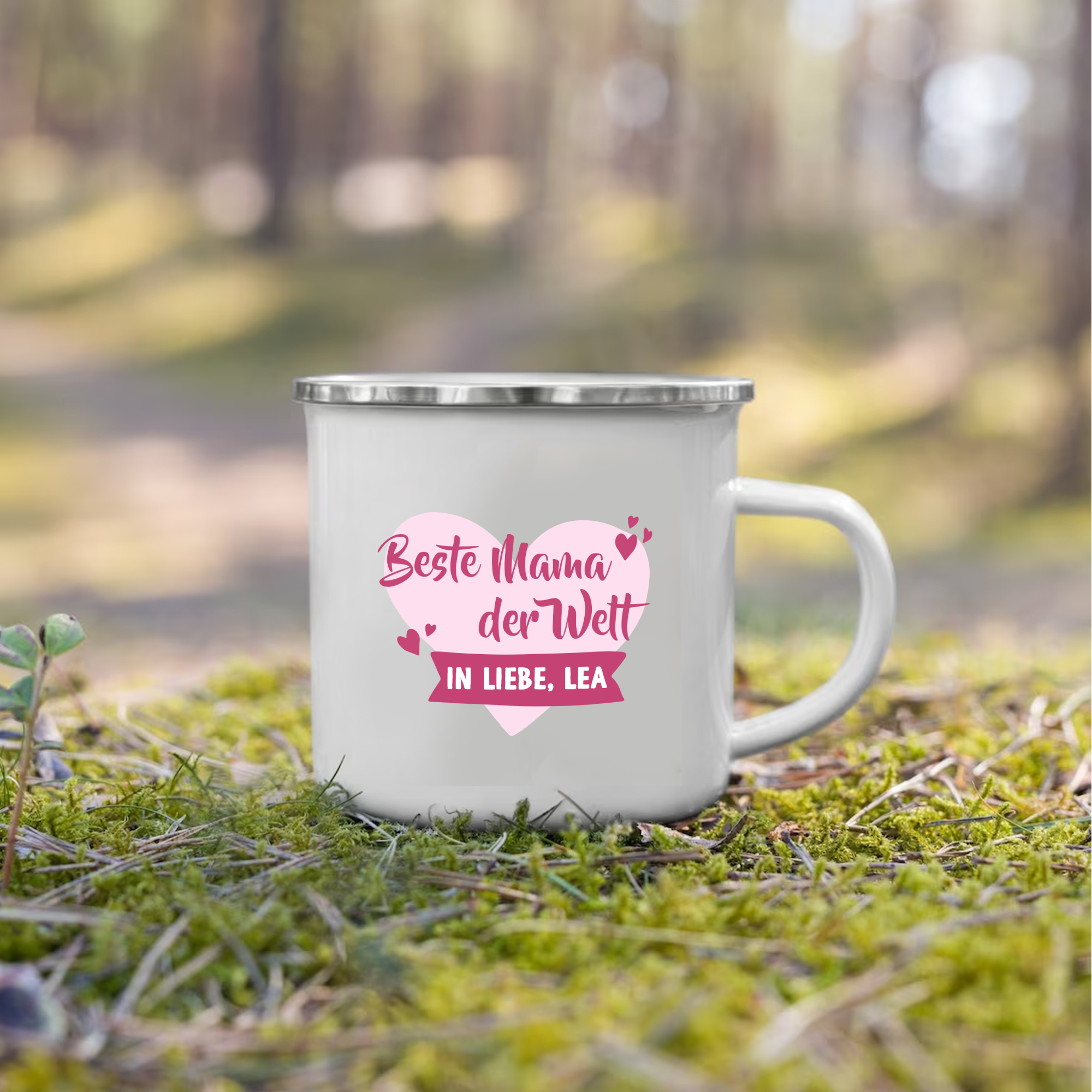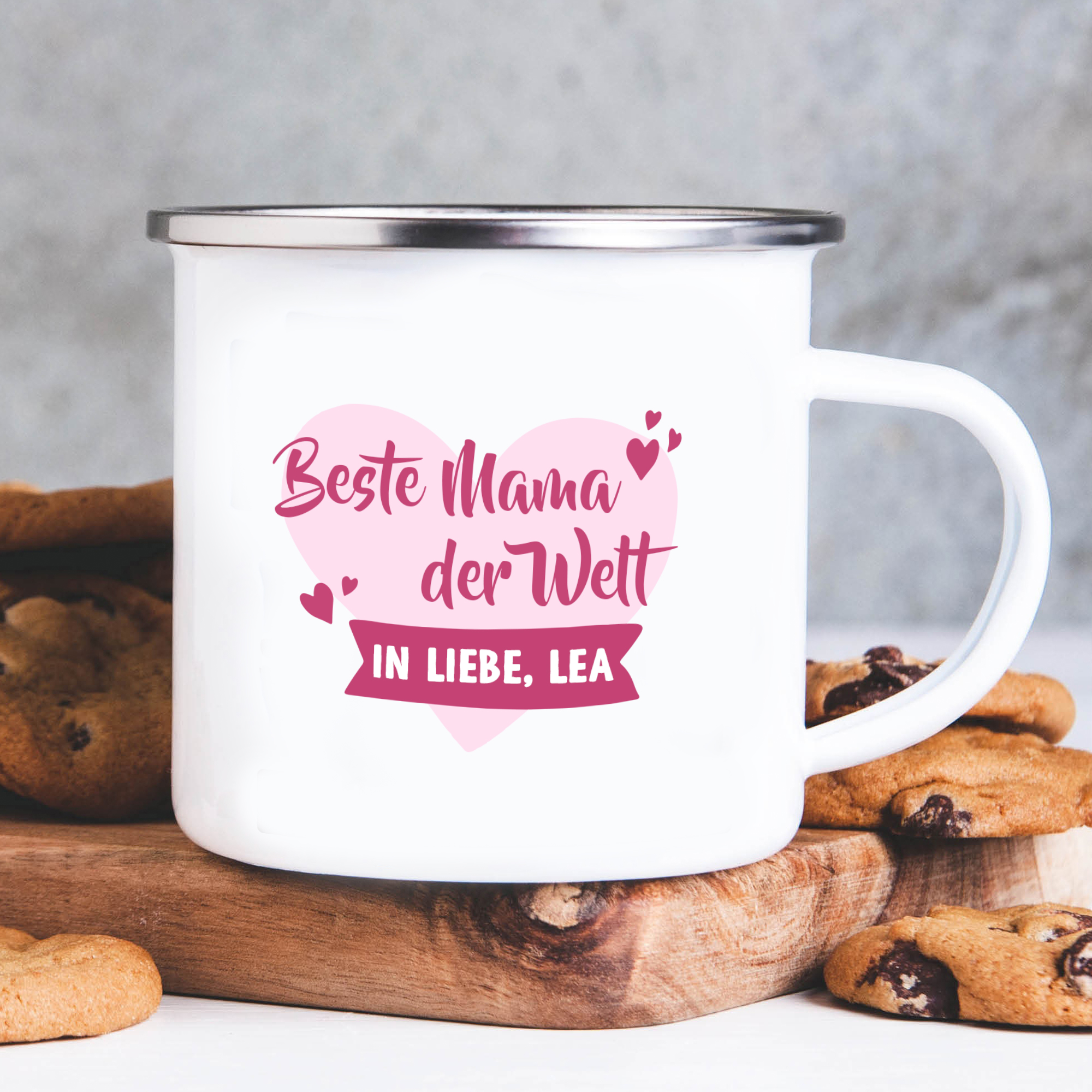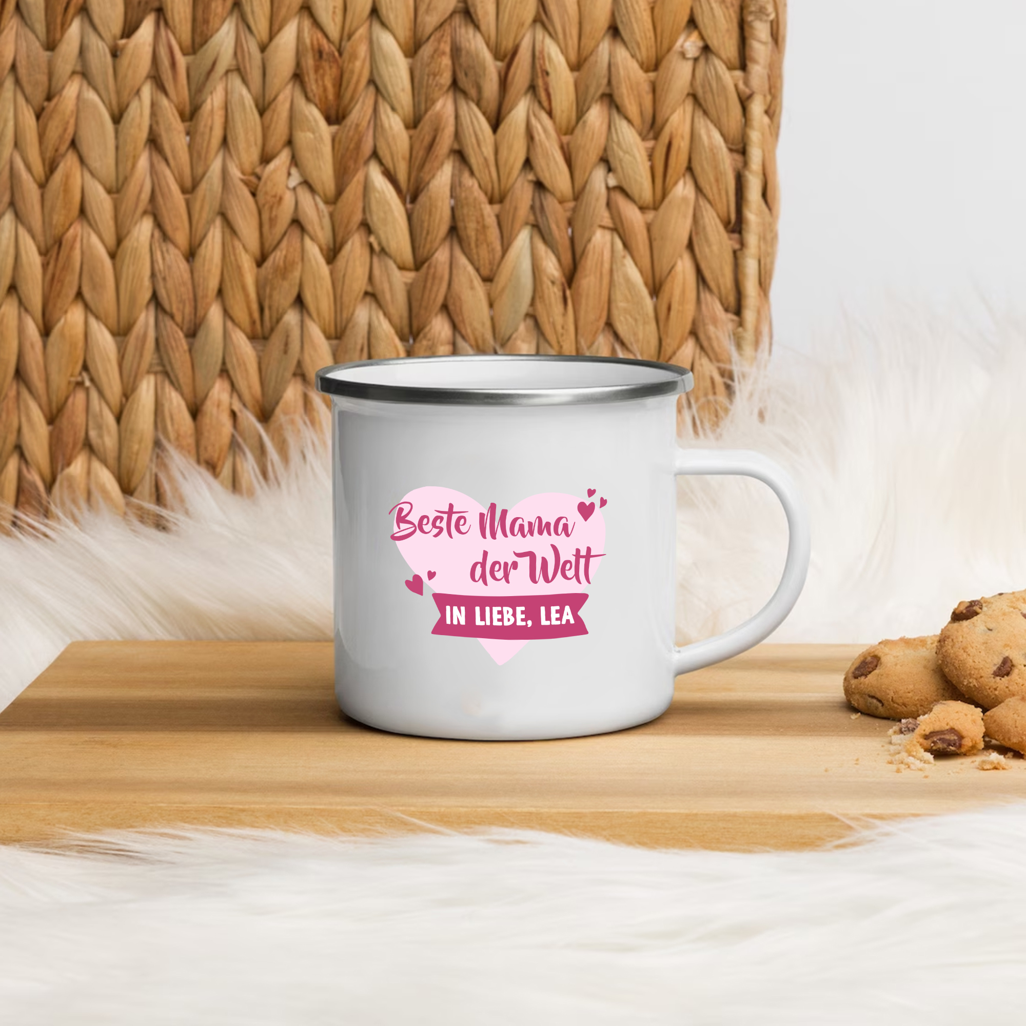 Emaille Tasse Geschenkpackung mit Bären Spielzeug-Personalisierter Text Emaille Becher-Geschenk für Mutter