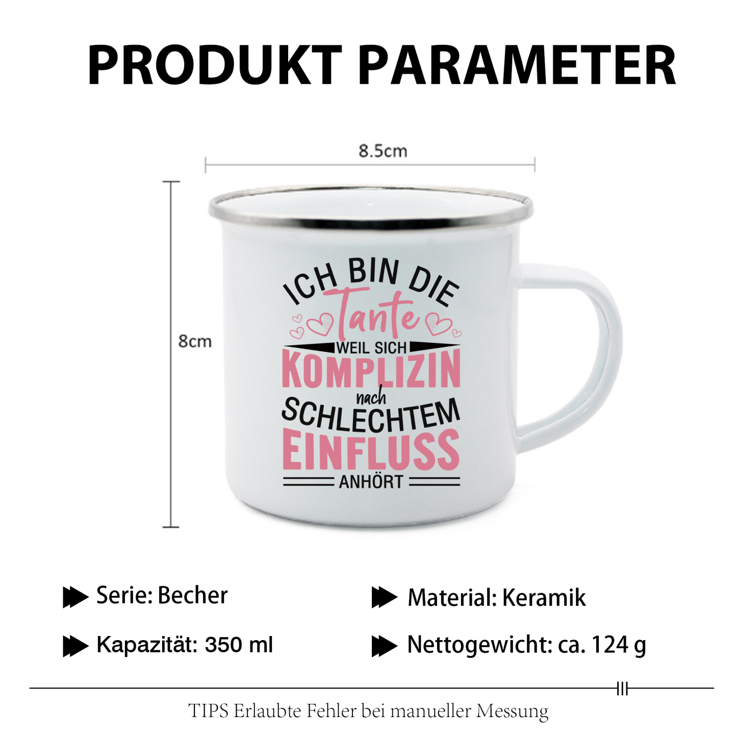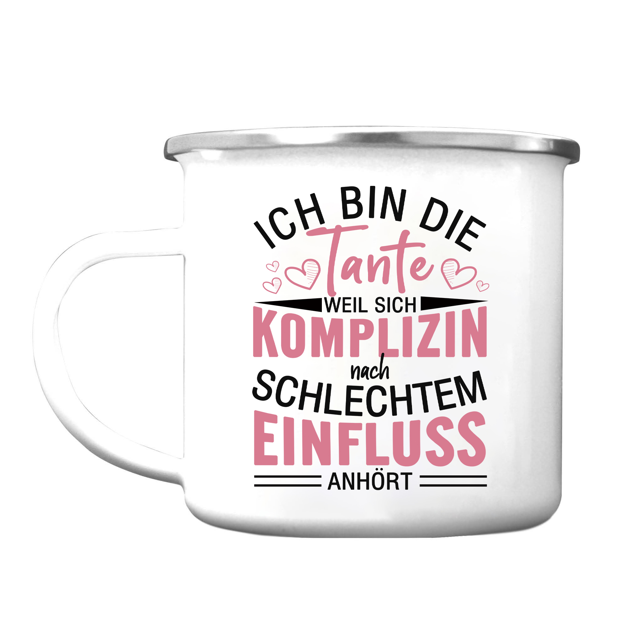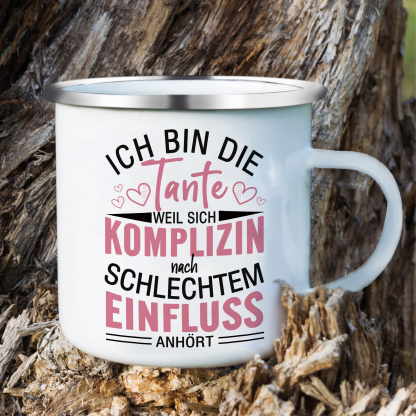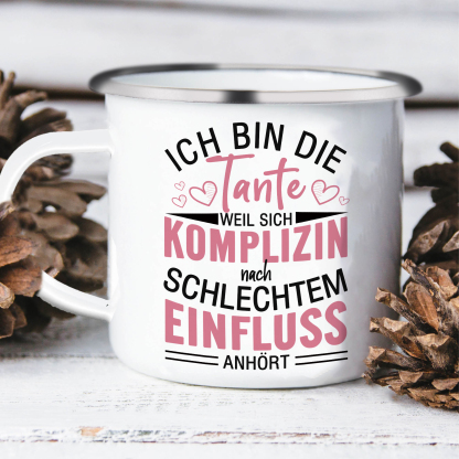 Emaille Tasse-Ich bin die Tante, weil sich komplizin nach Schlechtem Einfluss-Emaille Becher für Tante