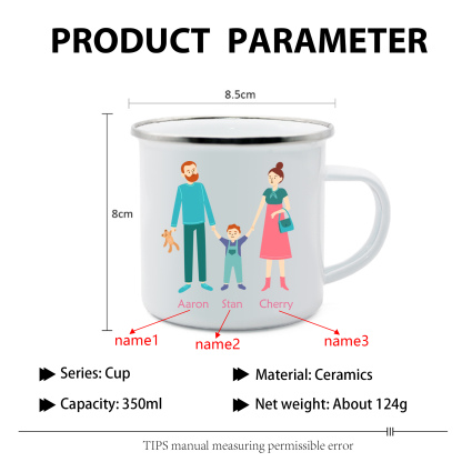 Emaille Tasse-Personalisierte 3 Namen Eine dreiköpfige Familie Emaille Becher