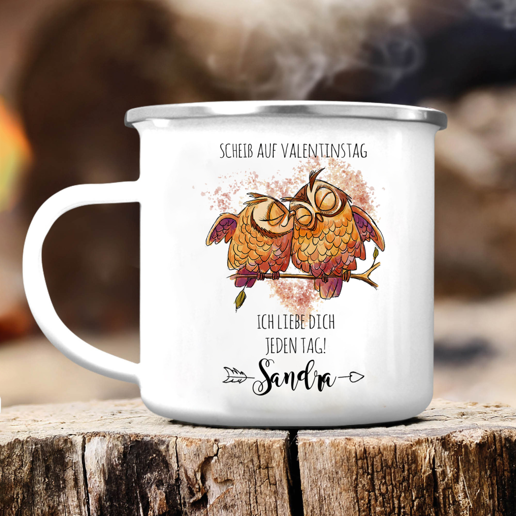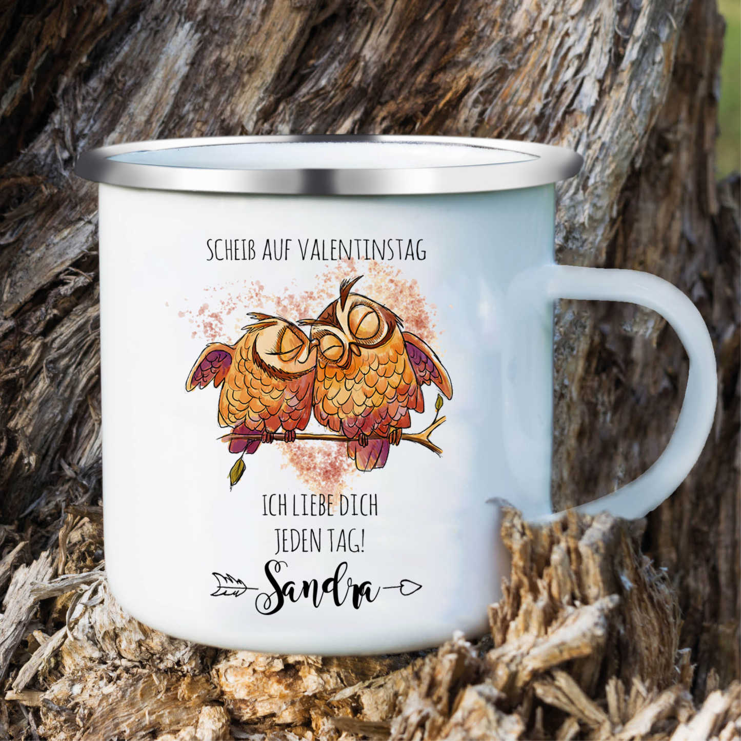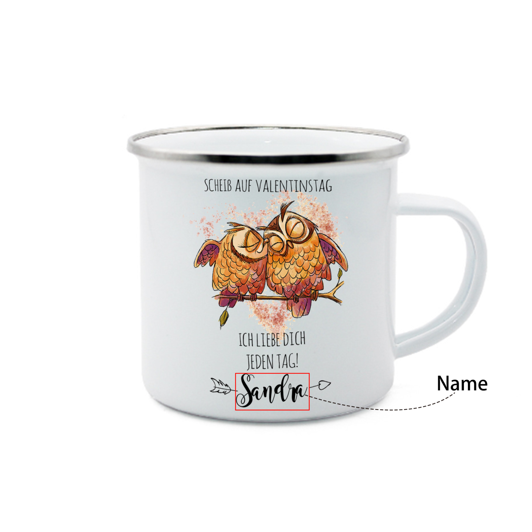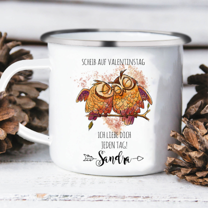 Emaille Tasse-Personalisierter 1 Name-Scheiß auf Valentinstag Ich liebe dich jeden Tag-Emaille Becher für Paare