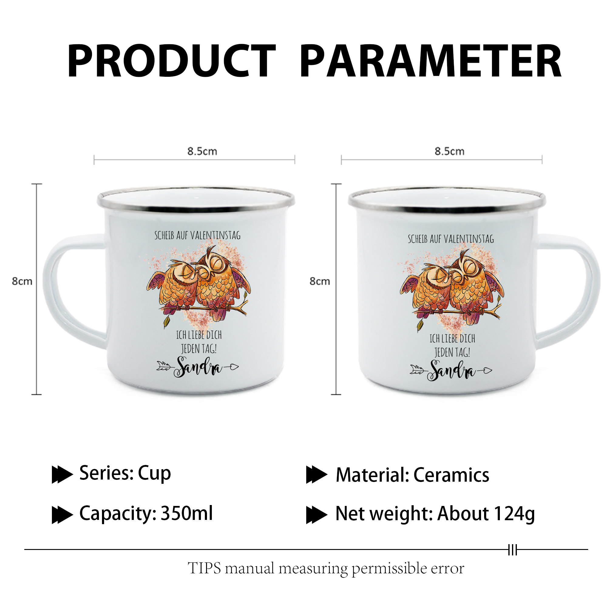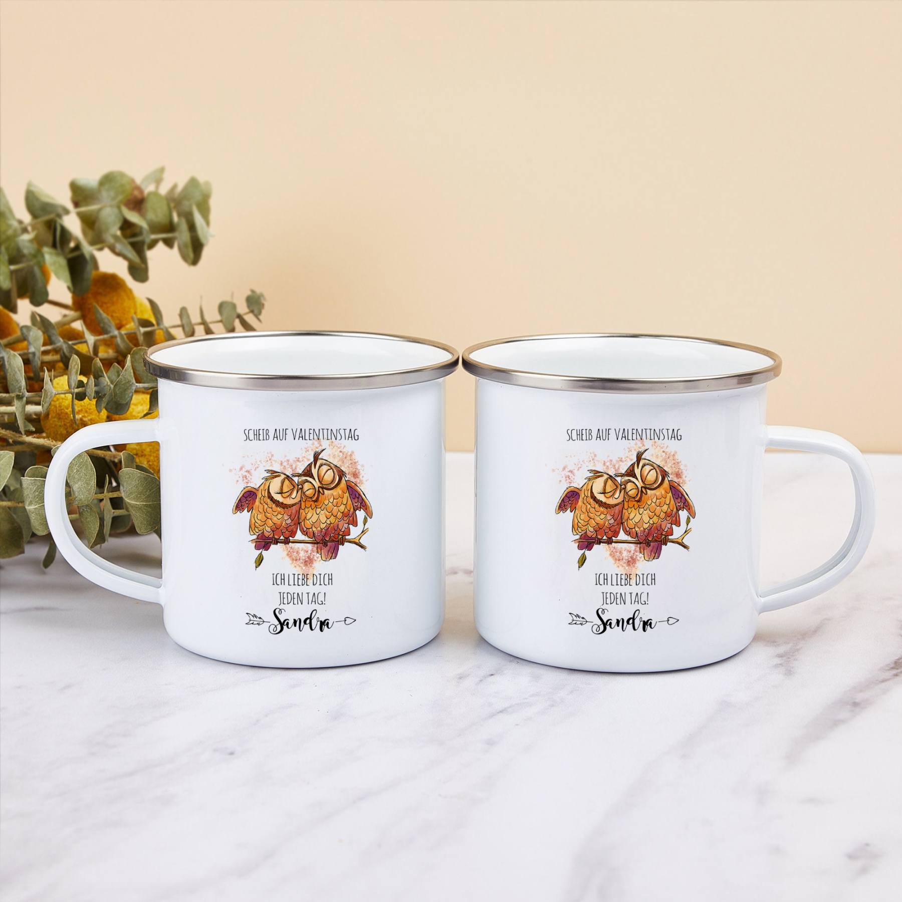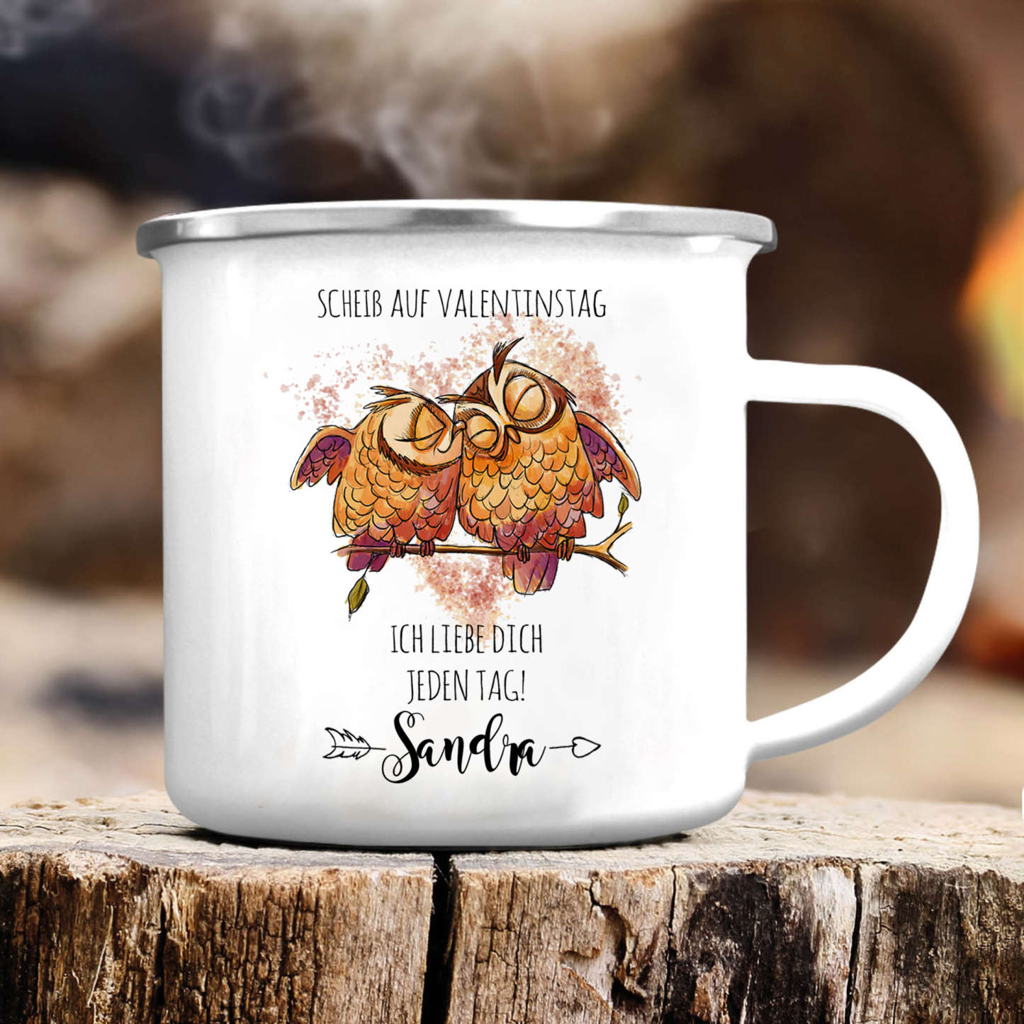 Emaille Tasse-Personalisierter 1 Name-Scheiß auf Valentinstag Ich liebe dich jeden Tag-Emaille Becher für Paare