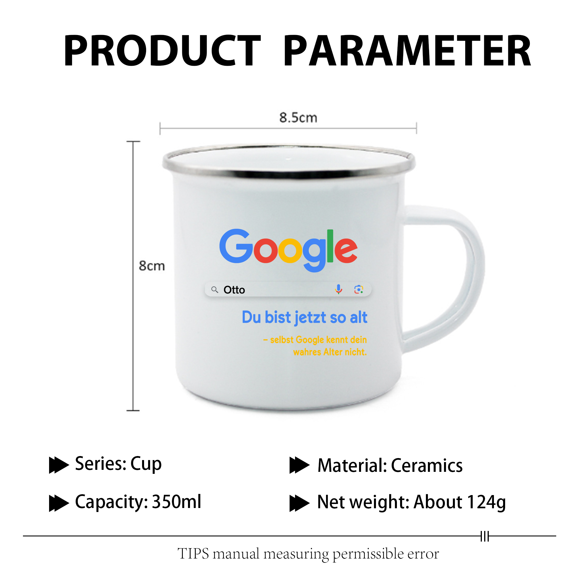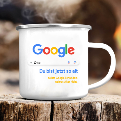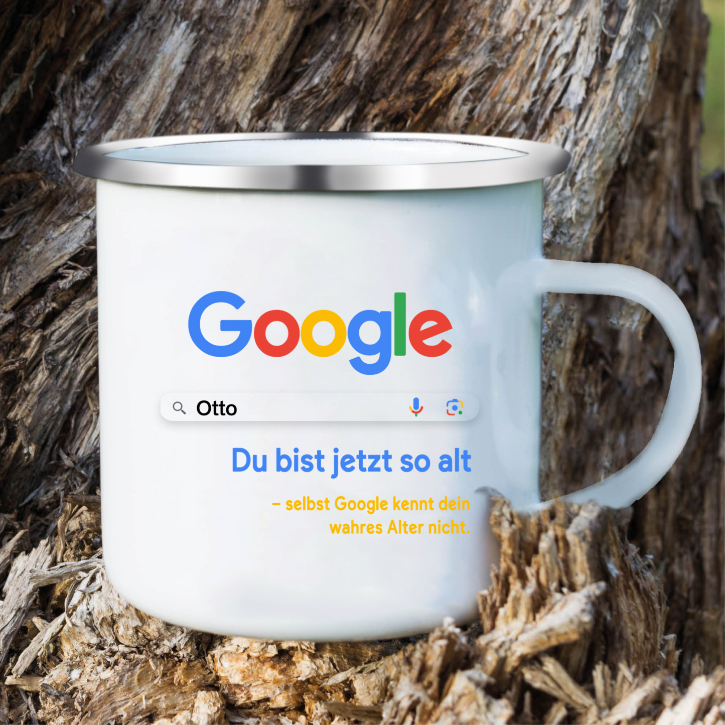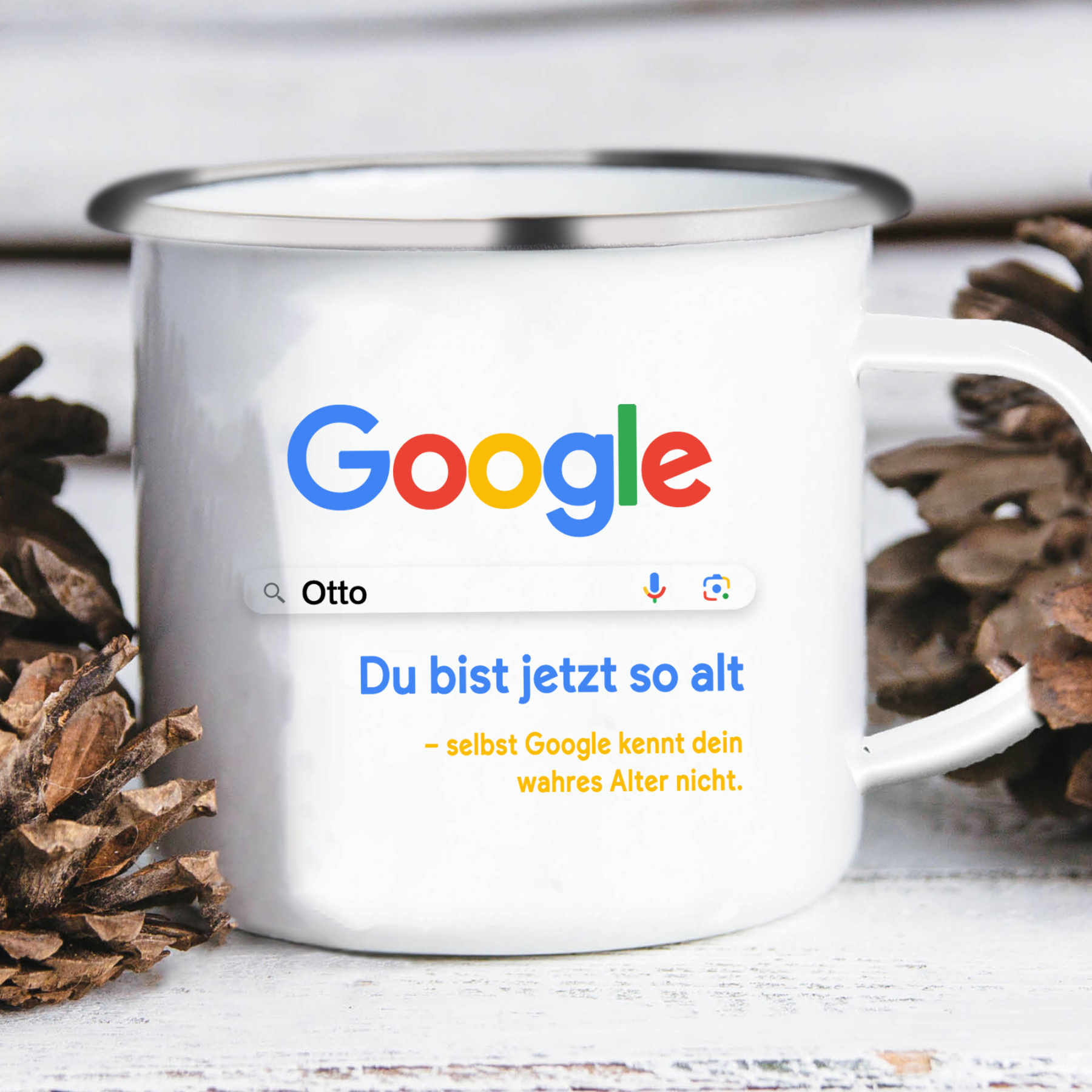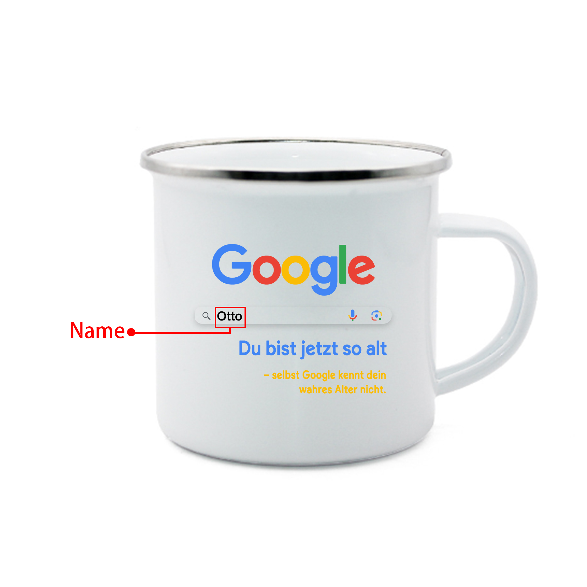 Emaille Tasse-Personalisierter Name Du bist jetzt so alt - selbst Google kennt dein wahres Alter nicht. Emaille Becher- Geburtstagsgeschenk lustig und witzig Geschenk