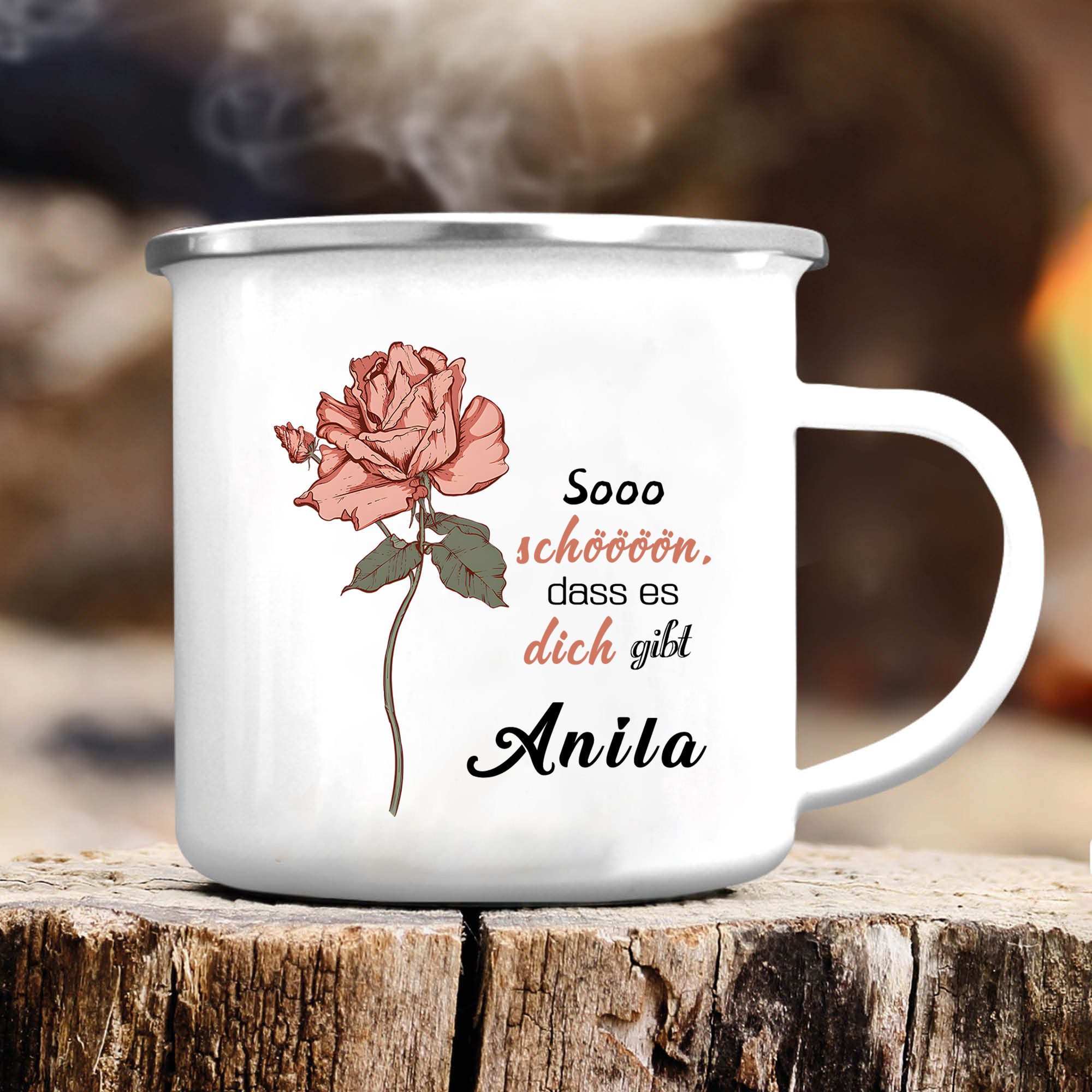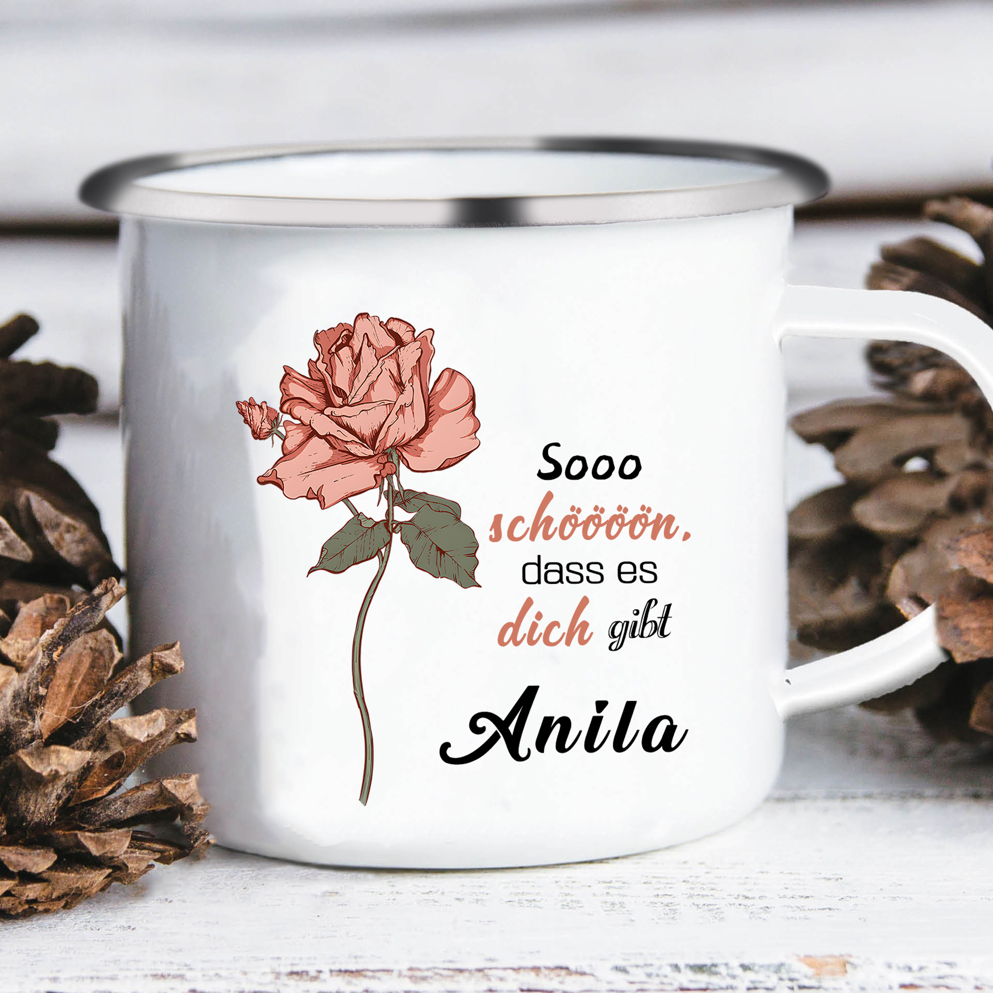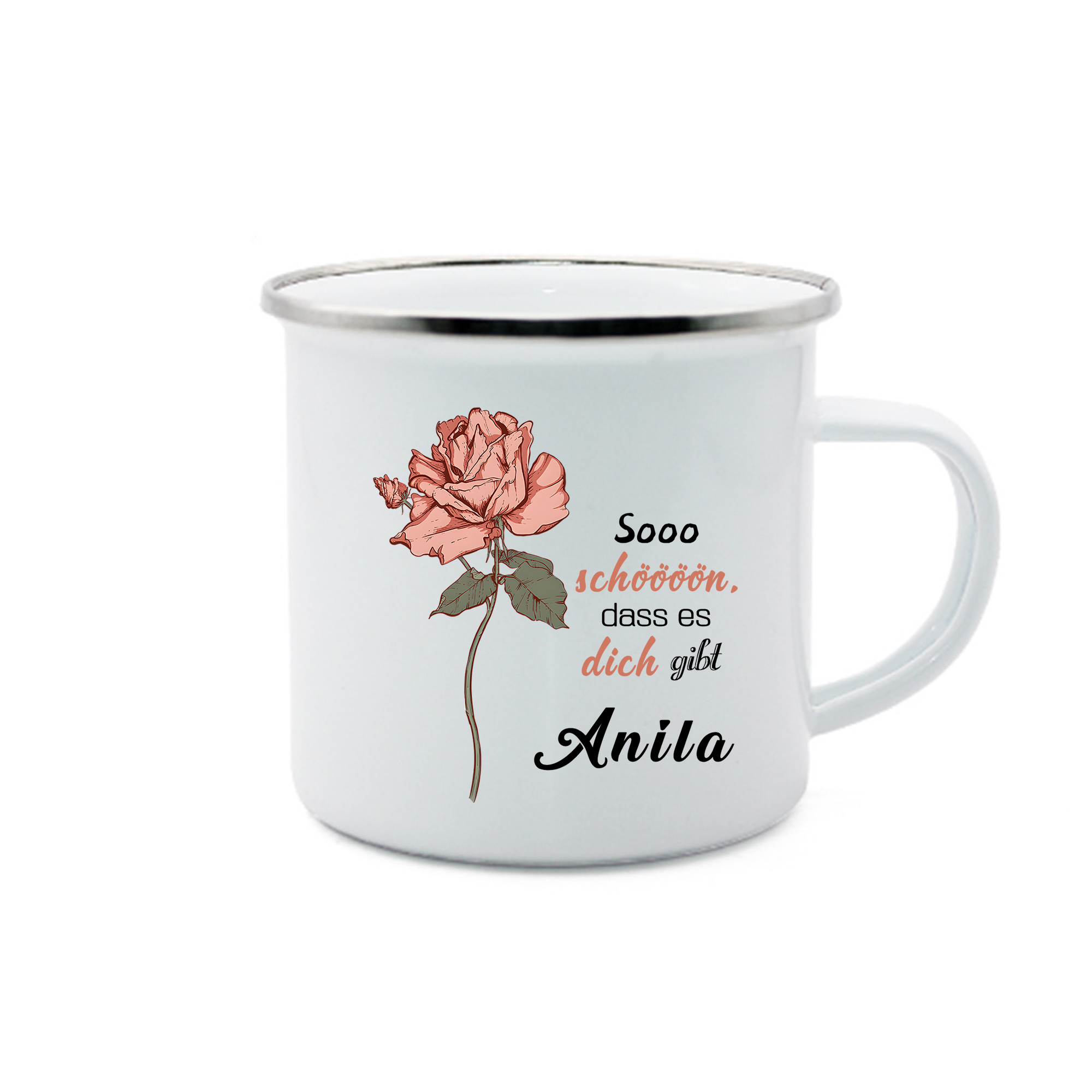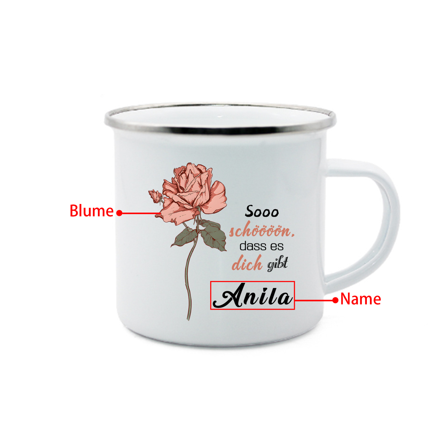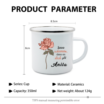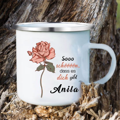 Emaille Tasse-Personalisierter Name & Geburtsblume Sooo schöööön, dass es dich gibt - Emaille Becher- Geburtstagsgeschenk