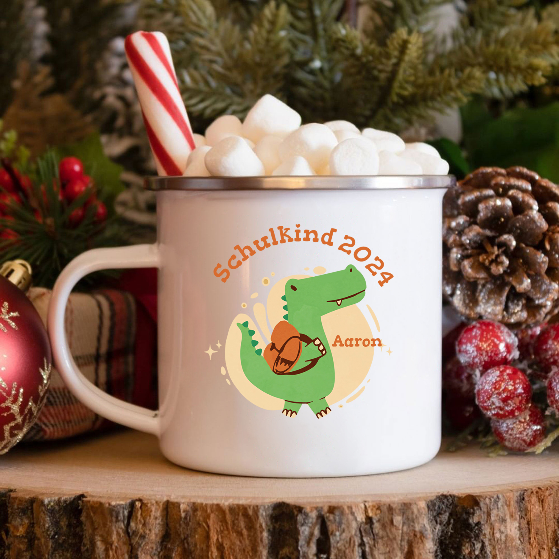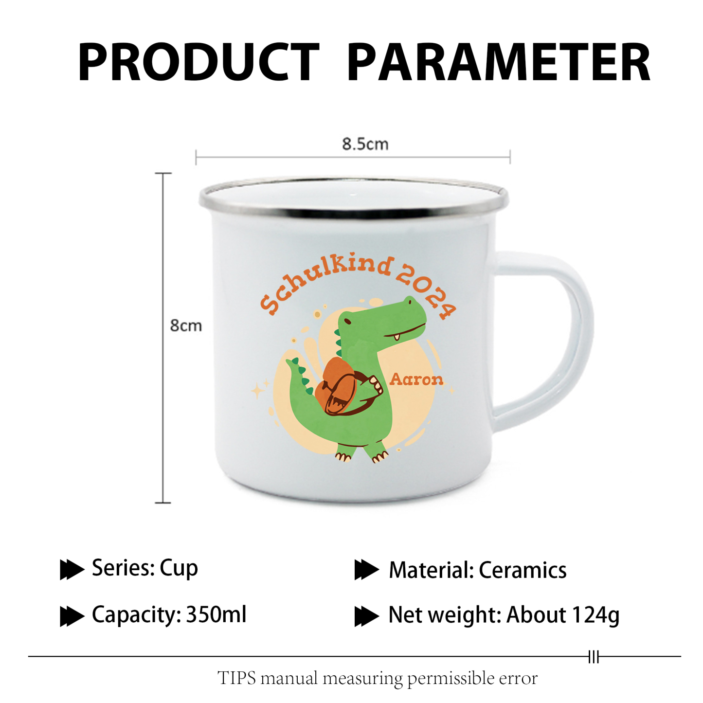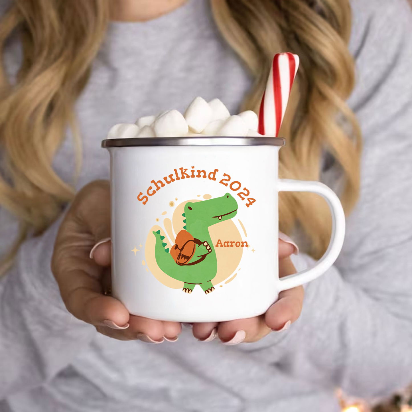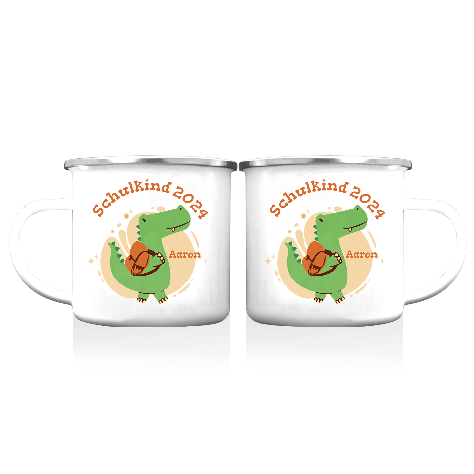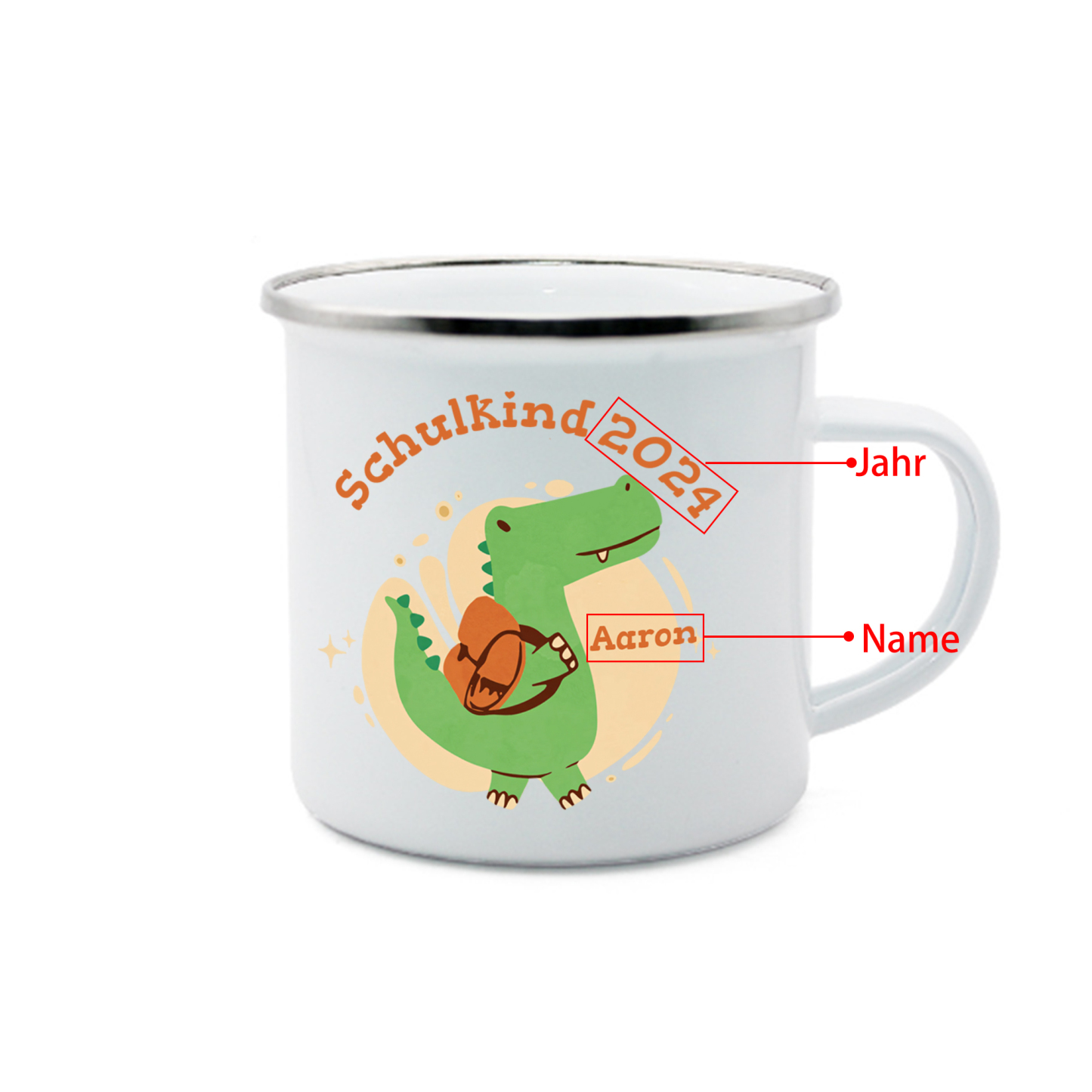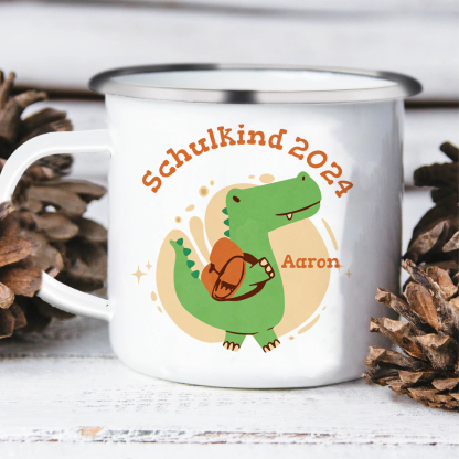 Emaille Tasse-Personalisierter Name & Jahr Emaille Becher Schukind Krokodil Geschenk zum Schulanfang