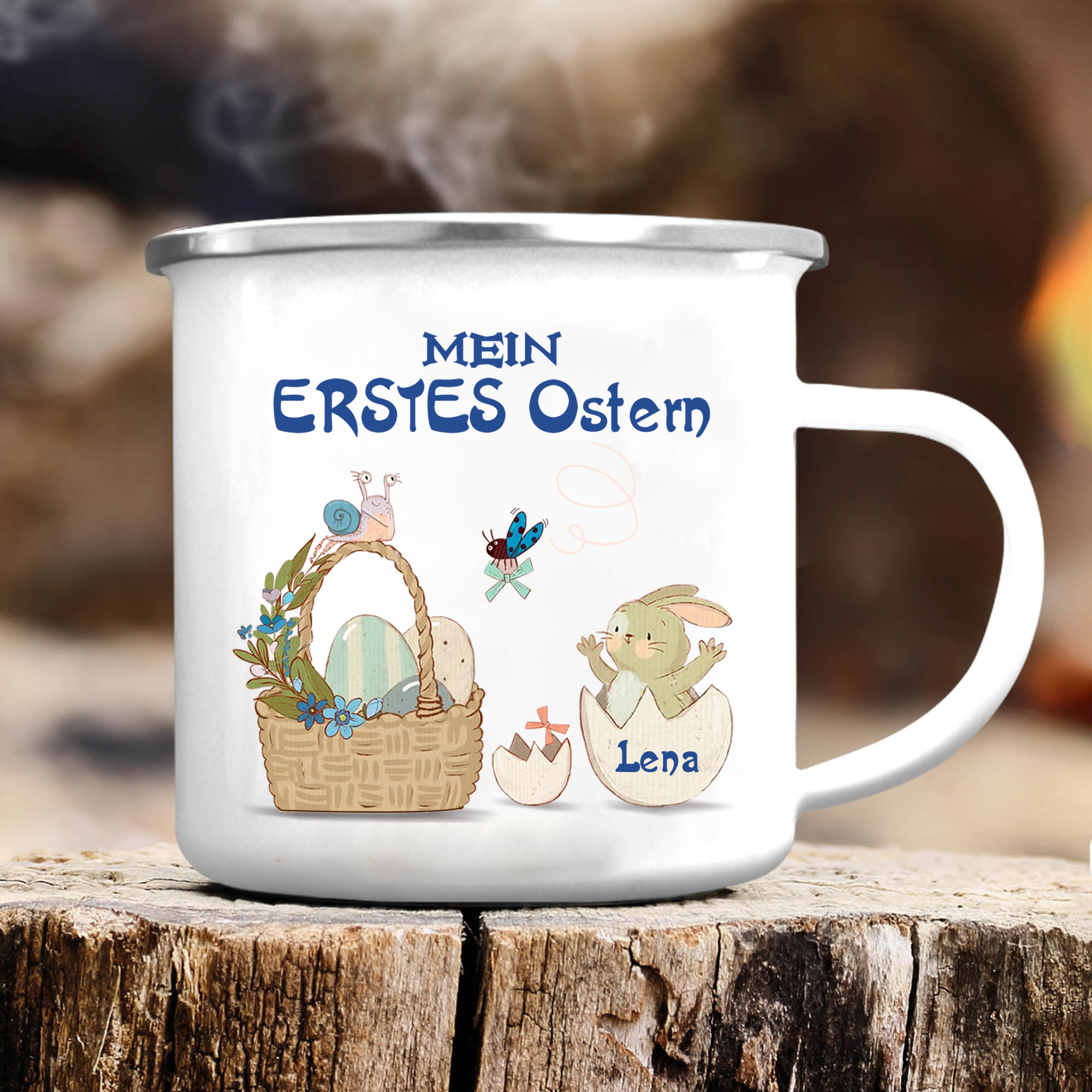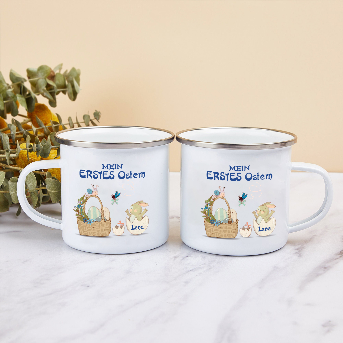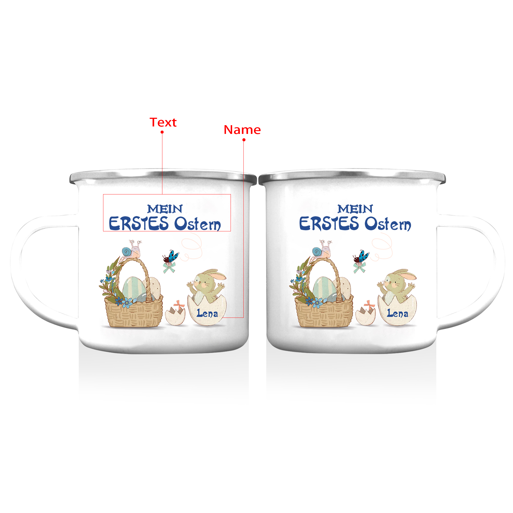 Emaille Tasse - Personalisierter Text & 1 Name Hase Ostern Becher