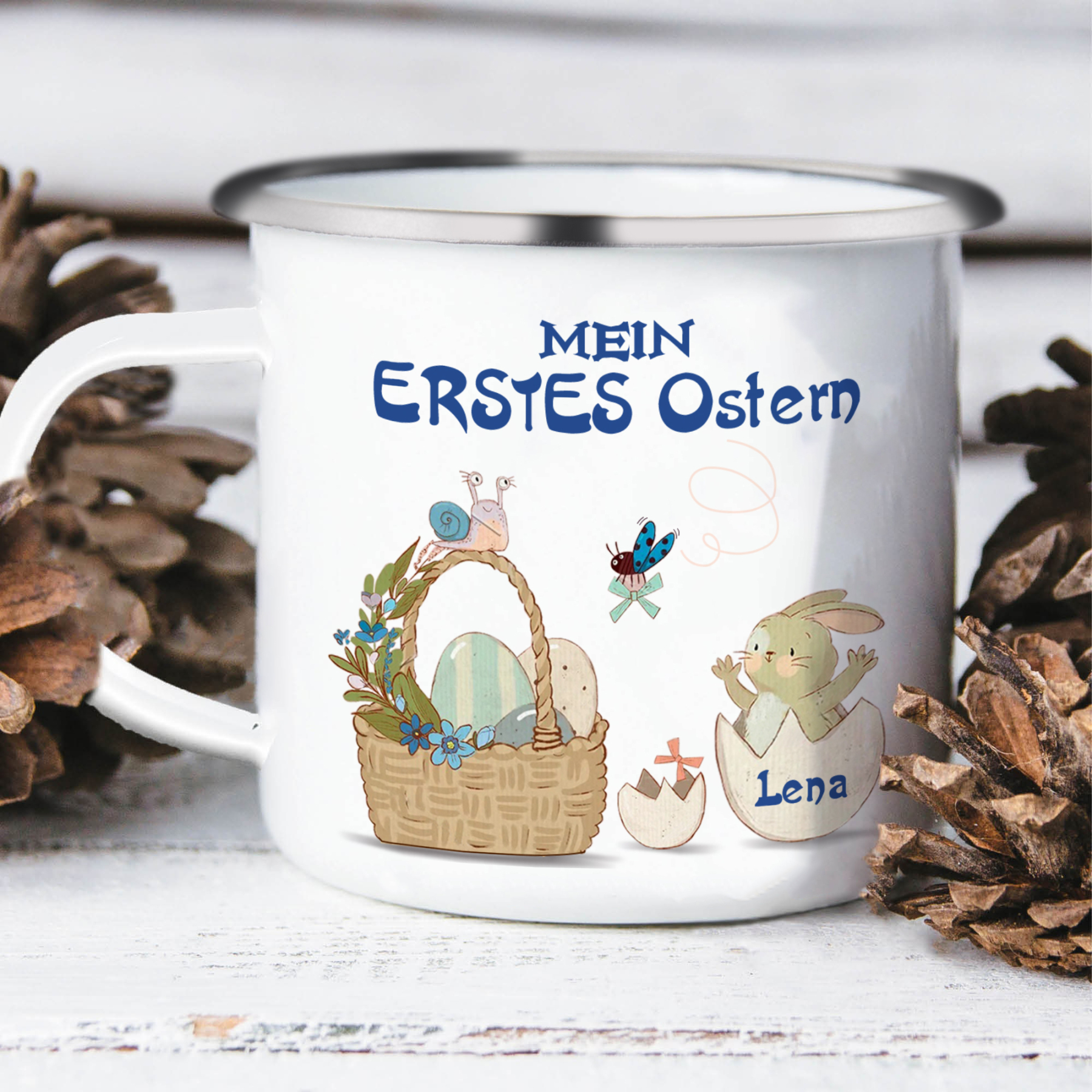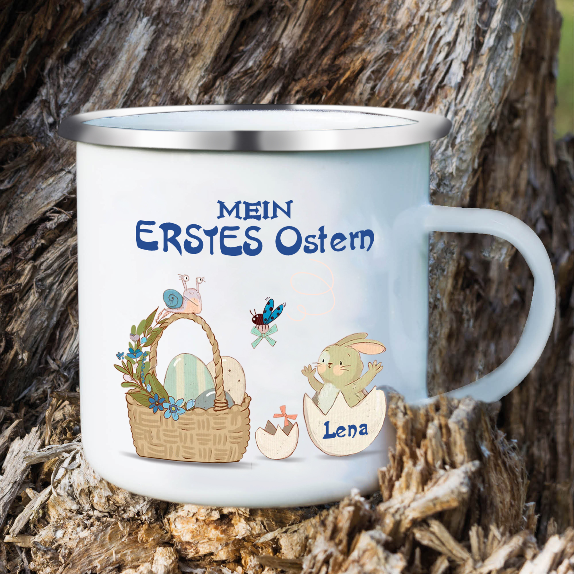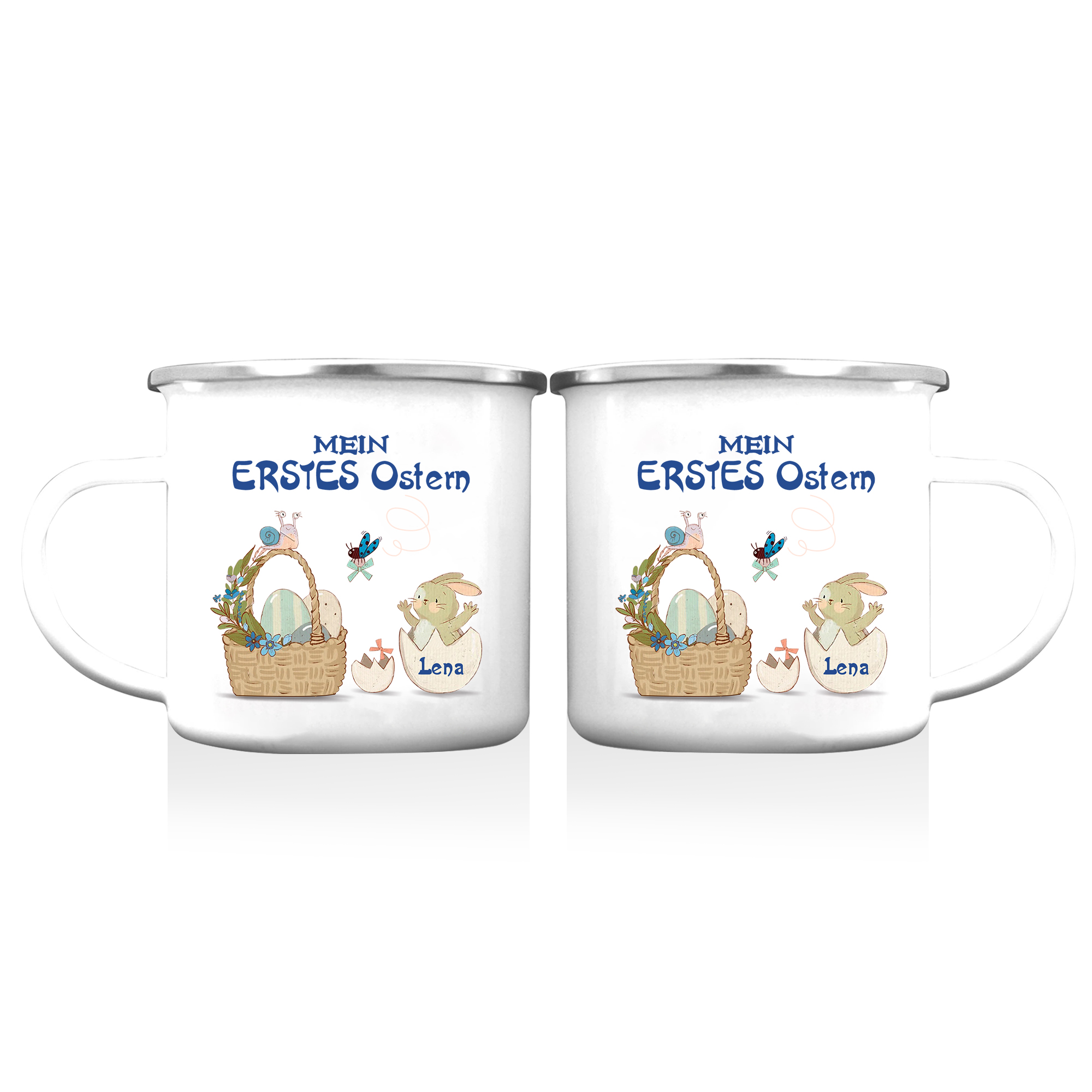 Emaille Tasse - Personalisierter Text & 1 Name Hase Ostern Becher