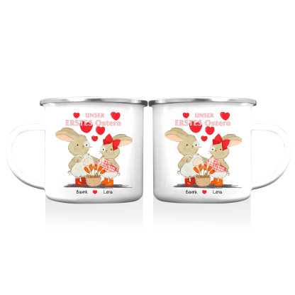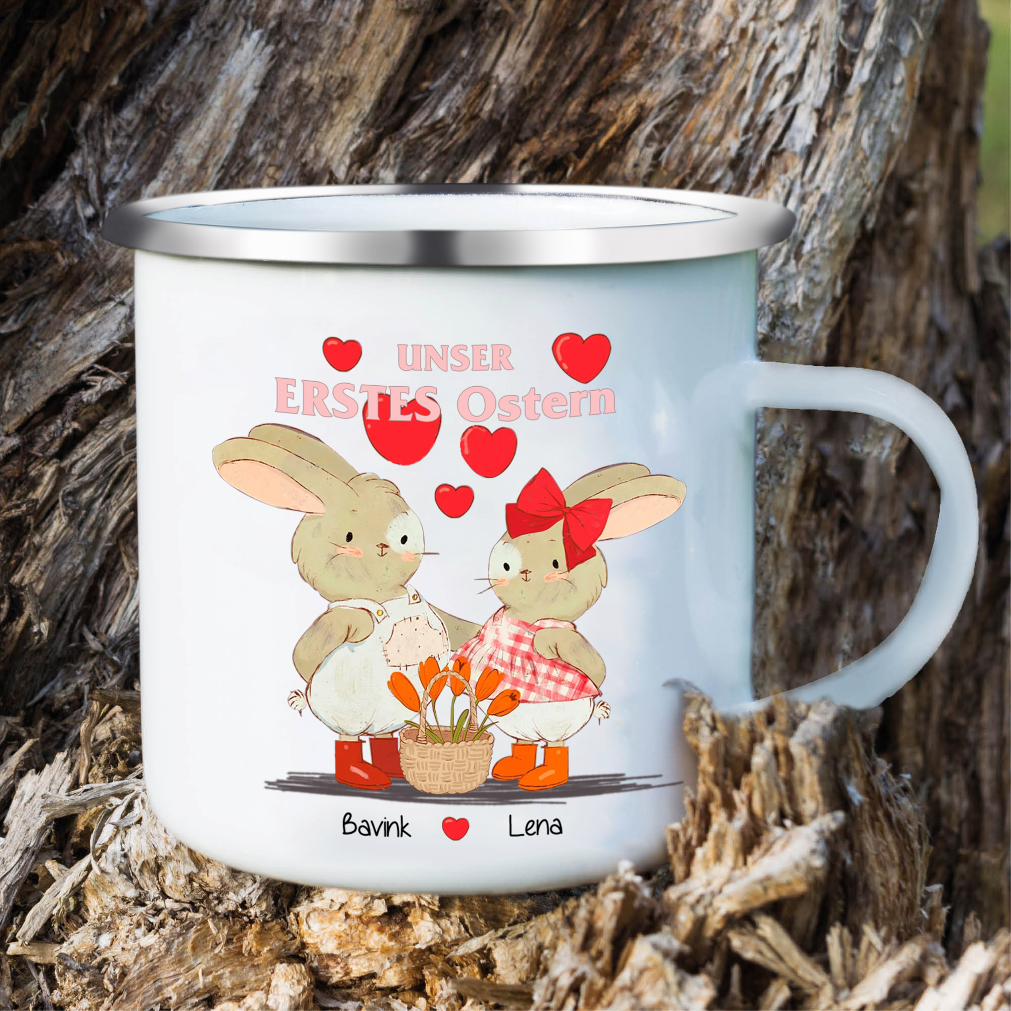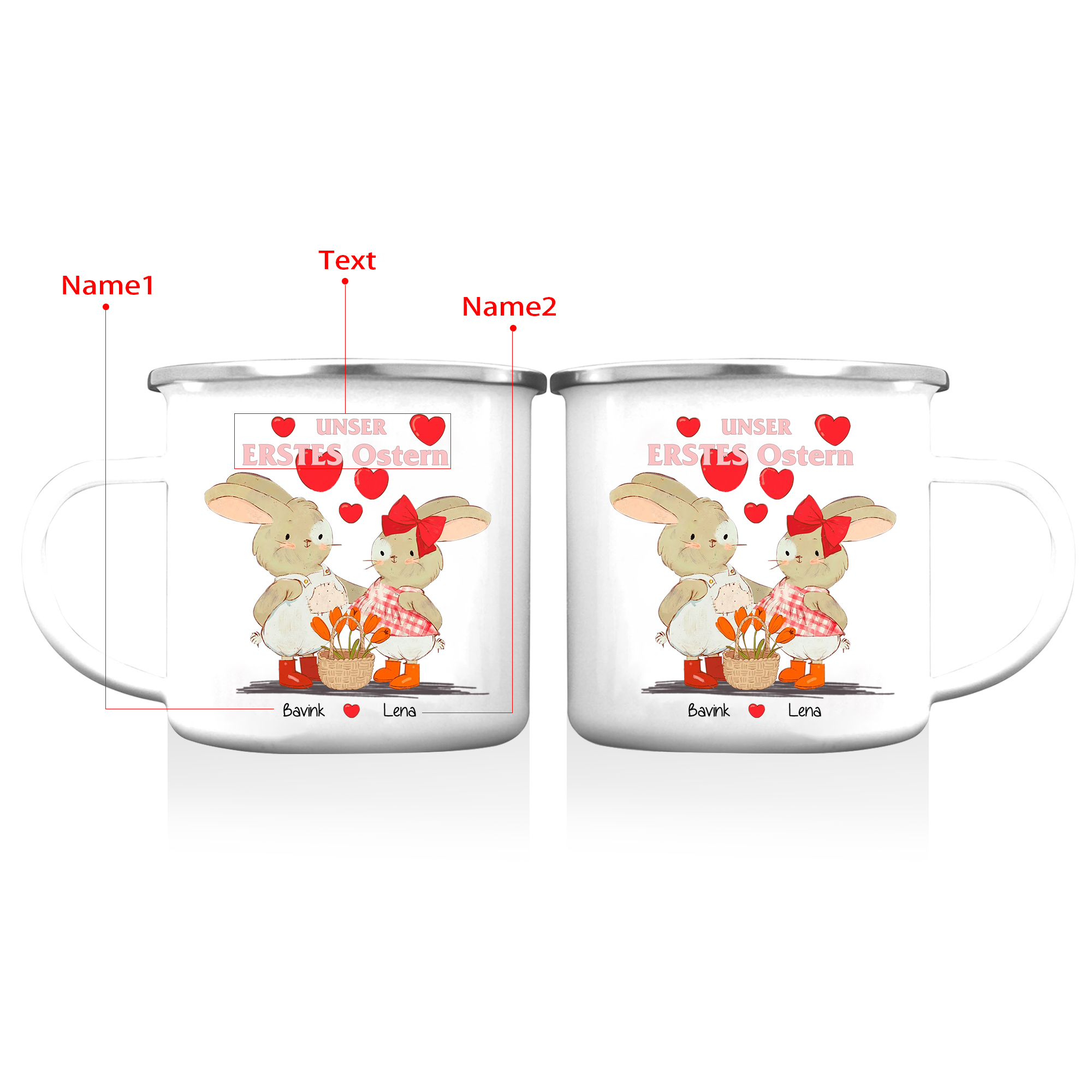 Emaille Tasse - Personalisierter Text & 2 Namen Hase Ostern Becher