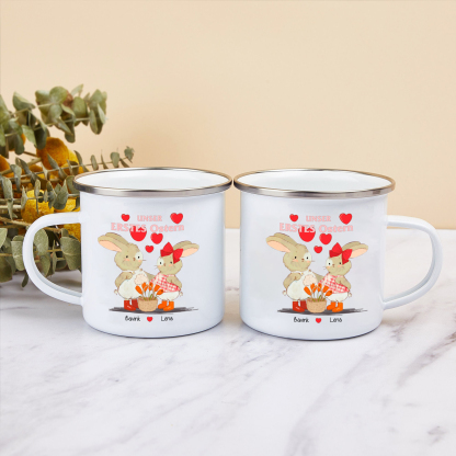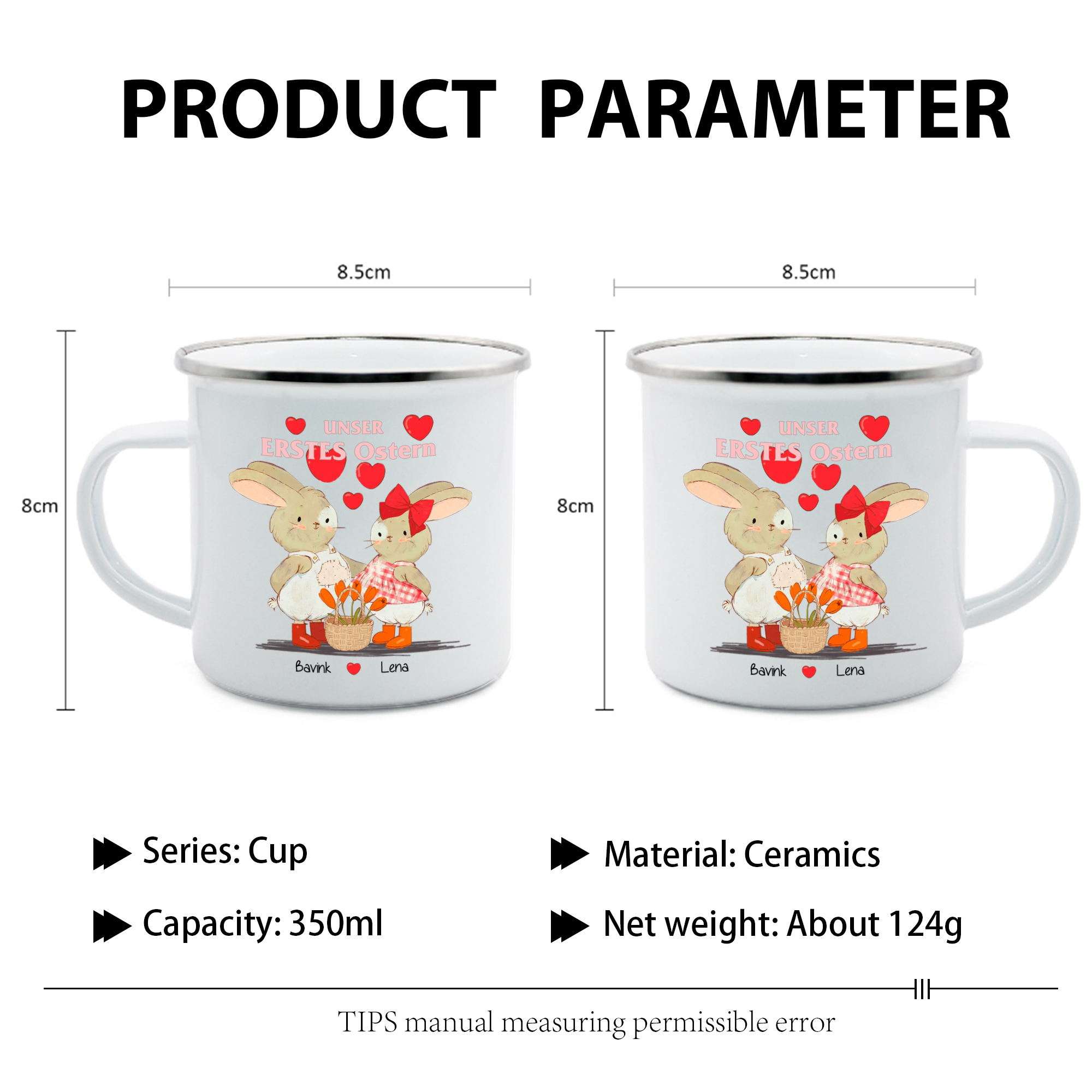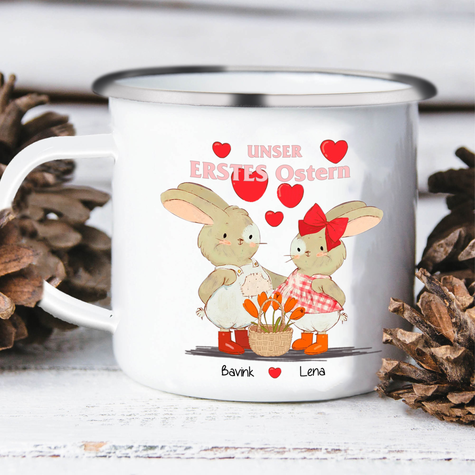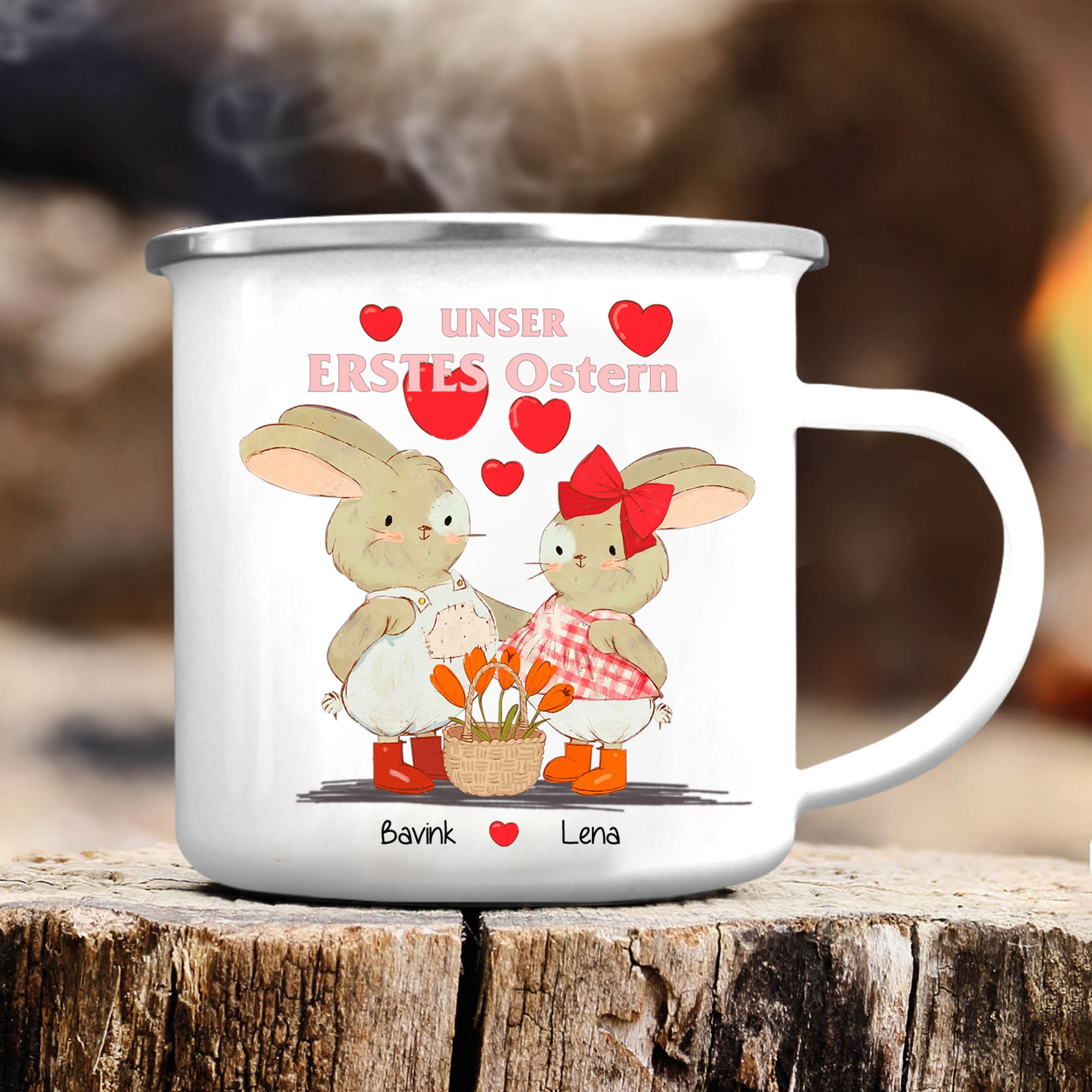 Emaille Tasse - Personalisierter Text & 2 Namen Hase Ostern Becher