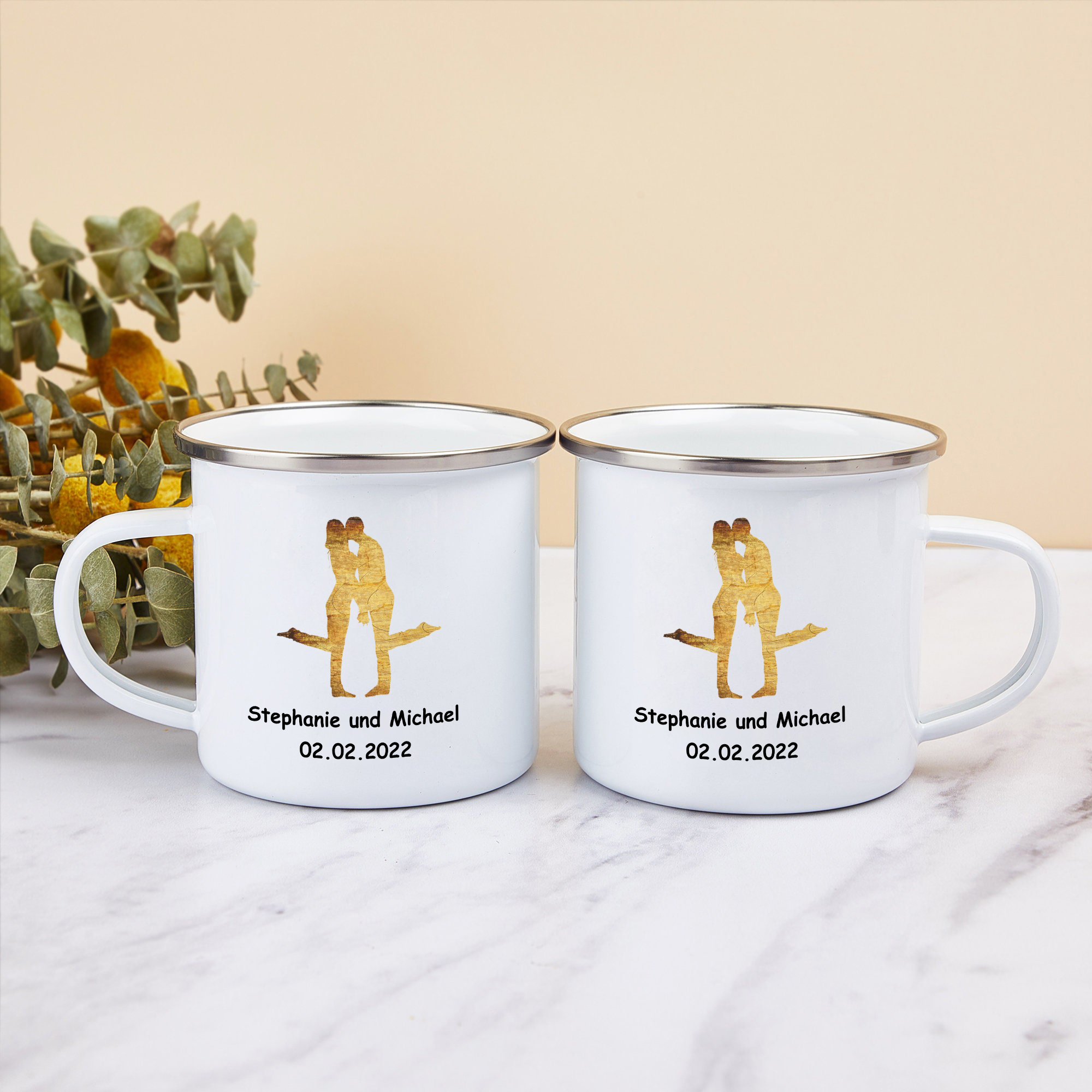 Emaille Tasse-Personalisierter Text & Datum Emaille Becher für Paare