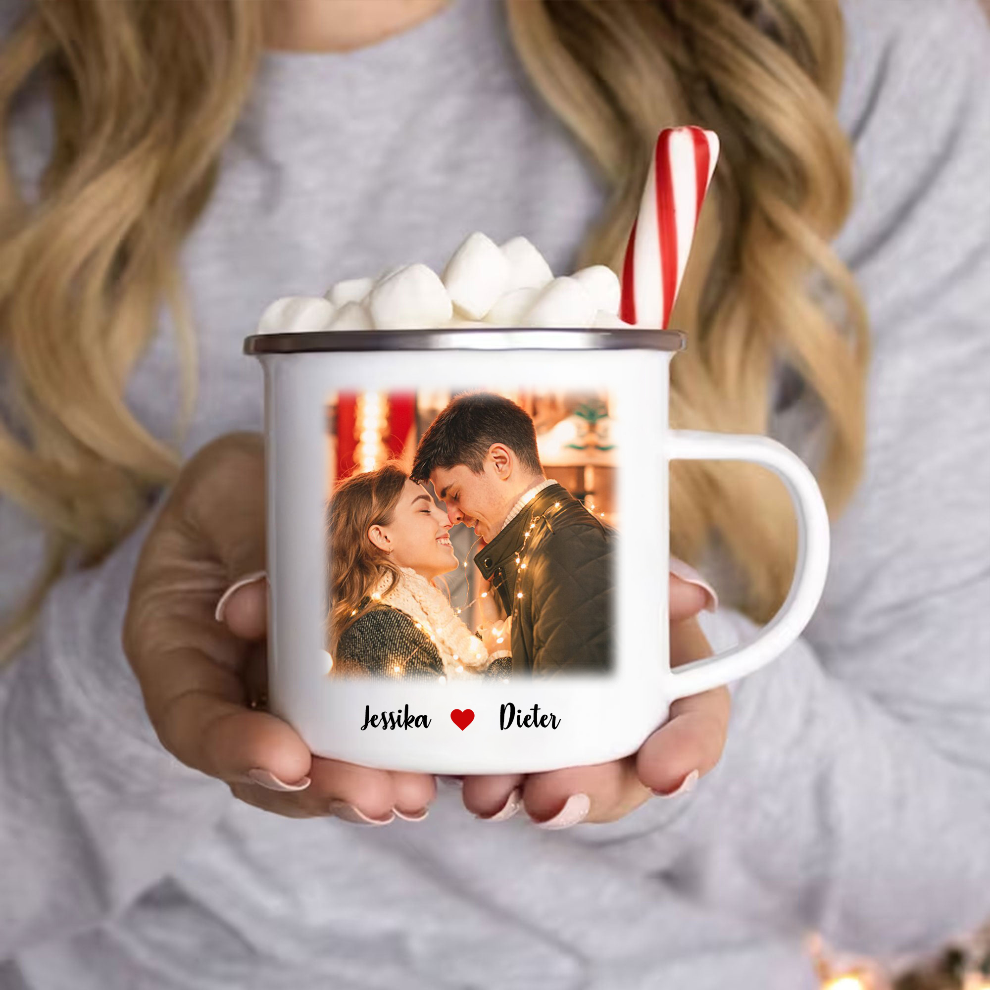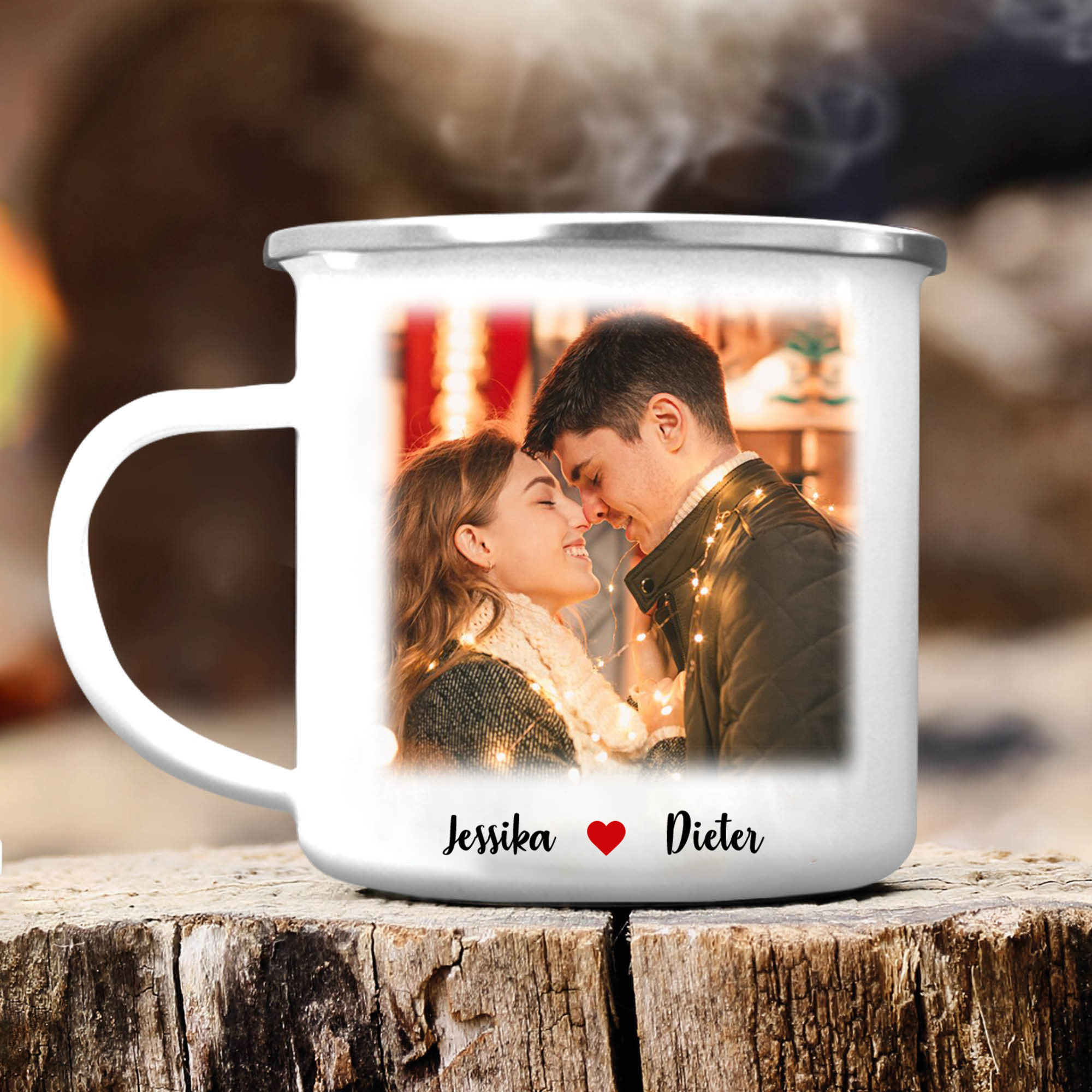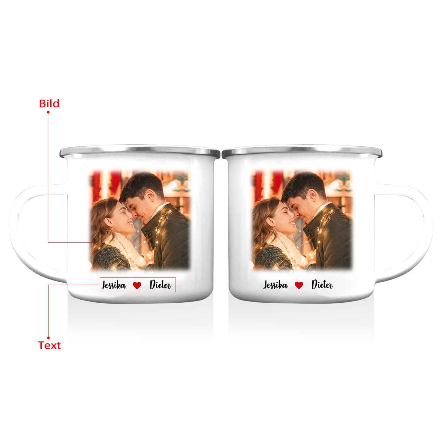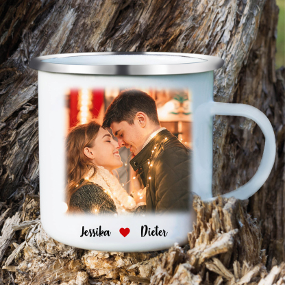 Emaille Tasse-Personalisierter Text & Foto Emaille Becher-für Paare