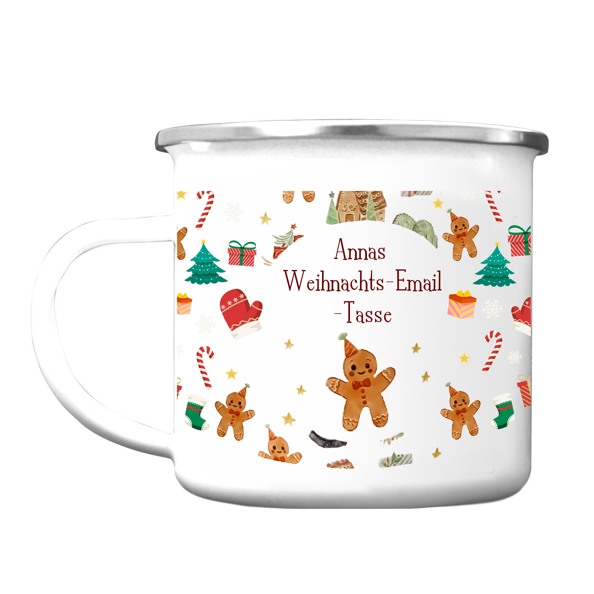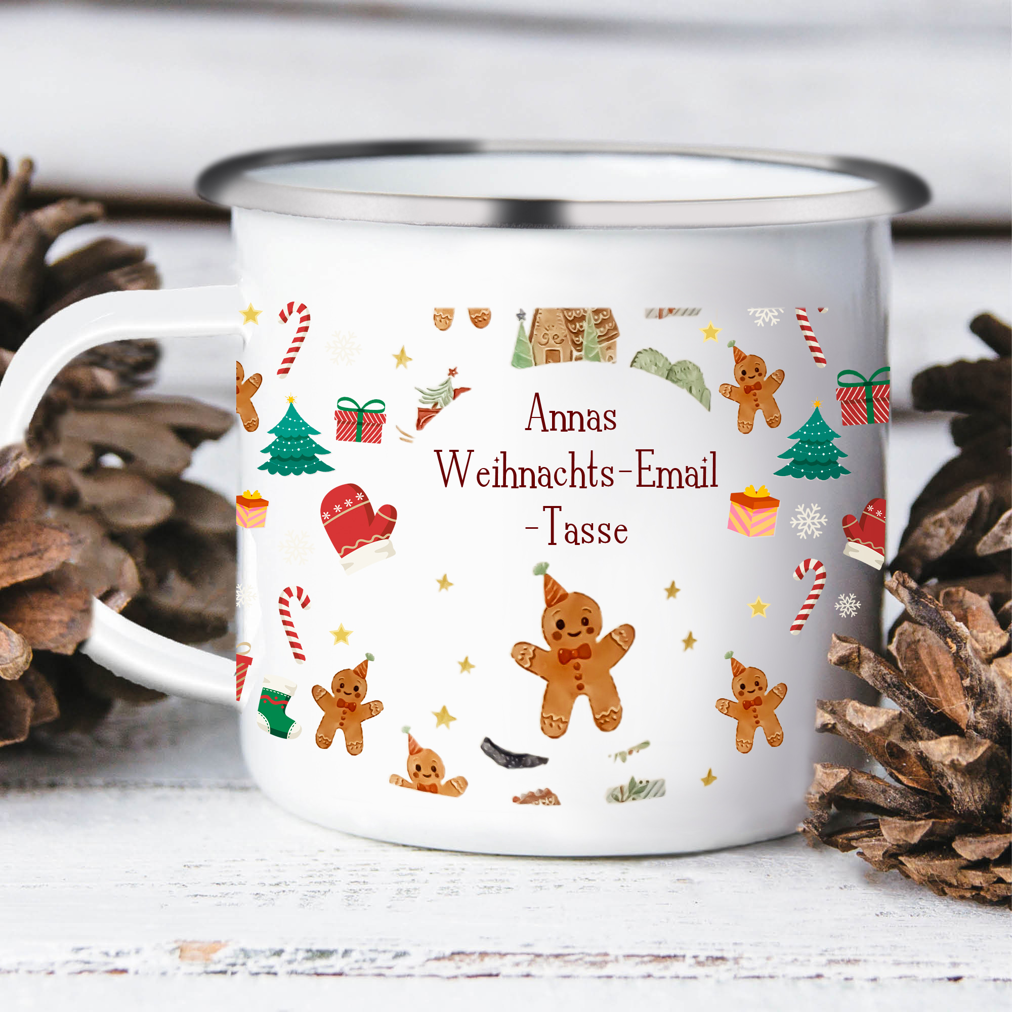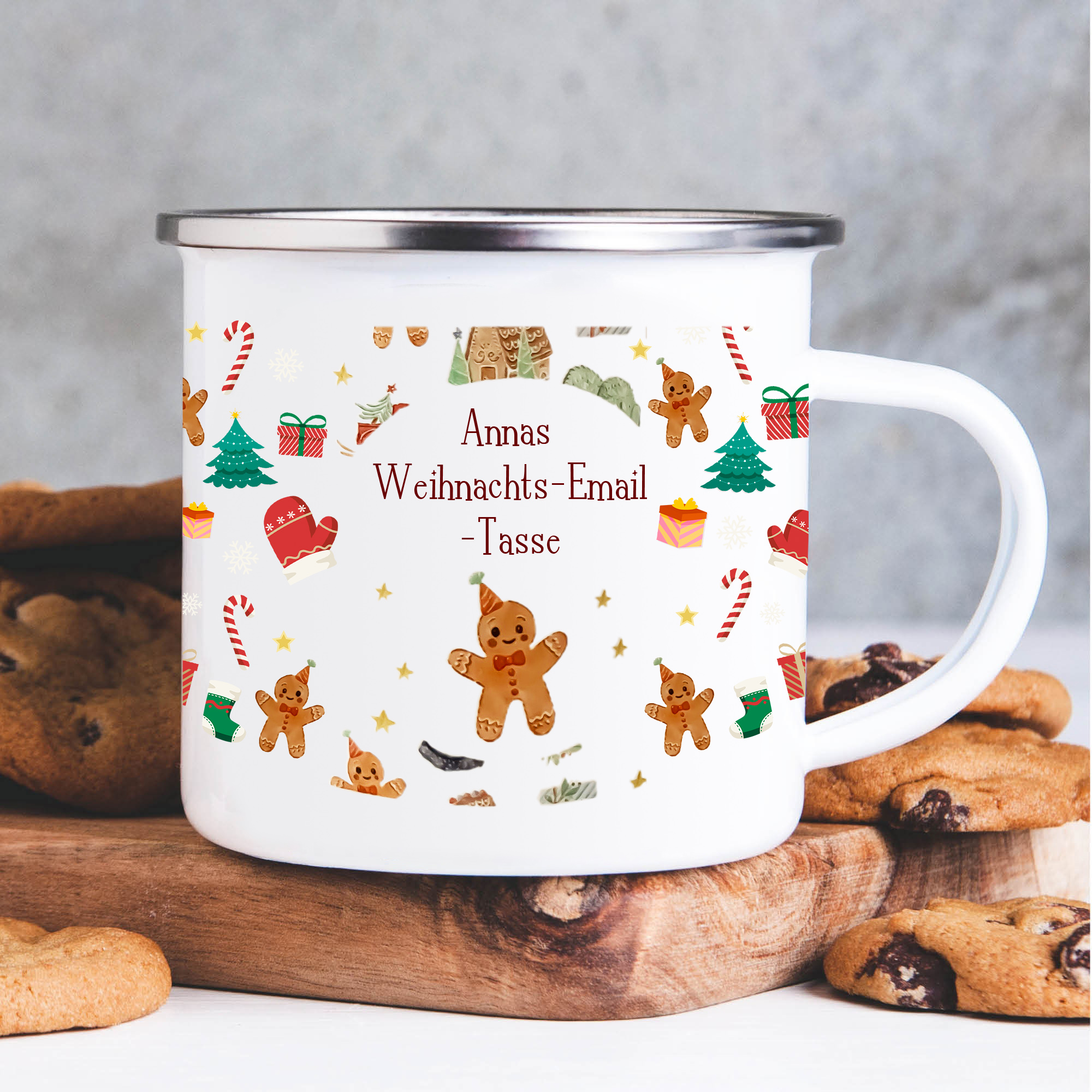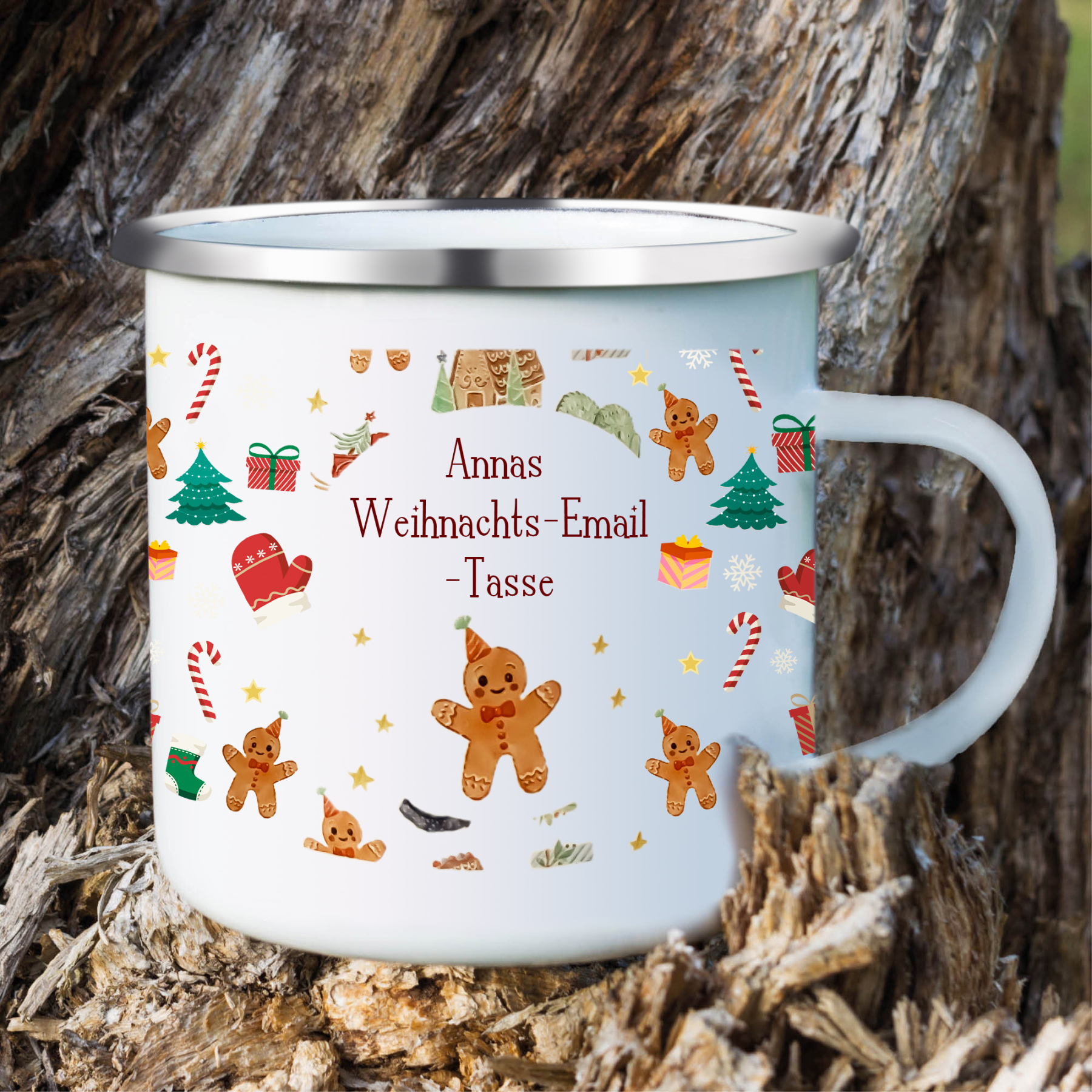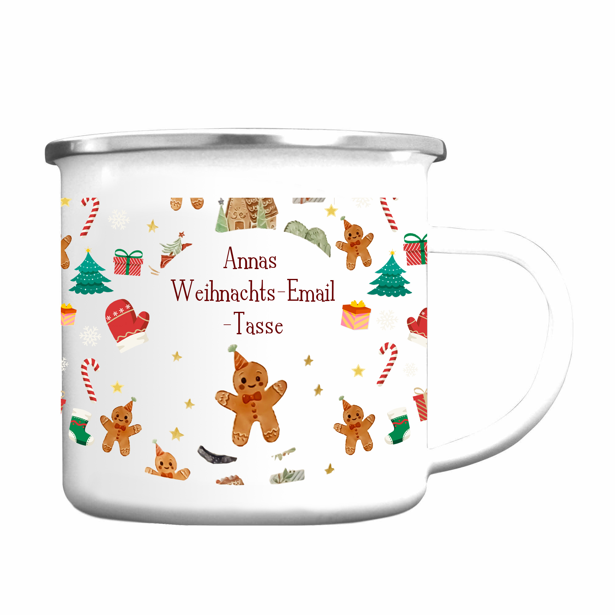 Emaille Tasse-Personalisierter Text Lebkuchenmann Weihnachts-Emaille Becher