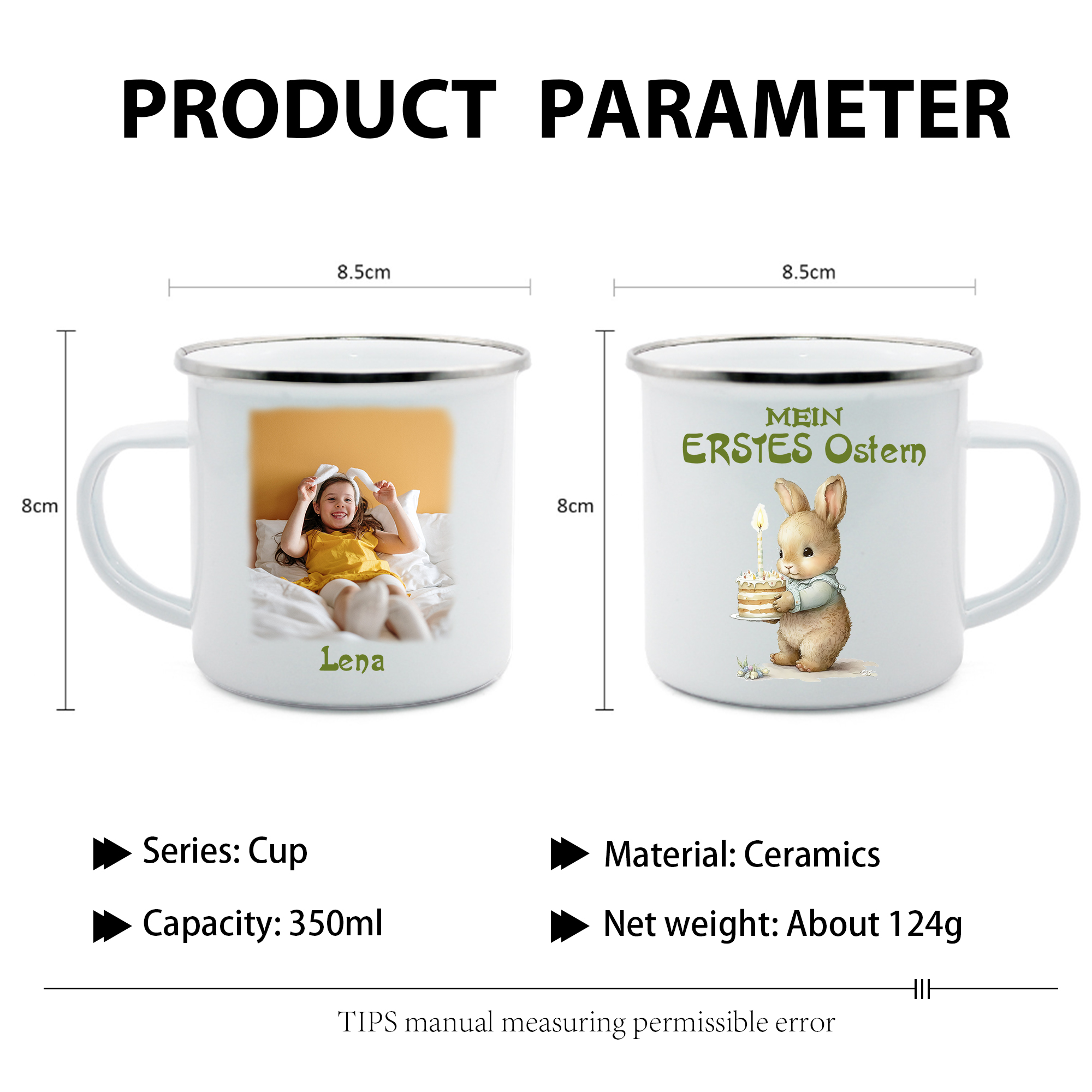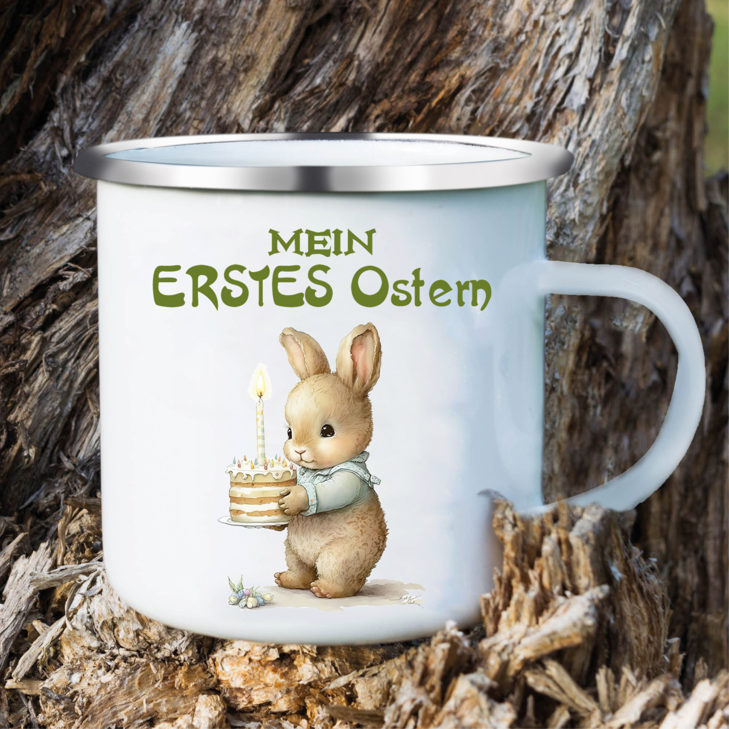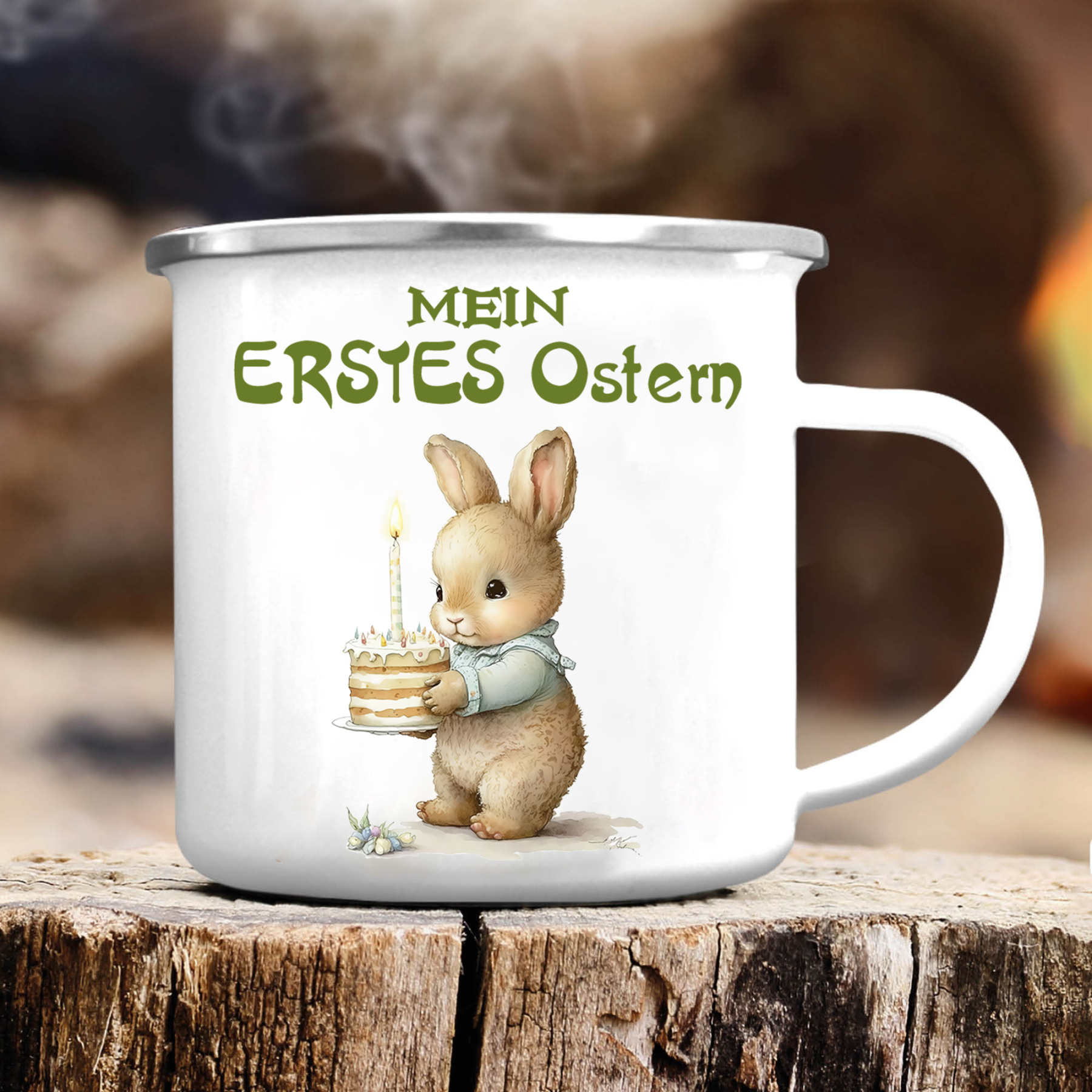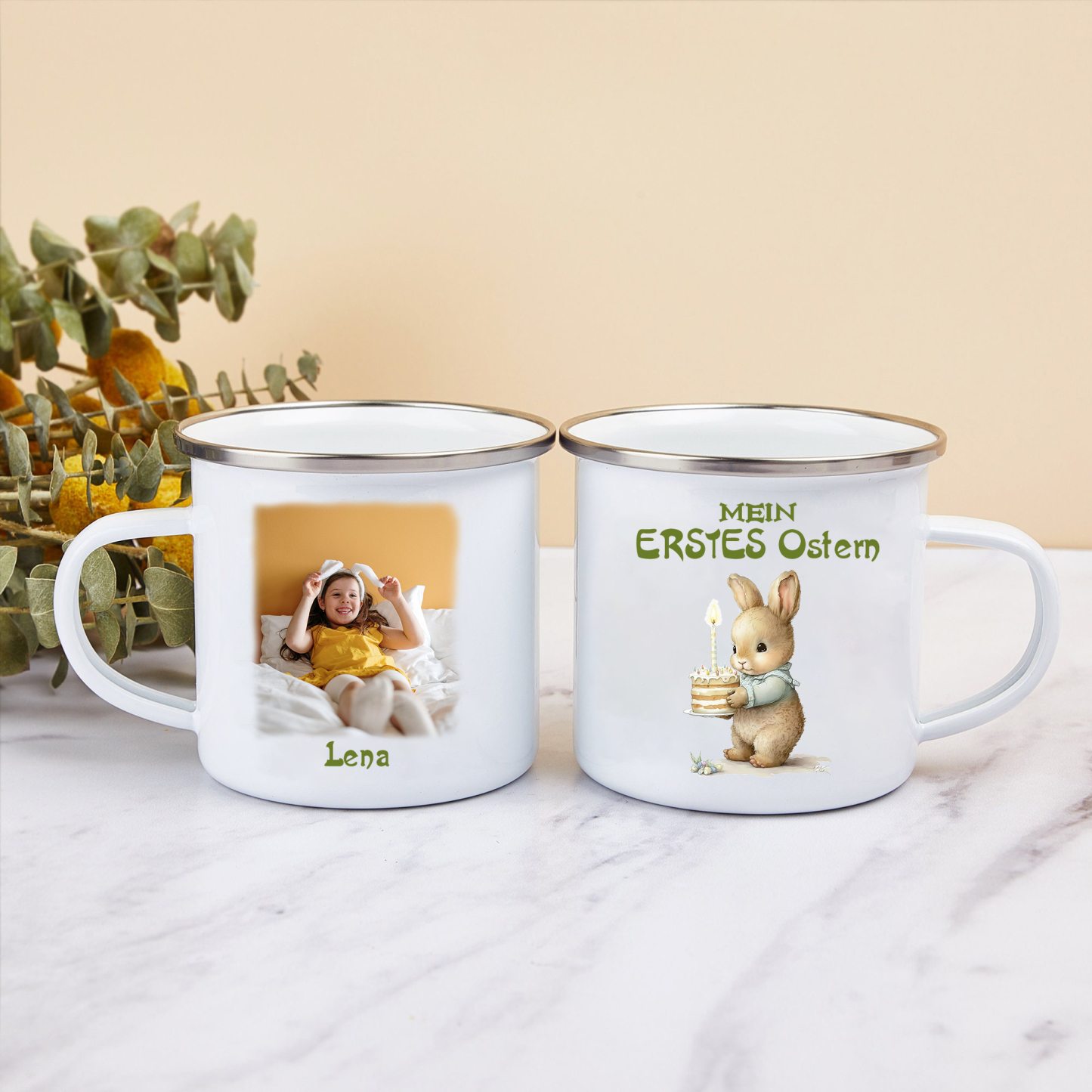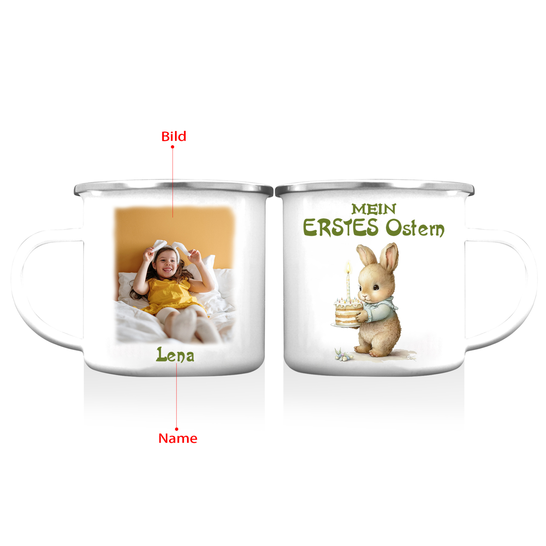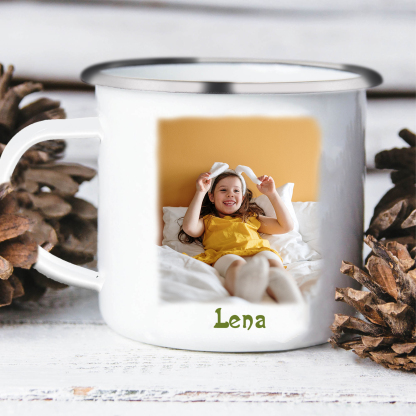 Emaille Tasse - Personalisiertes Foto & 1 Name Hase Ostern Becher