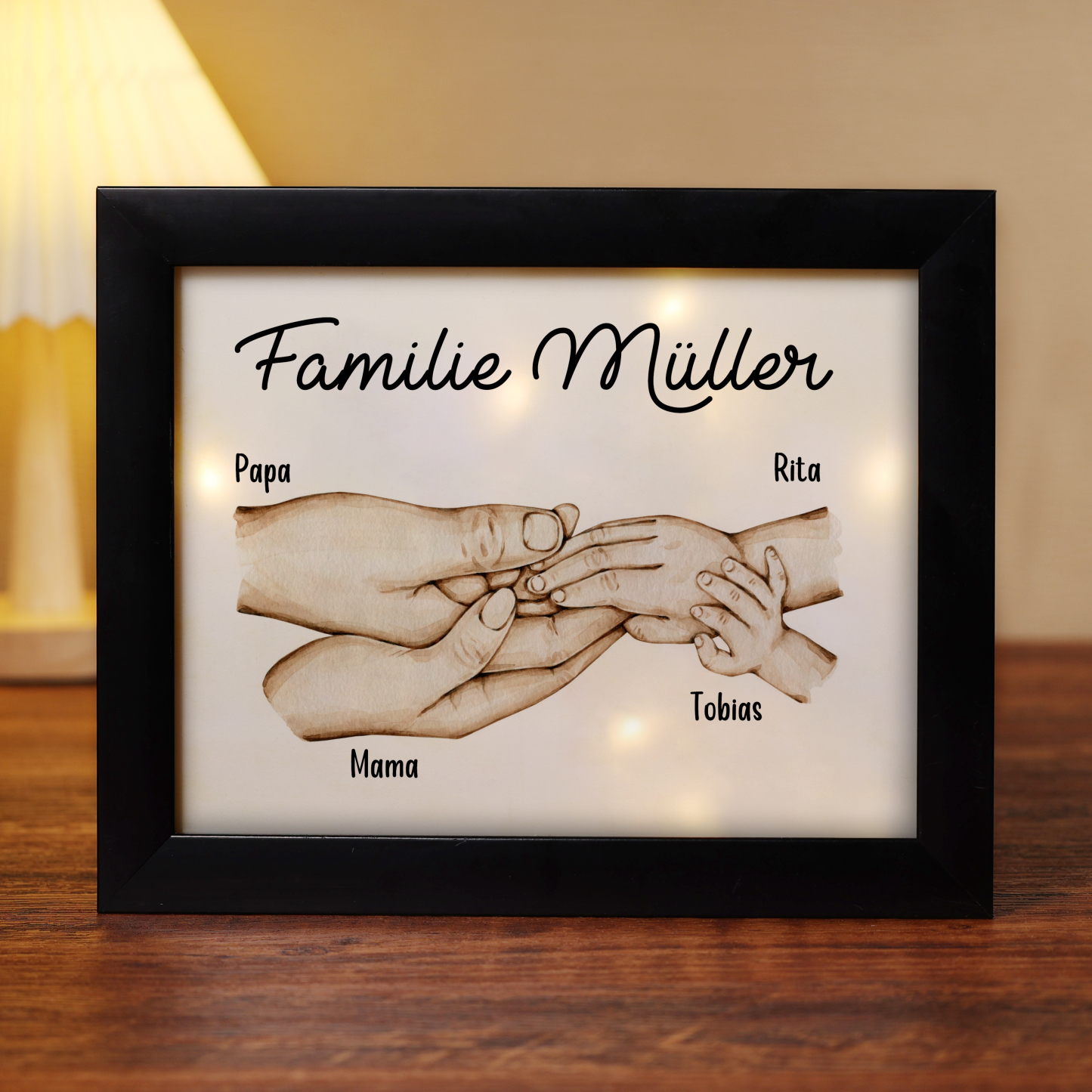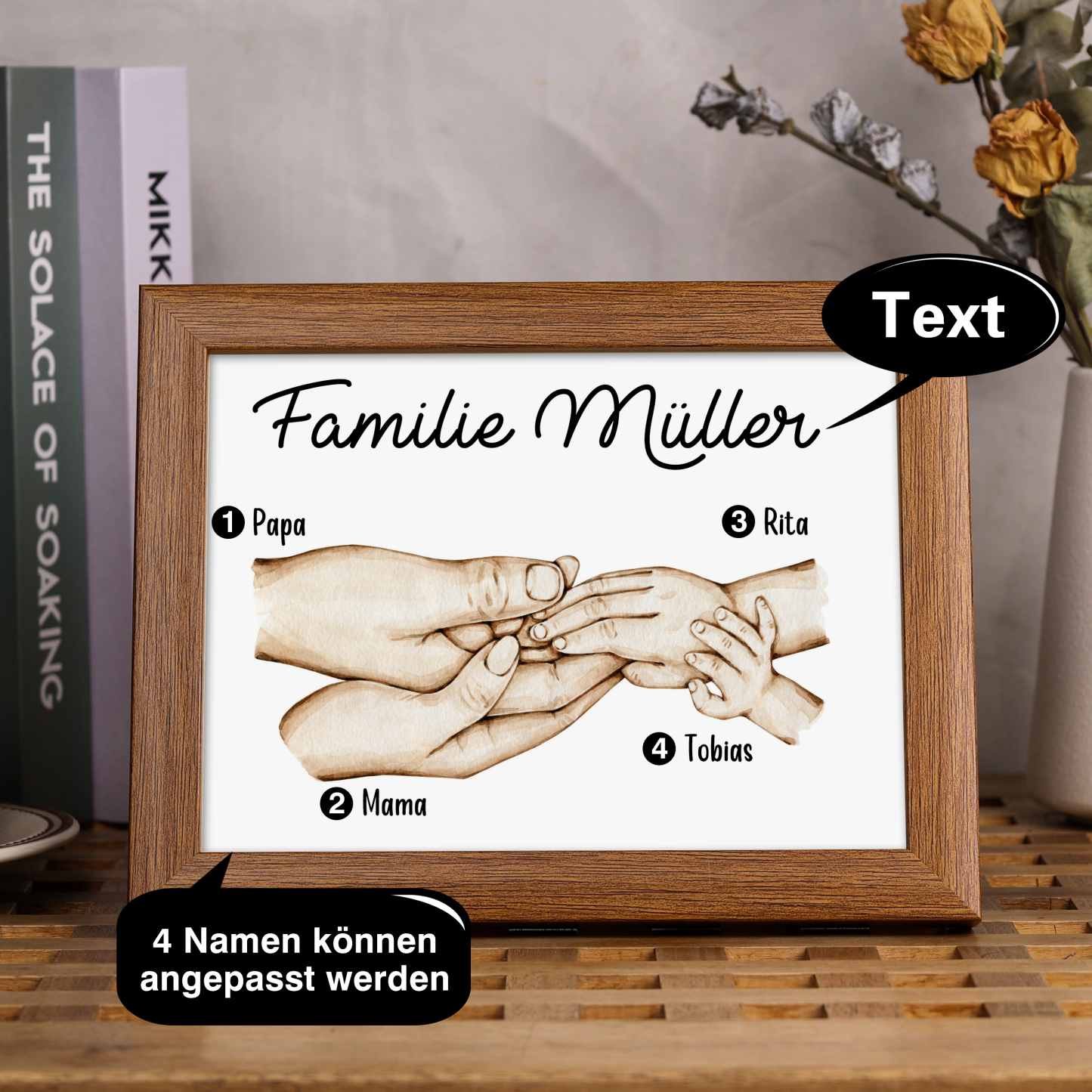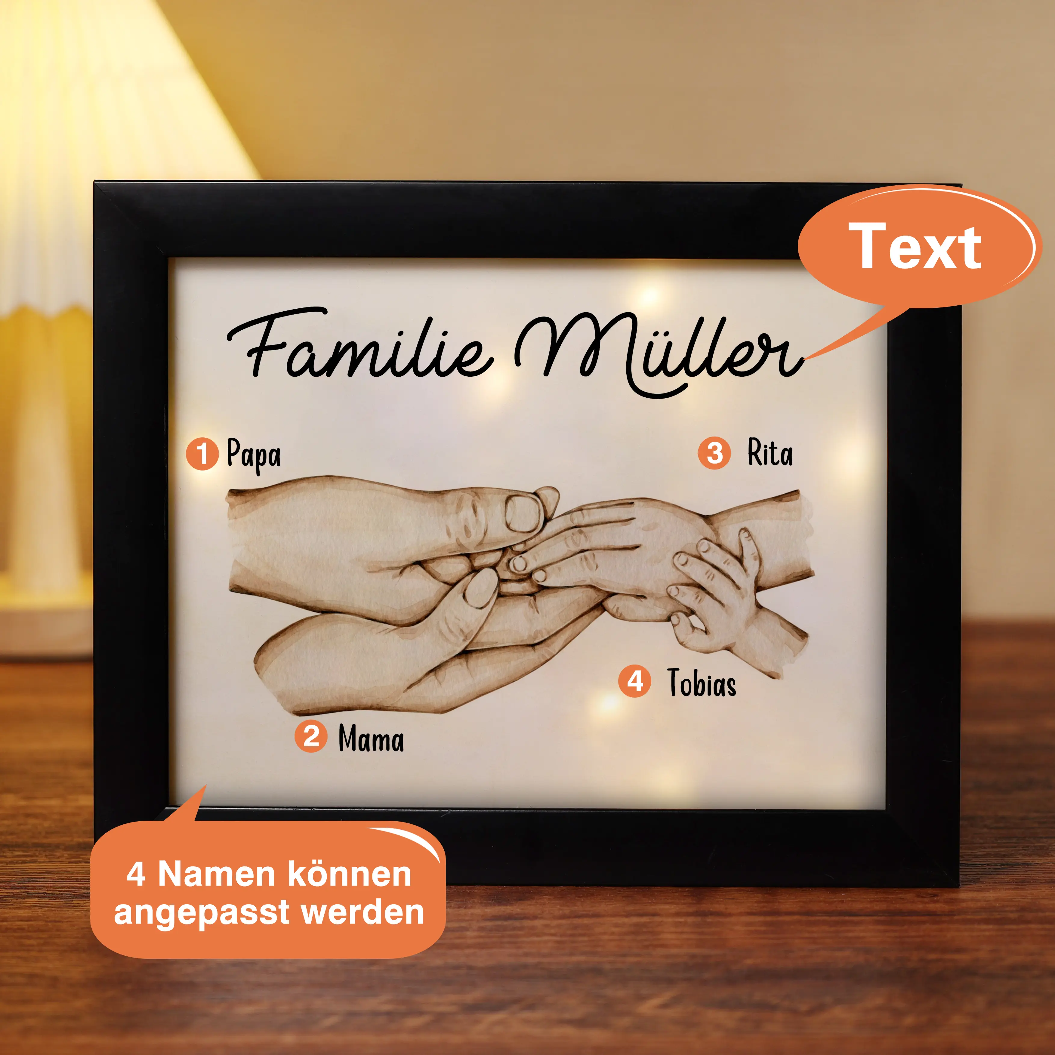 Familie Holzrahmen/Plastikrahmen- Personalisierter 1 Text & 4 Namen Bilderrahmen