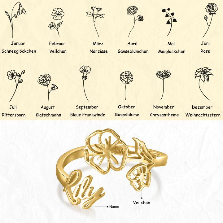 Februar Veilchen Personalisierte Name Ring - Geburtsblume Serie