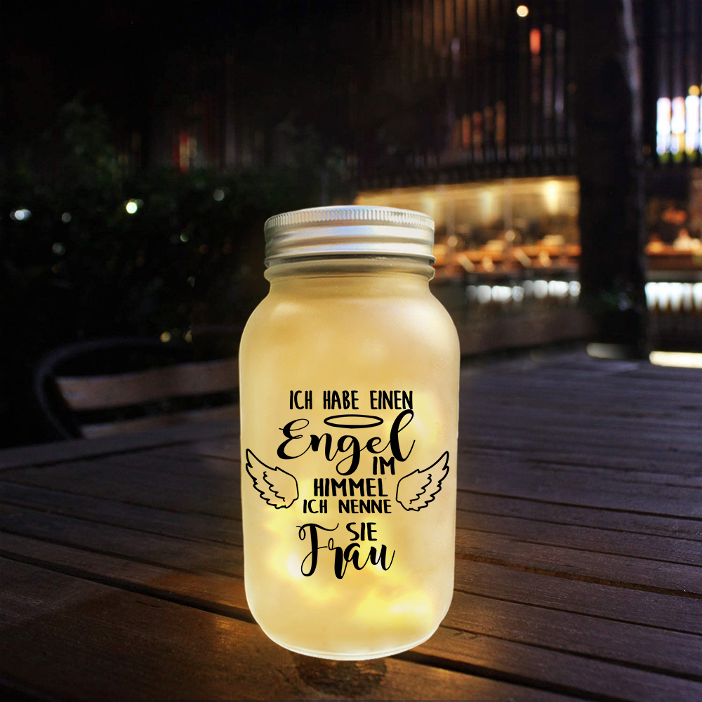 Gedenken Glasflaschen Licht-Iche habe einen Engel im Himmel. Ich nenne sie/ihn Mann/Frau...