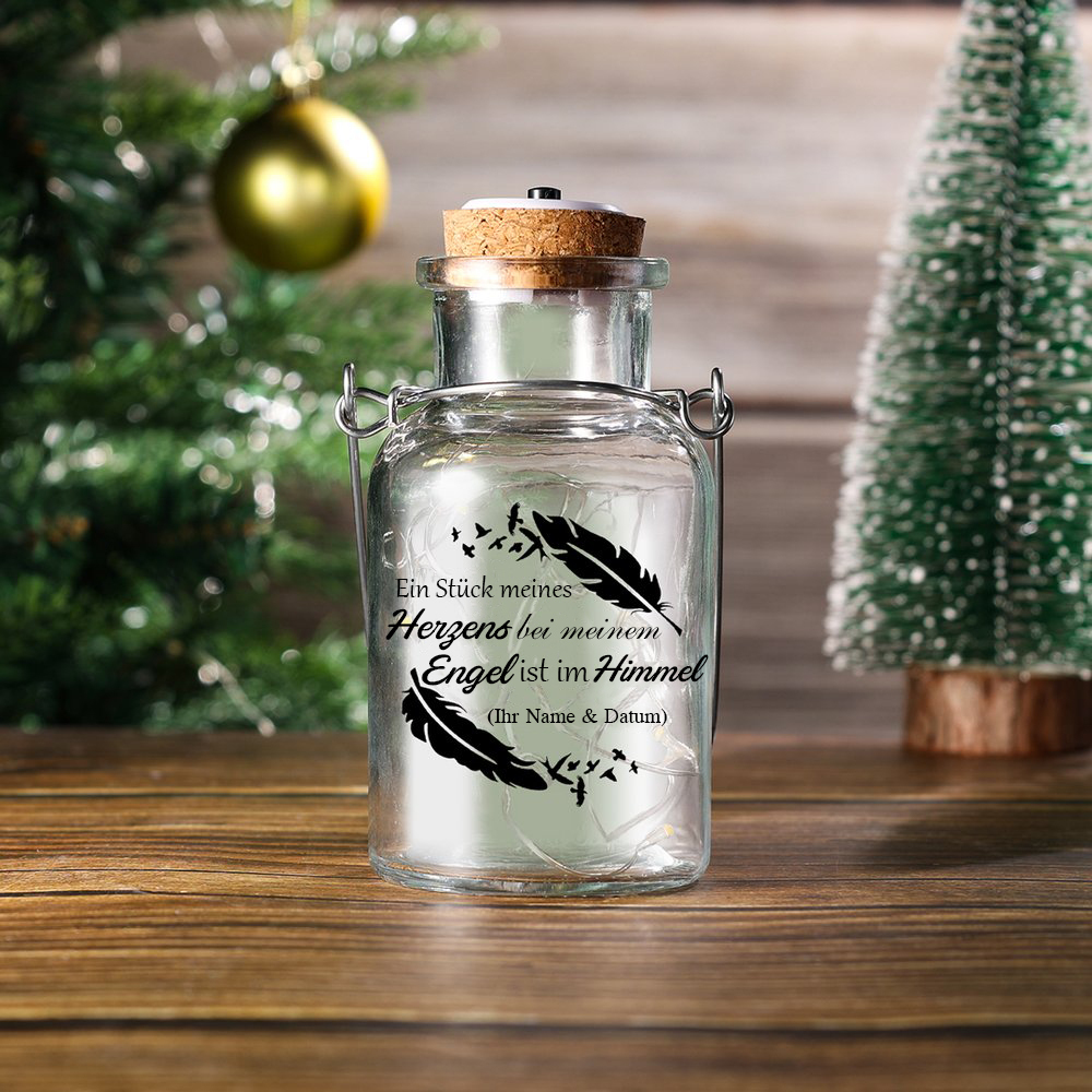 Gedenken Weihnachtsanhänger-Personalisiertes Name & Datum Licht mit Gravur "Ein Stück meines Herzens bei meinem Engel ist im Himmel"