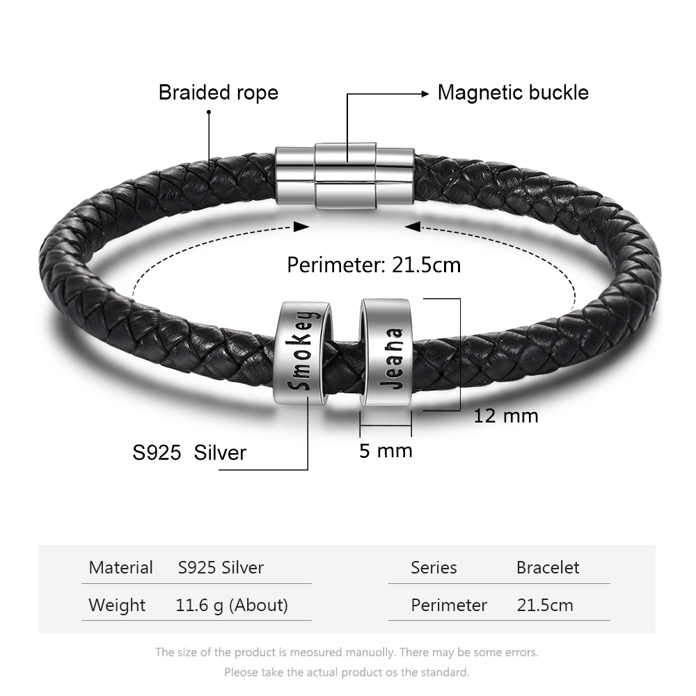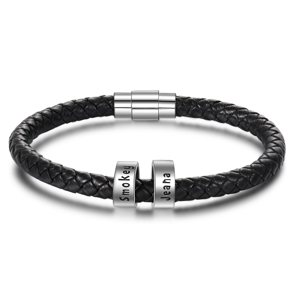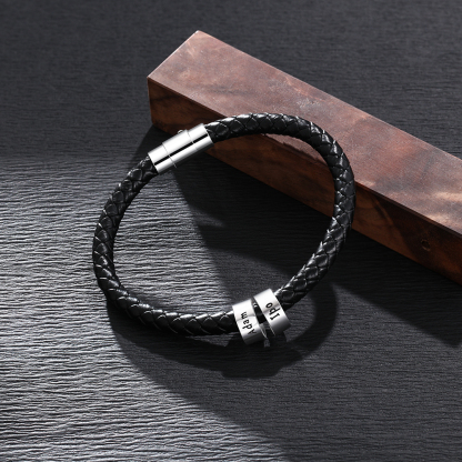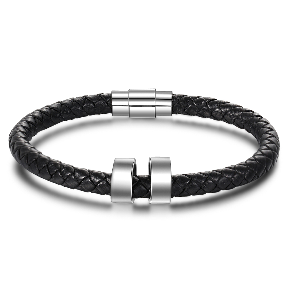 Geflochtenes Herrenarmband mit 2 benutzerdefinierten Perlen schwarzes Herrenarmband