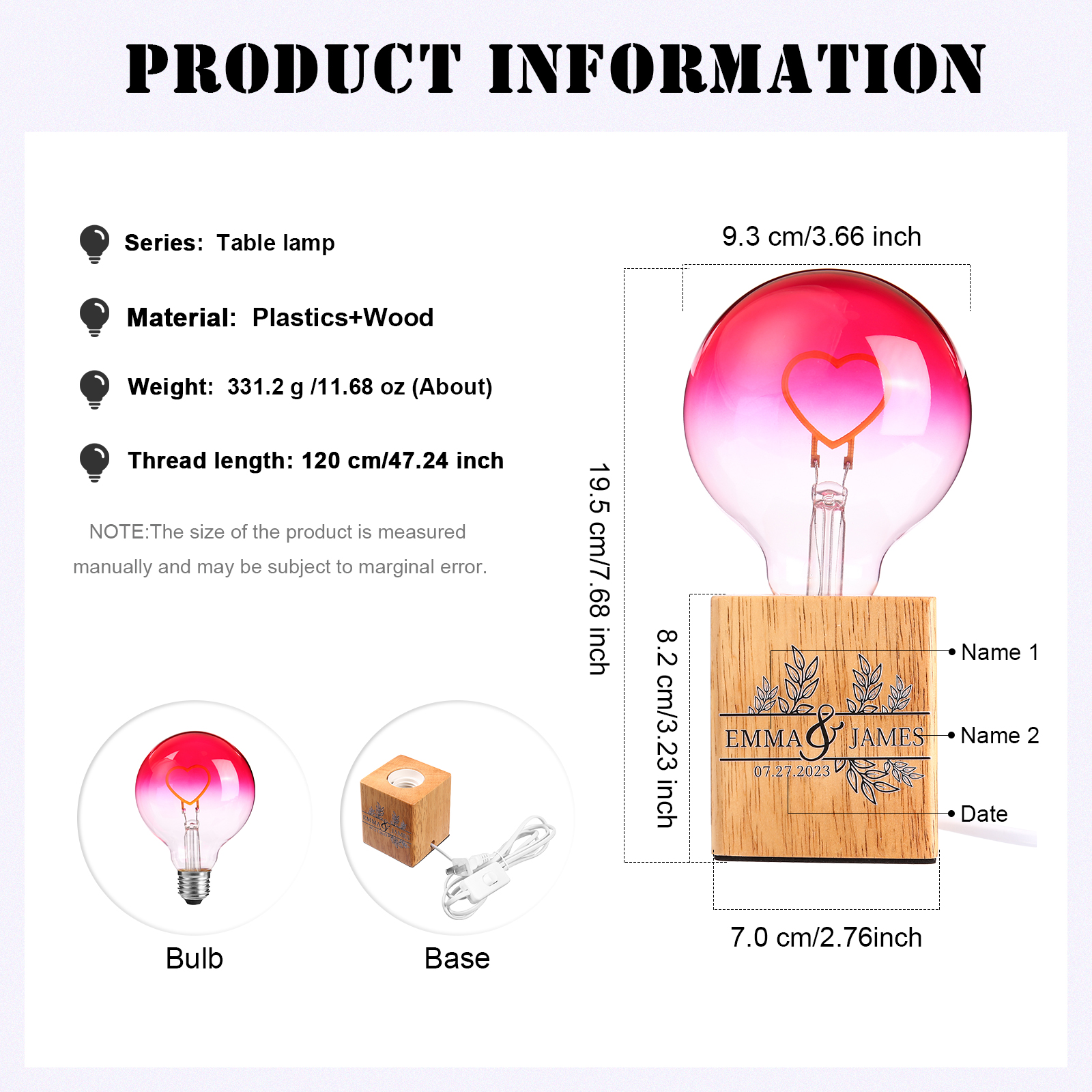 Glühbirne Nachtlicht Personalisierte 2 Namen & Datum Licht Geschenk für Paare