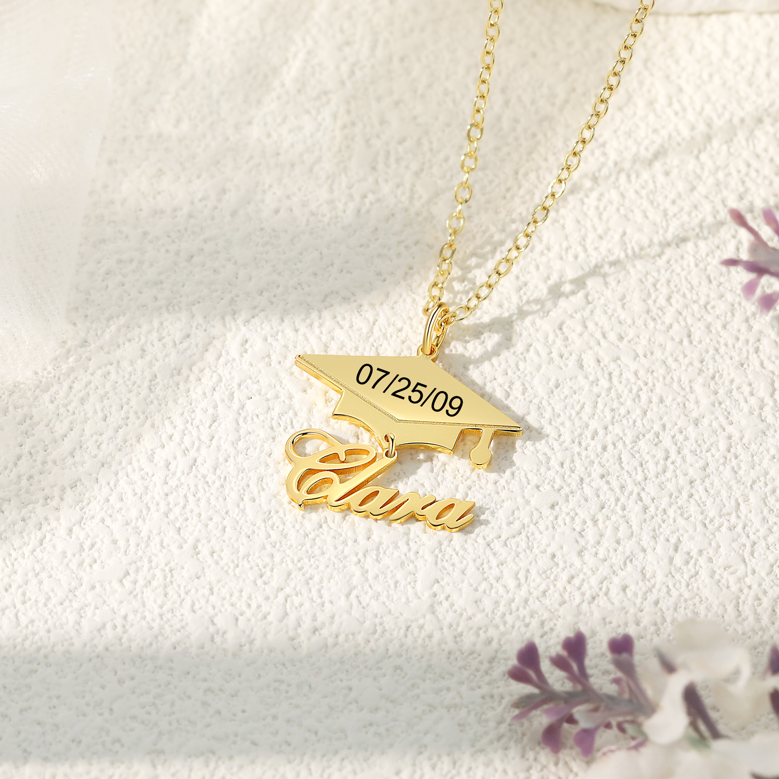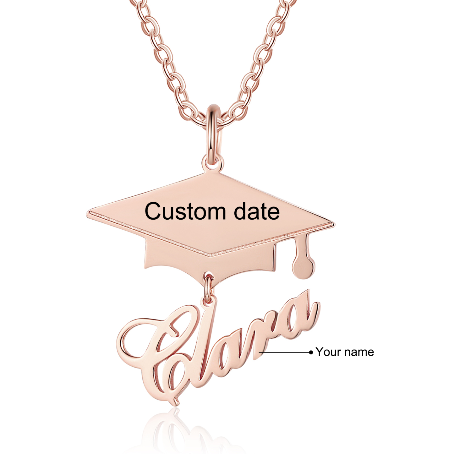 Gravur 1 Name & Datum Bachelor Hut Abitur Halskette zum Abschluss
