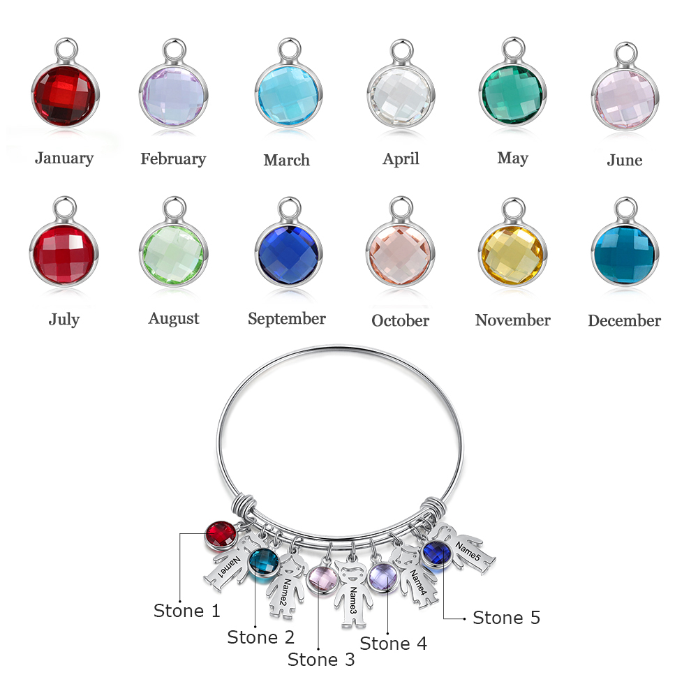 Gravur 5 Namen Kinder-Charms Armband mit 5 Geburtssteinen