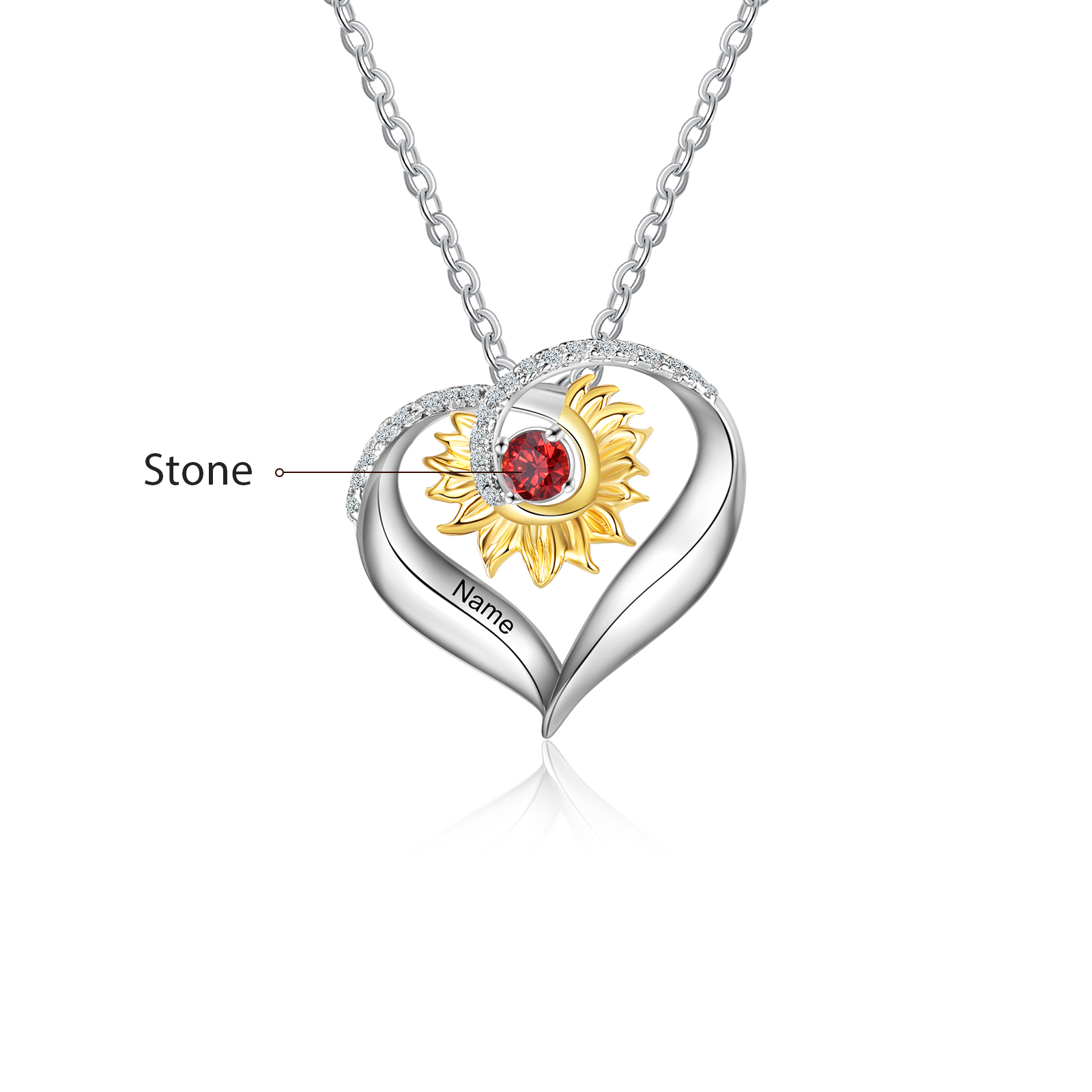 Gravur Name Sonnenblume Halskette mit 1 Geburtsstein