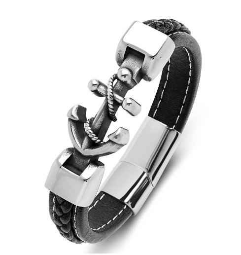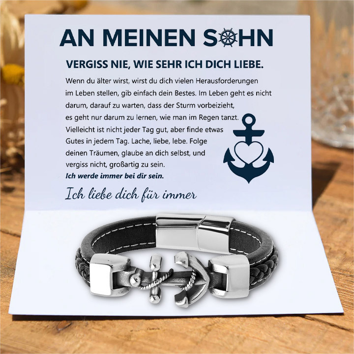 Herren Anker Leder Schwarz Armband-An meinen Sohn Glaube an dich selbst-Geschenk mit Nachrichtenkarte