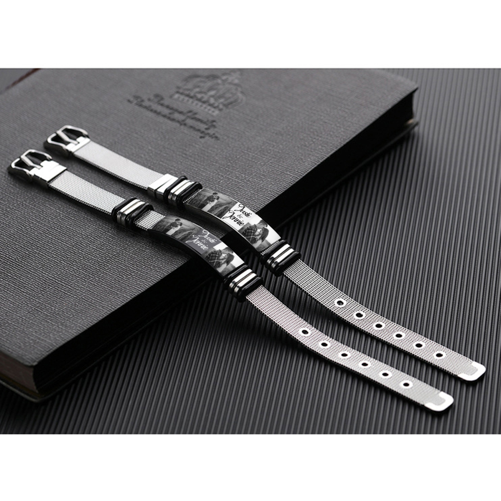 Herren Gravur 2 Namen & 2 Fotos Edelstahl Armband