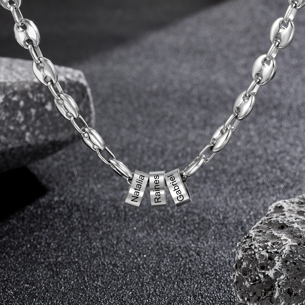 Herren Gravur 5 Namen Silber Ring Halskette mit Kaffeebohne Kette