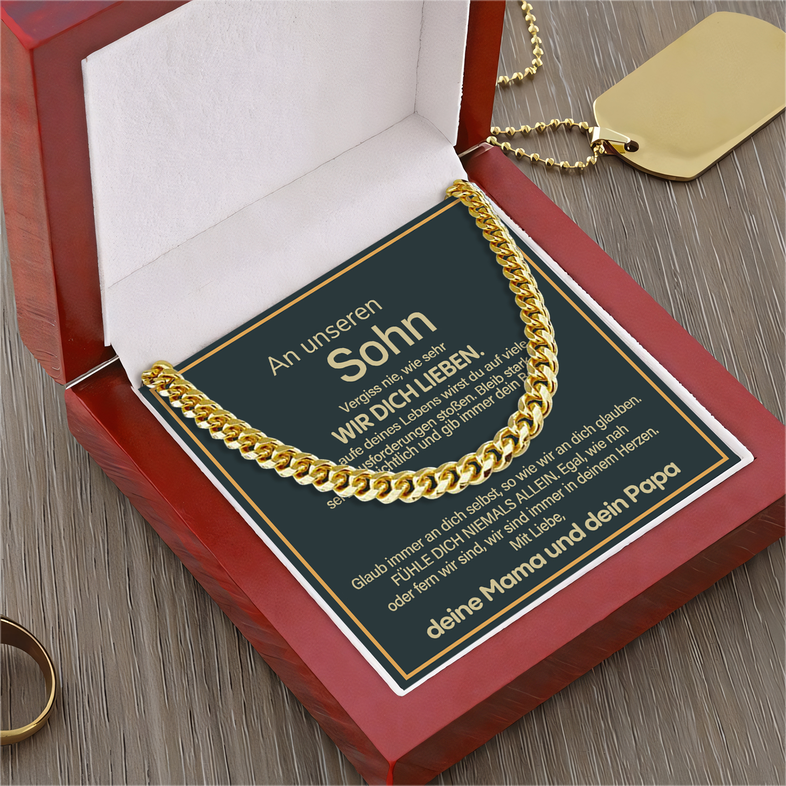 Herren Halskette - An Unseren Sohn Vergiss nie, wie sehr wir dich lieben - Geschenk mit Nachrichtenkarte