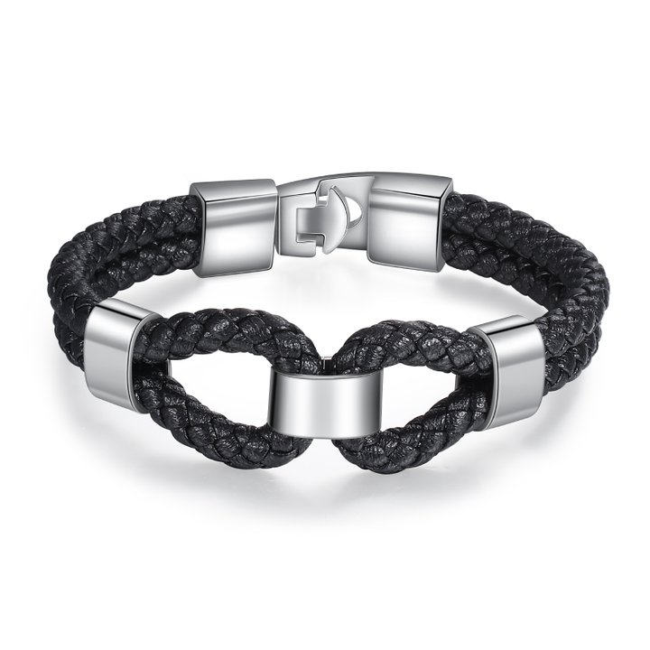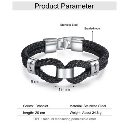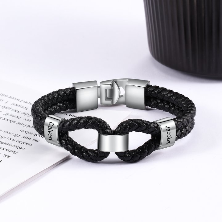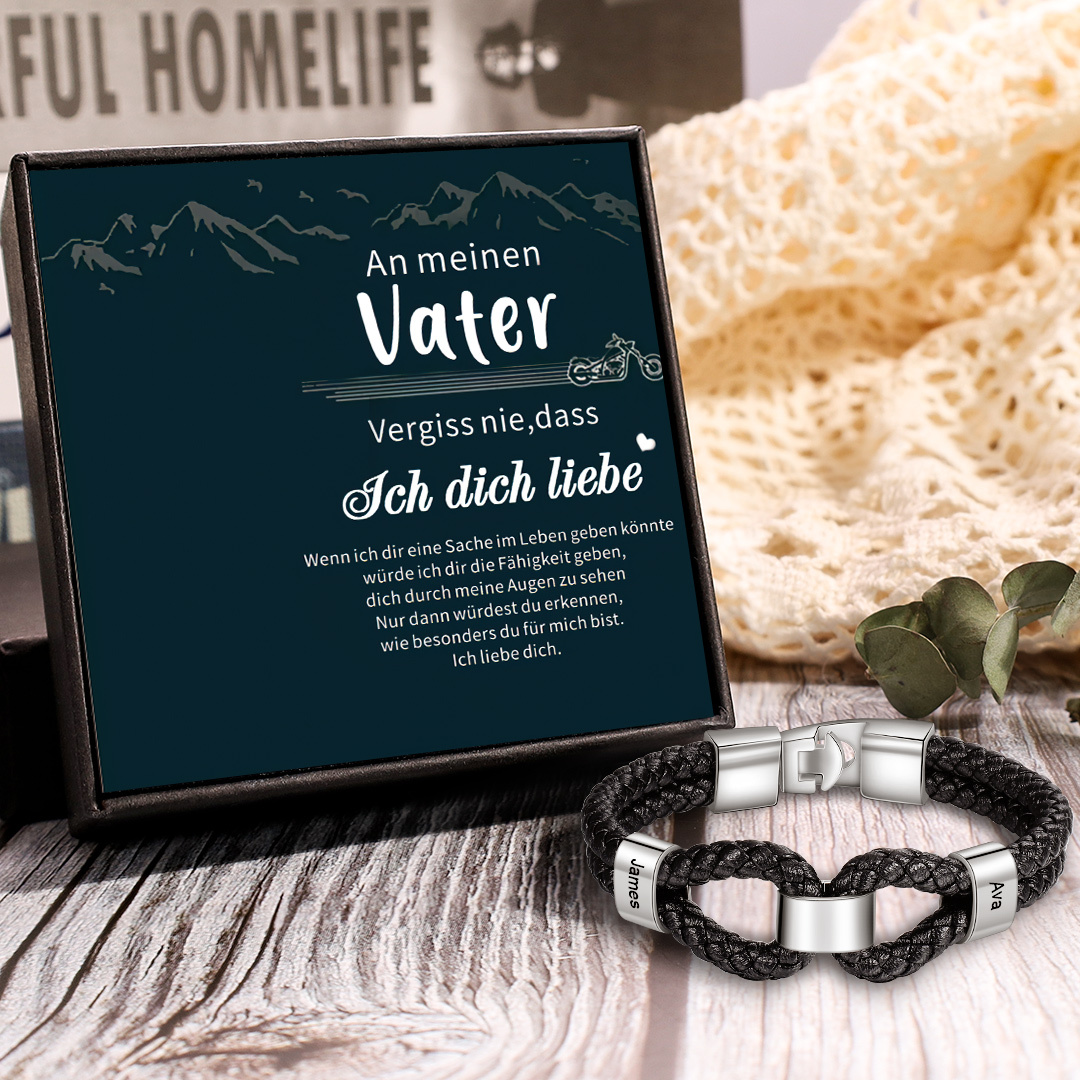 Herren Personalisierte 2 Namen Geflochtenes Leder Armband - Vatertag Geschenk mit Nachrichtenkarte für Papa