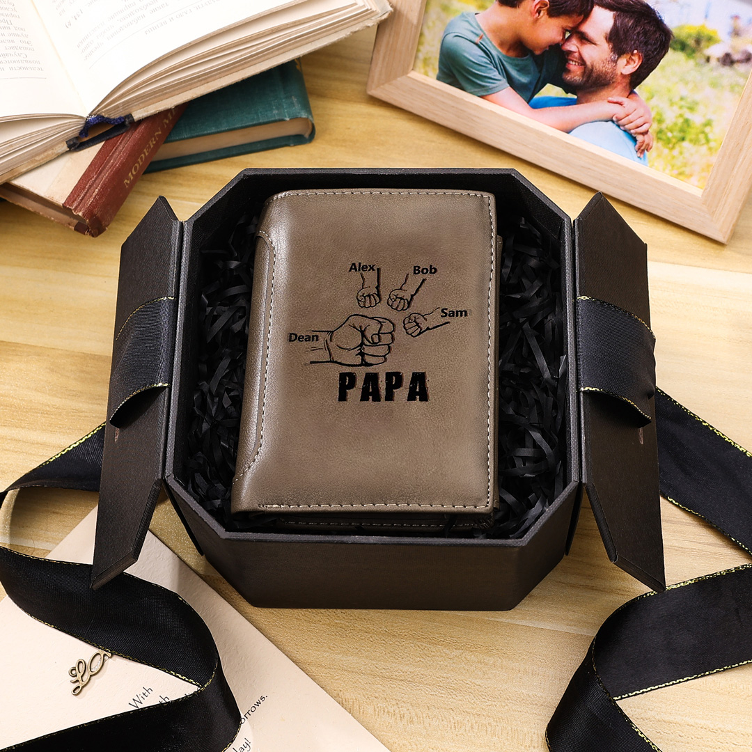 Herren Personalisierte 4 Namen & Text Leder Papa und Kinder Geldbörse Geschenk für Vater