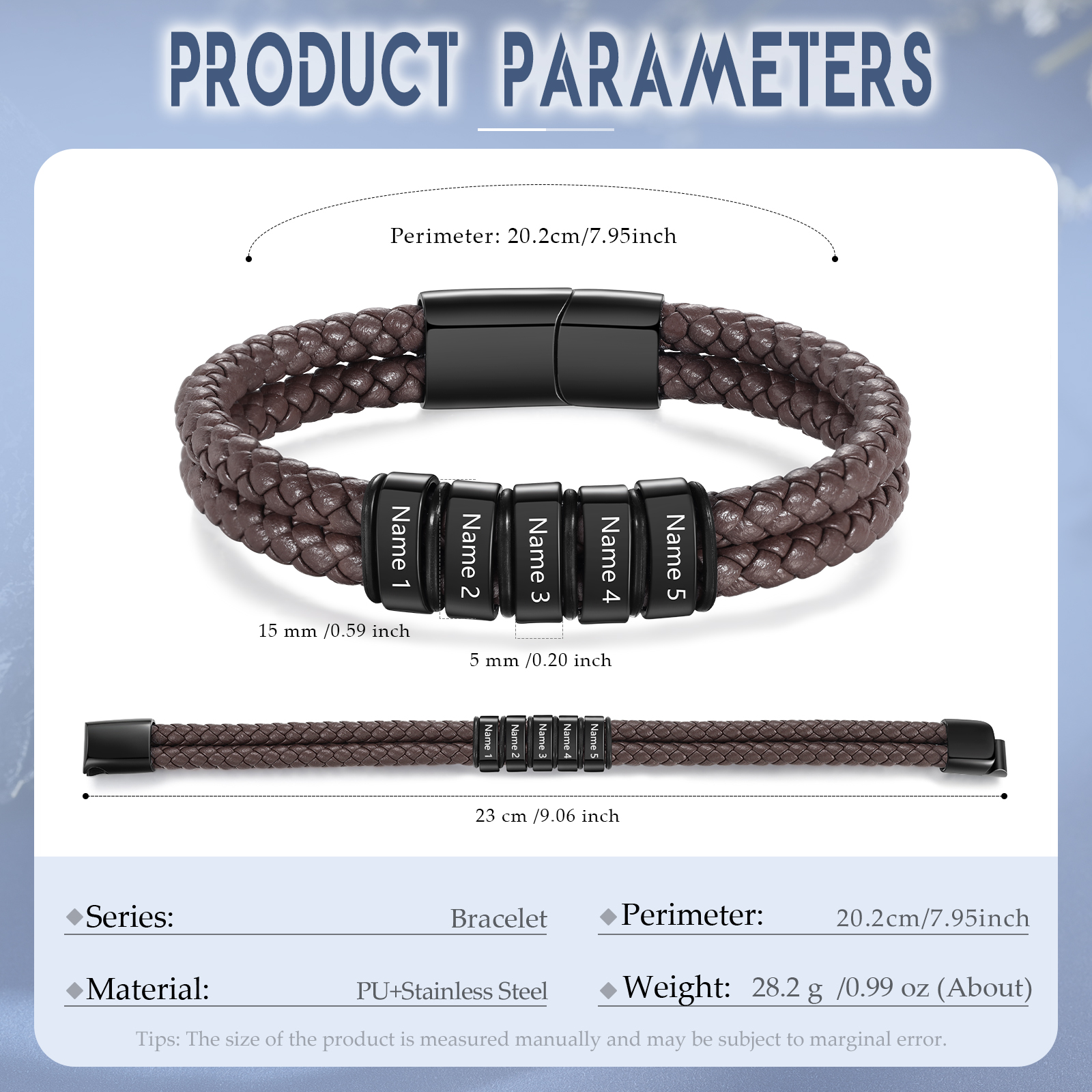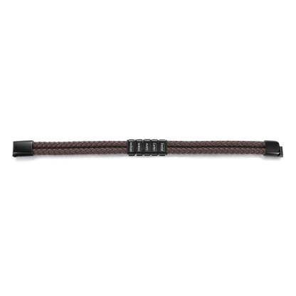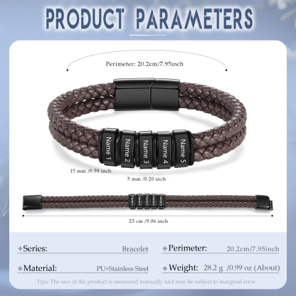 Herren Personalisierte 5 Namen Edelstahl Perle Braun Doppellagiges geflochtenes Leder Armband