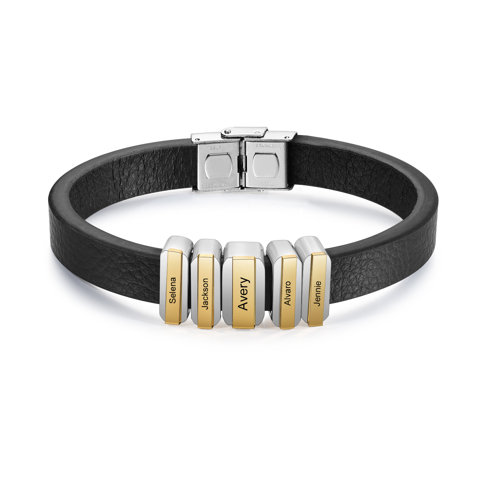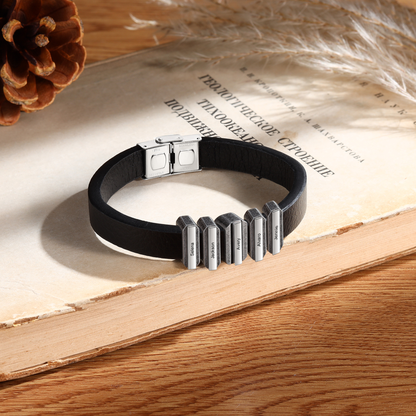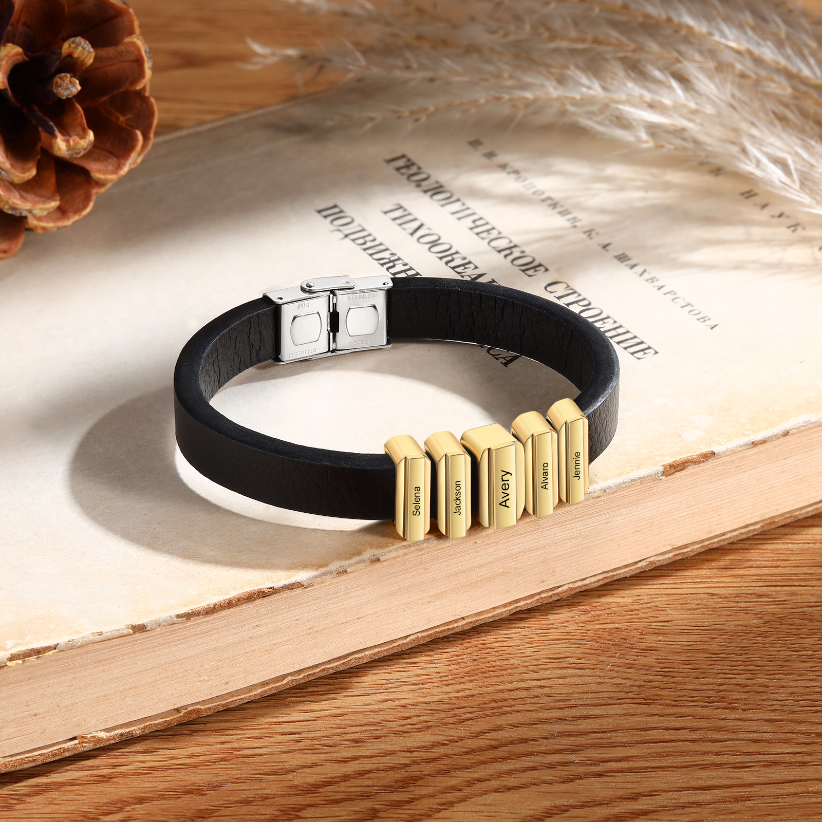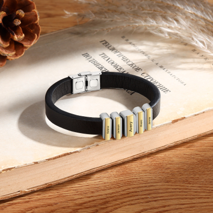 Herren Personalisierte 5 Namen Vintage Edelstahl Perle Leder Armband