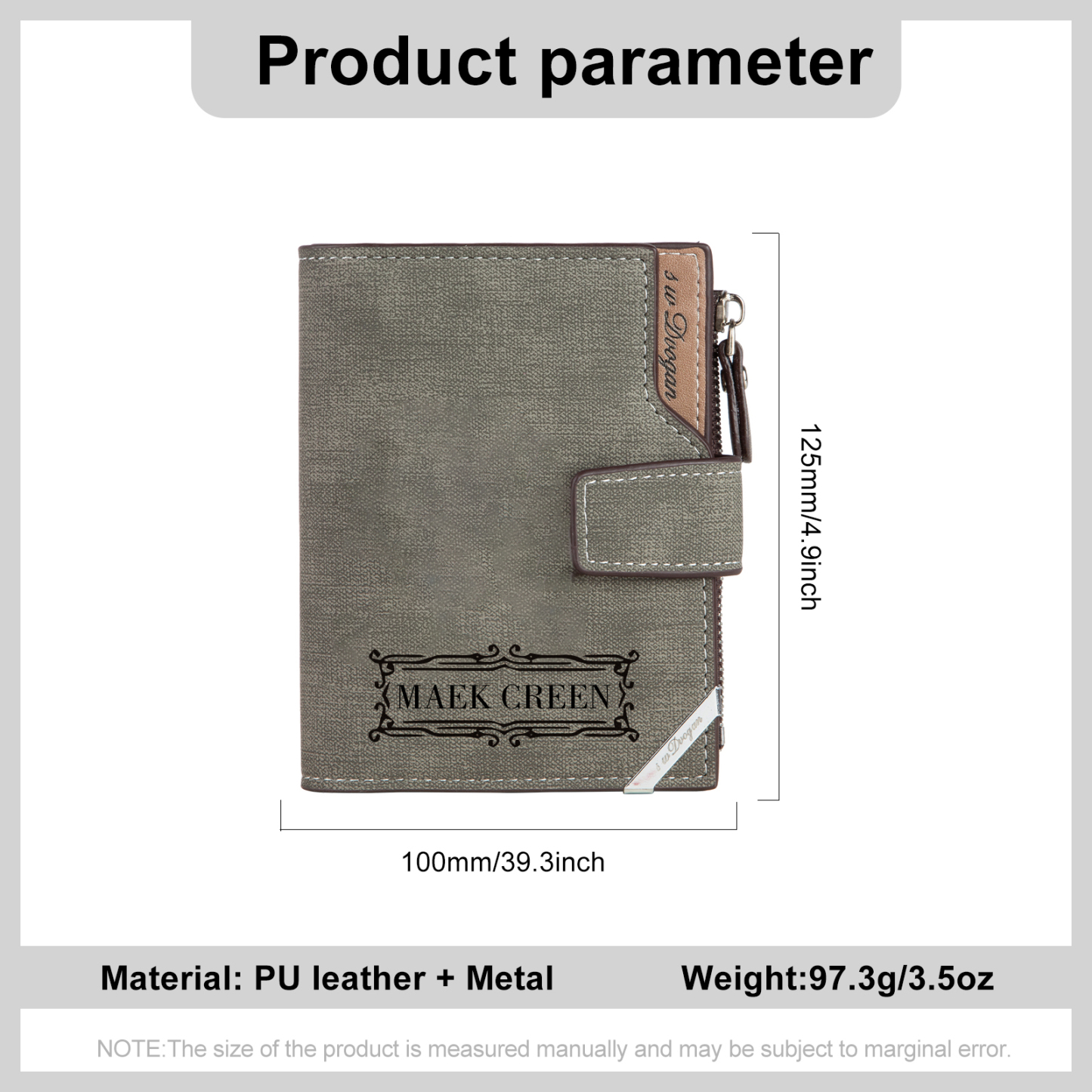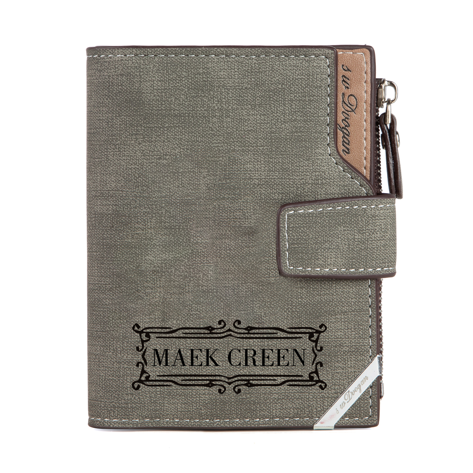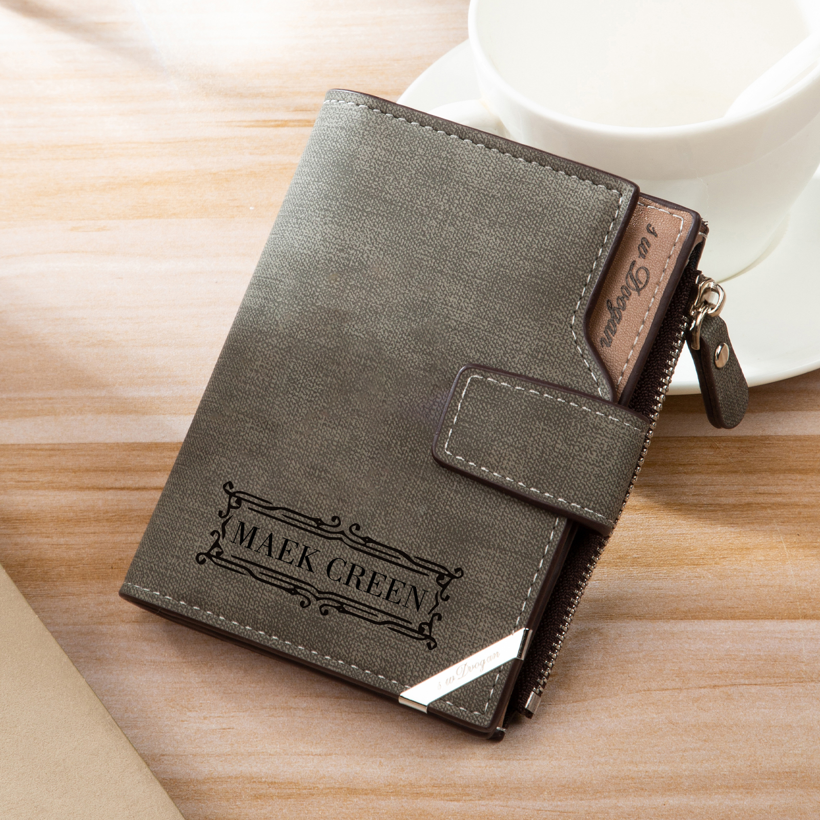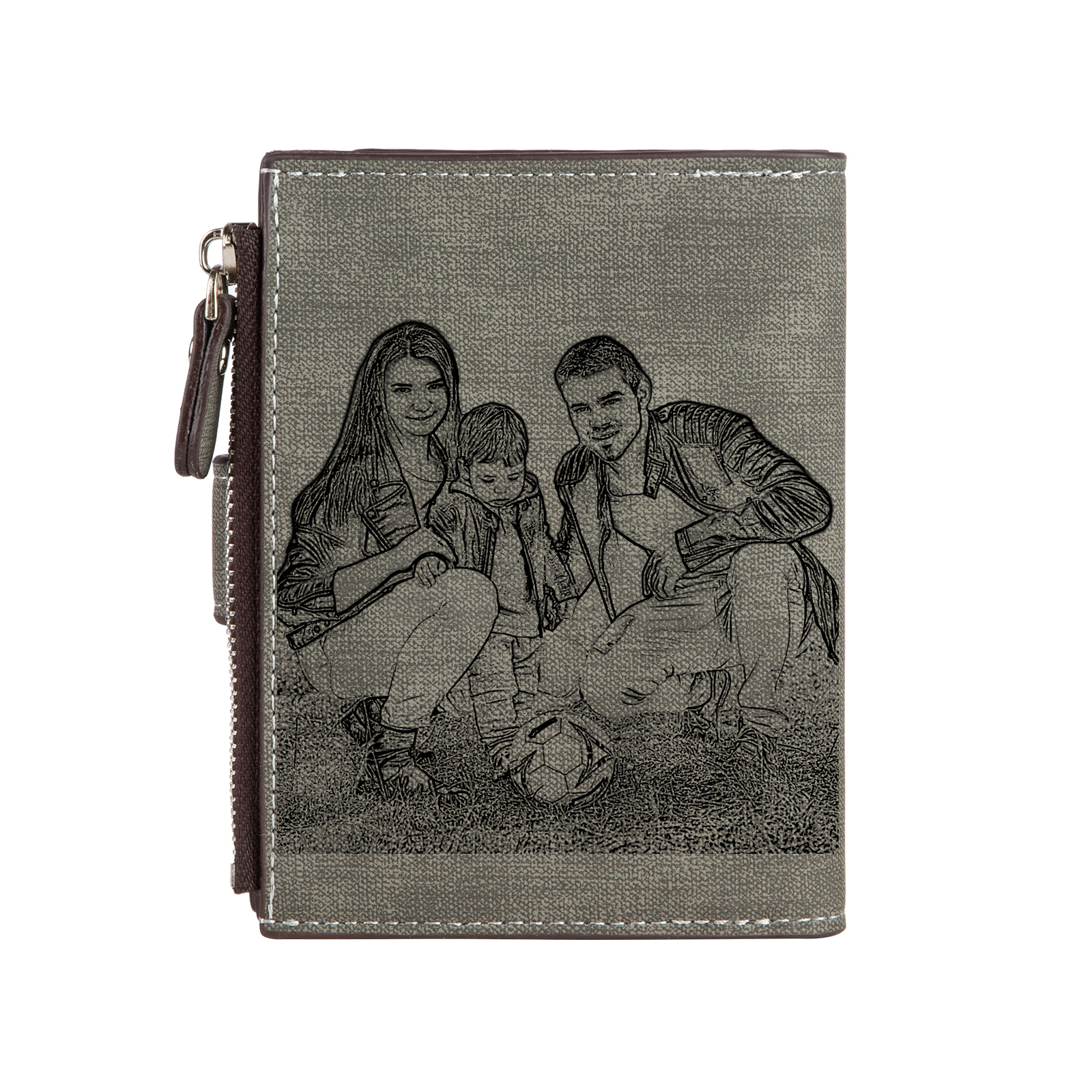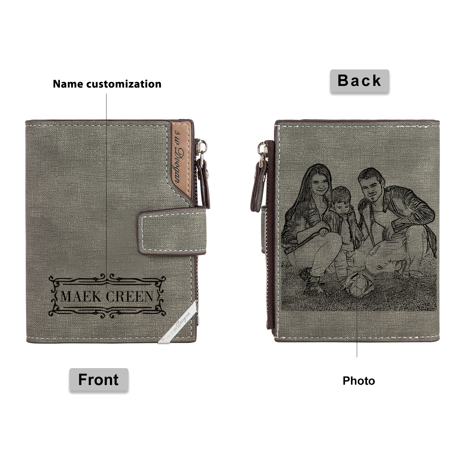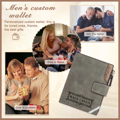 Herren Personalisierte Foto & Name PU Leder Geldbörse mit Reißverschluss