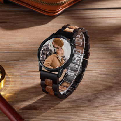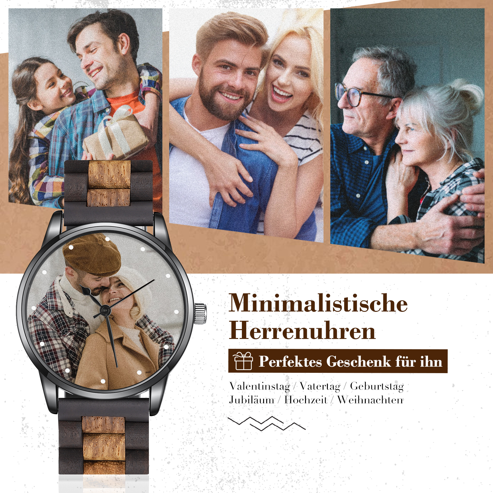 Herren Personalisierte Foto & Text Leder Armbanduhr - Vatertag Geschenk