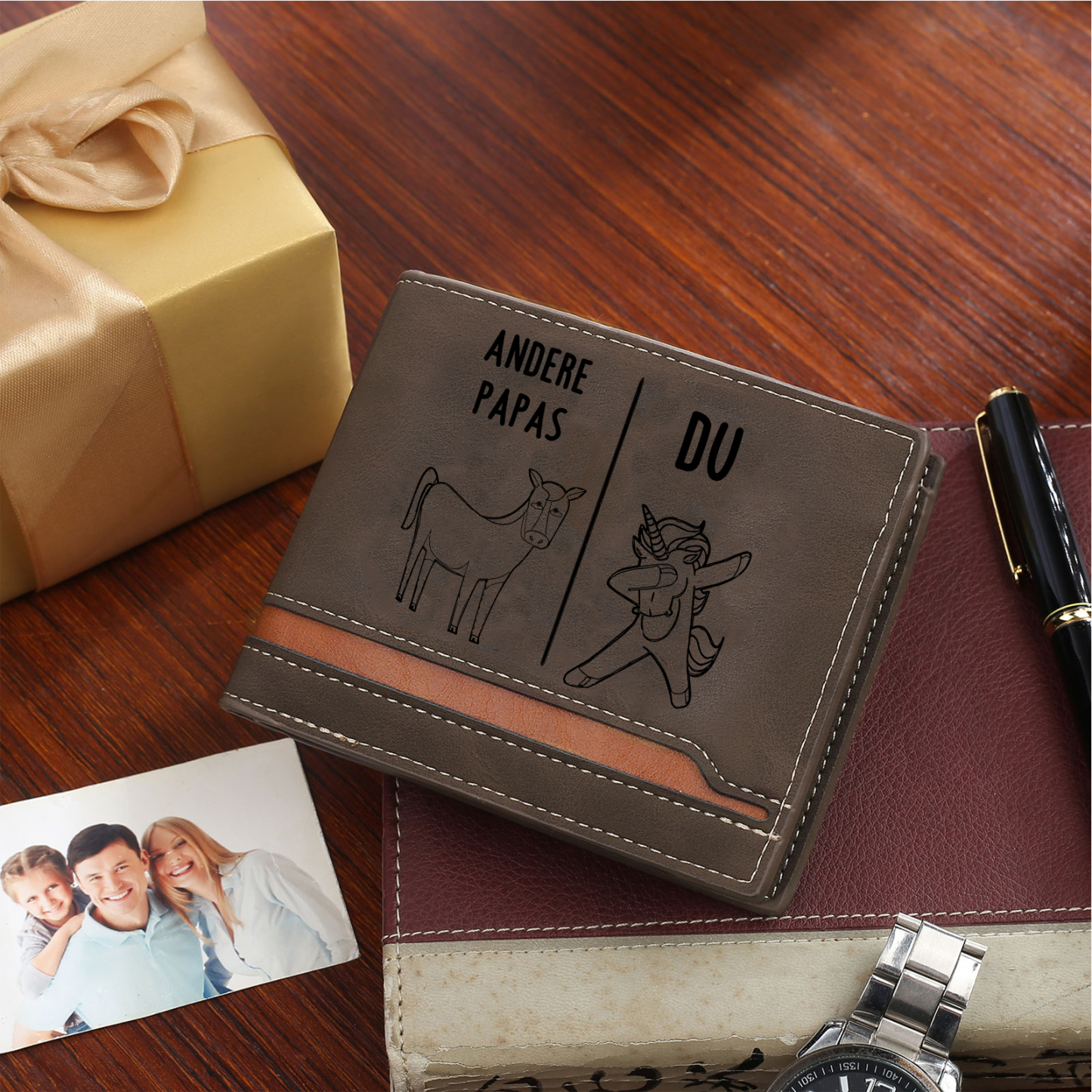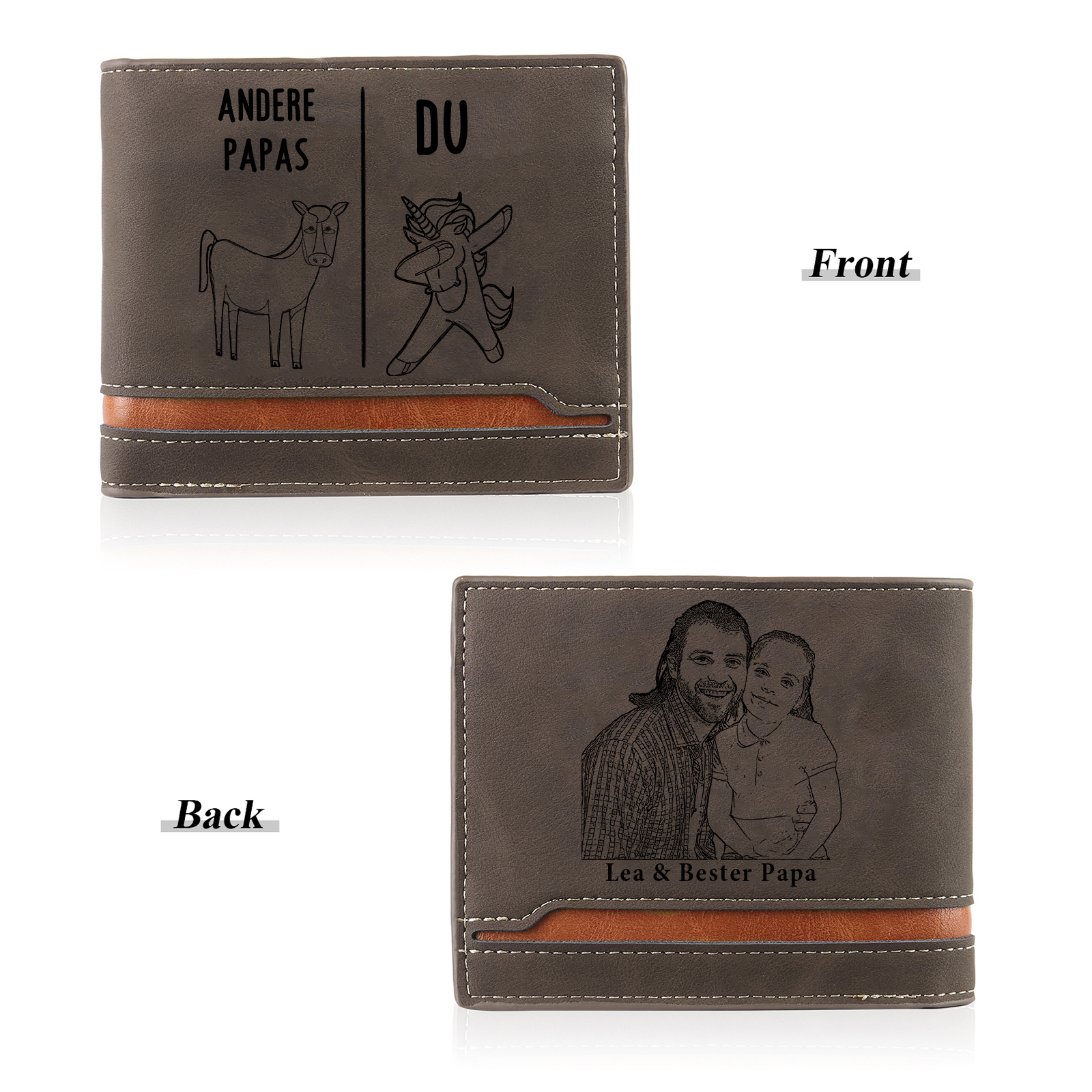 Herren Personalisierter Text & Foto Leder Andere Papas vs Du Geldbörse Geschenk für Vater
