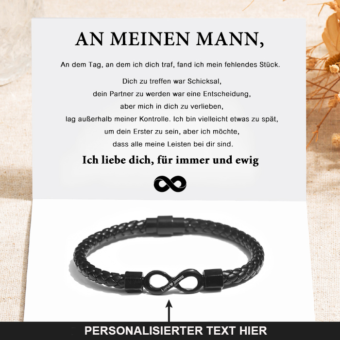 Herren Personalisierter Text Infinity Leder Armband- An Meinen Mann Ich liebe dich, für immer und ewig-Geschenk mit Nachrichtenkarte