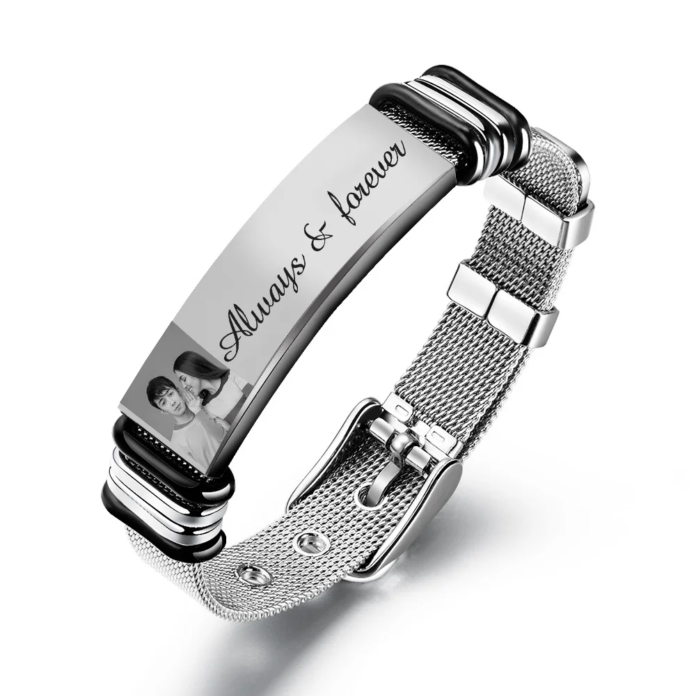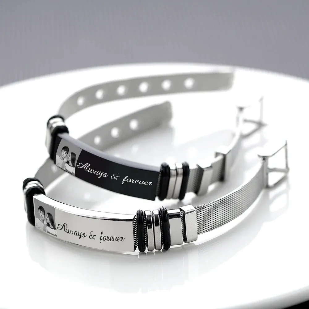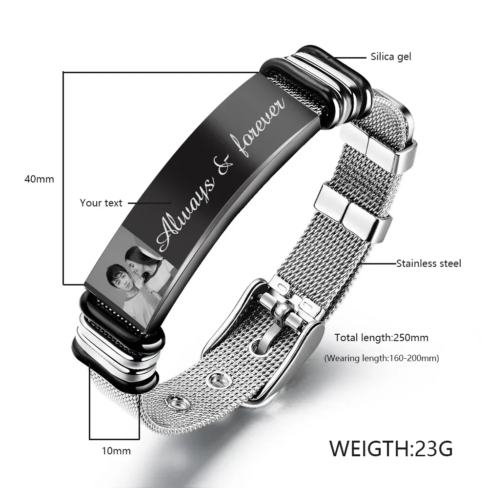 Herren Personalisiertes 1 Text & 1 Foto Edelstahl Armband