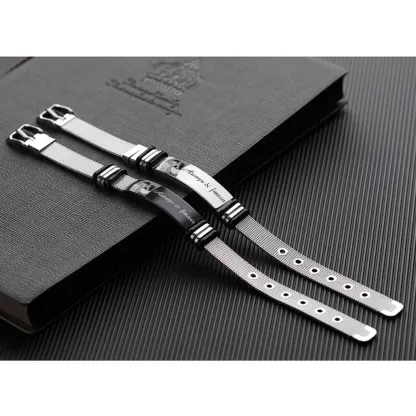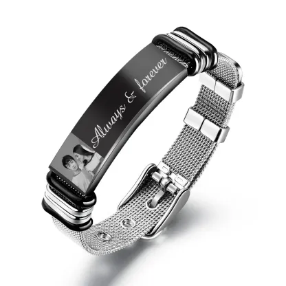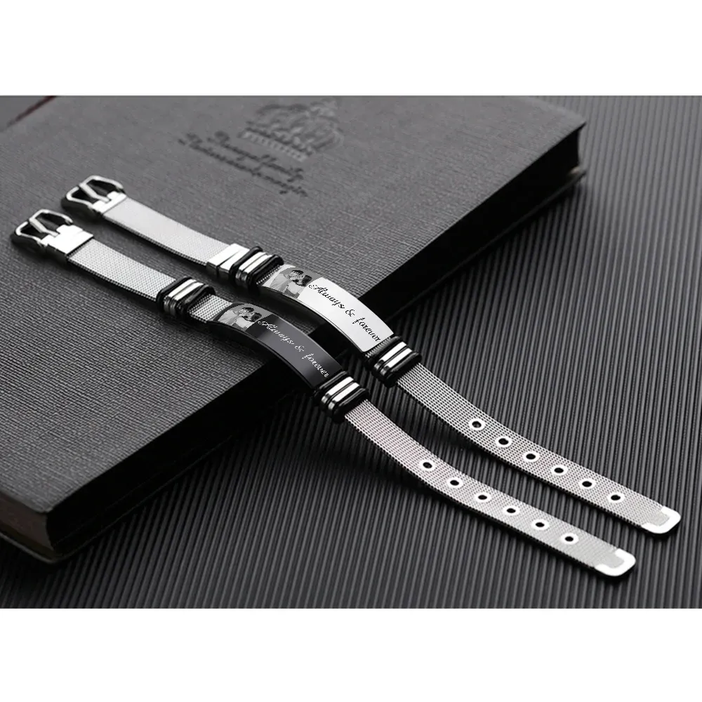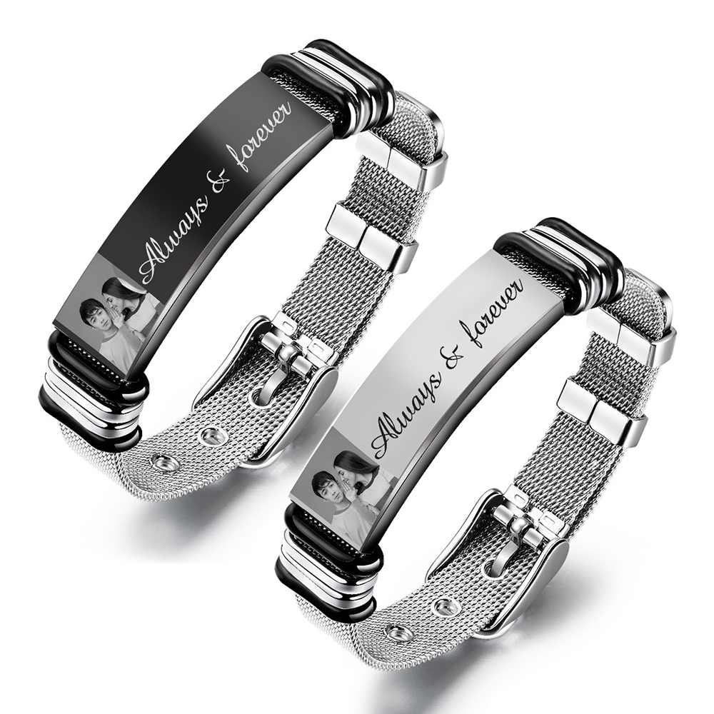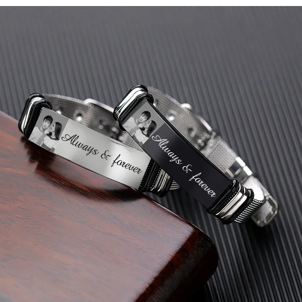 Herren Personalisiertes 1 Text & 1 Foto Edelstahl Armband