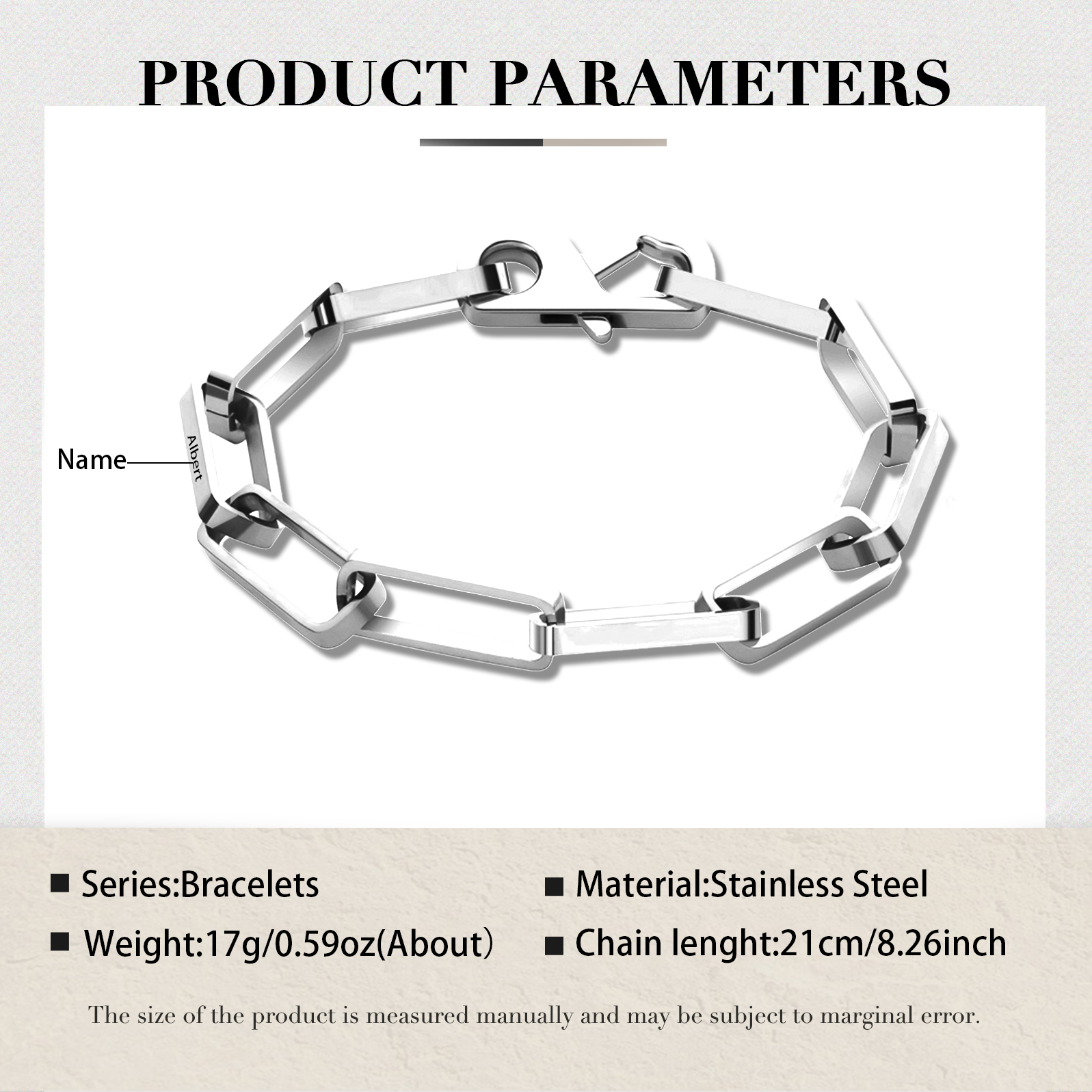 Herren Schmuck-Personalisierter 1 Name Edelstahl Kabel Kette Armband Grundlegendes stapelbares Armband