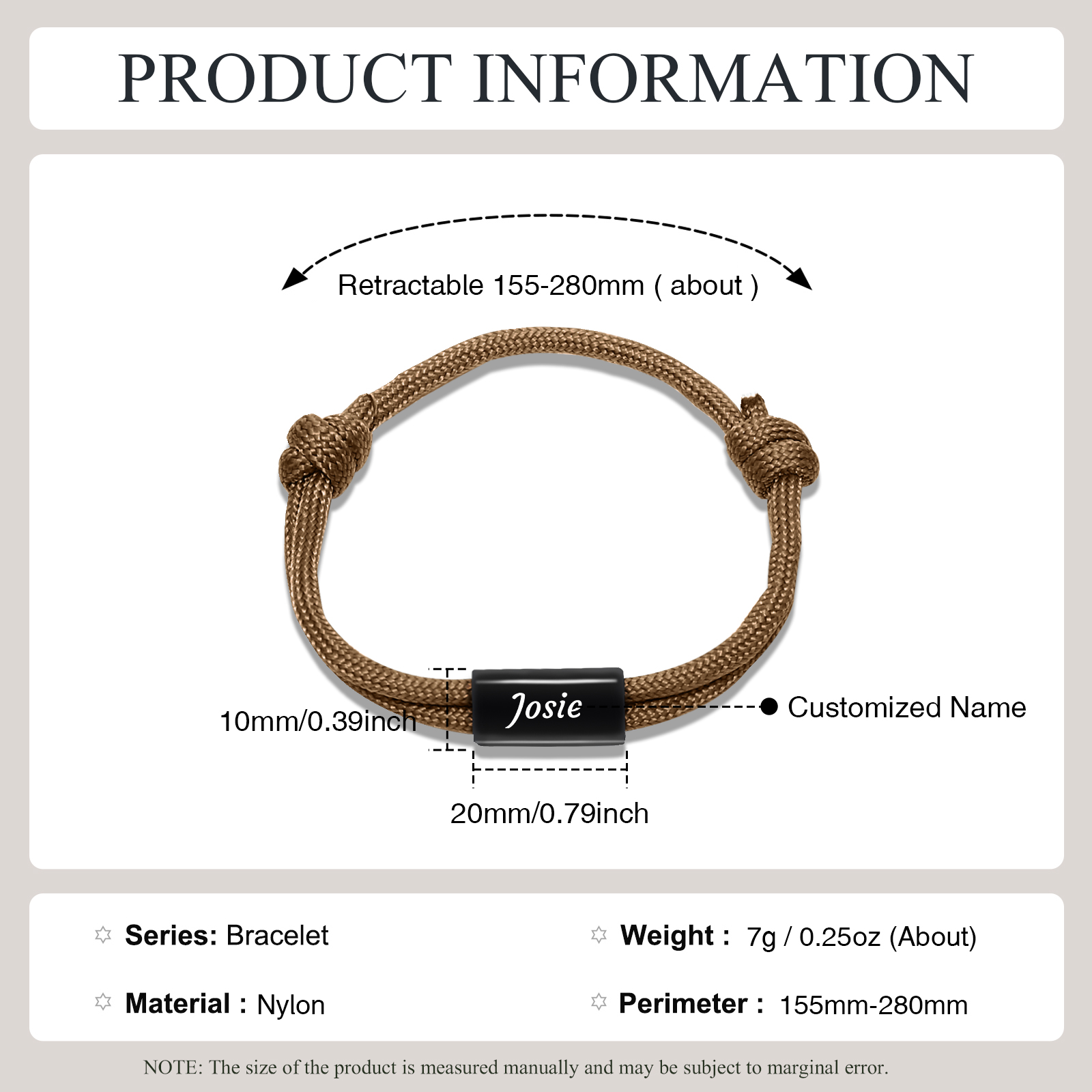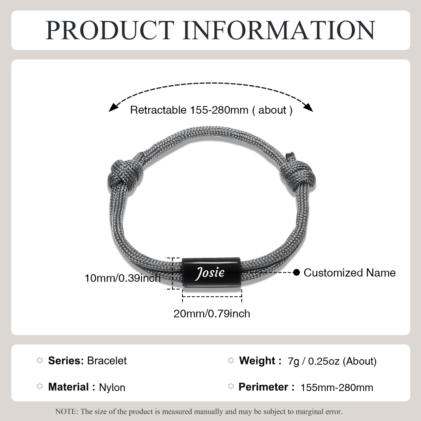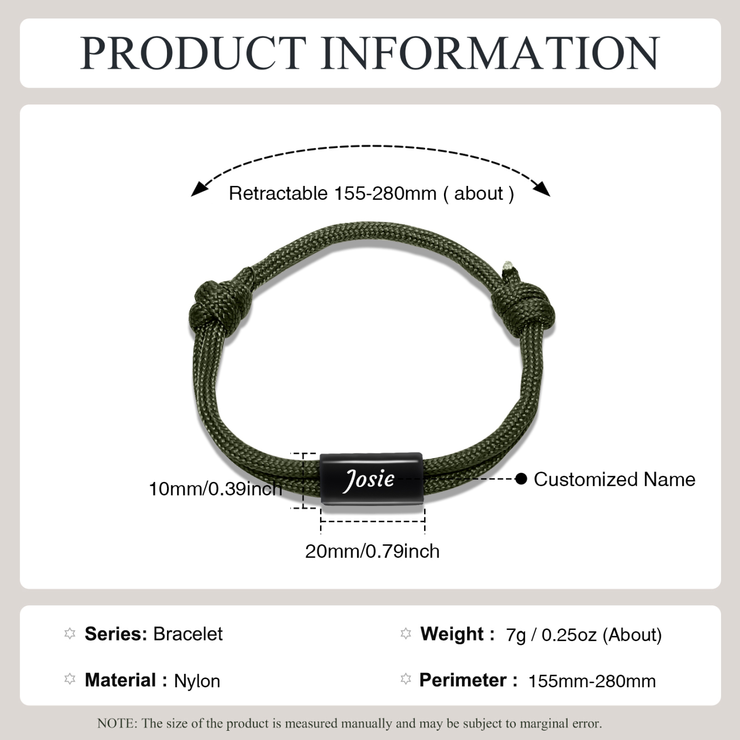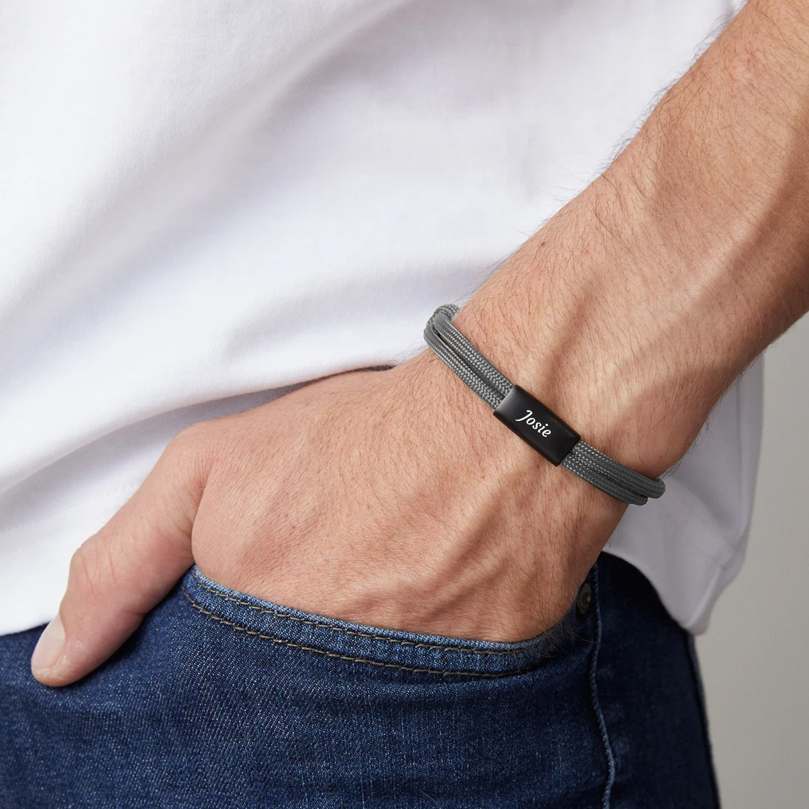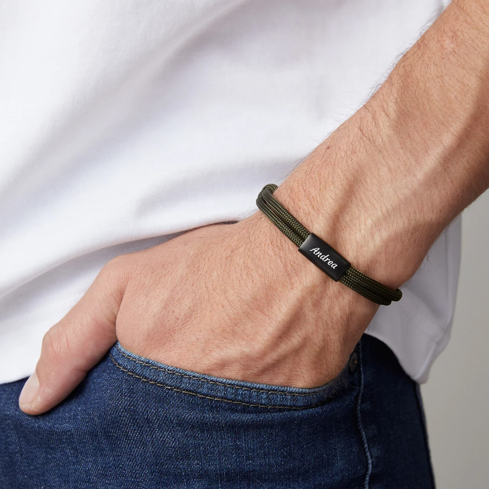 Herren Schmuck-Personalisierter 1 Name Edelstahl Perlen Armband mit Nylon Kette