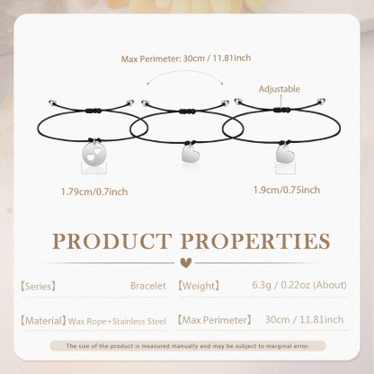 Herz Armbänder Set mit 3 Ketten- Für das Schulkind-Schulanfang Geschenk mit Nachrichtenkarte