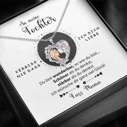 Herz Blumen Halskette mit Zirkonia -Tochter ♡ Mutter - An meine Tochter von Mama - Geschenk mit Nachrichtenkarte