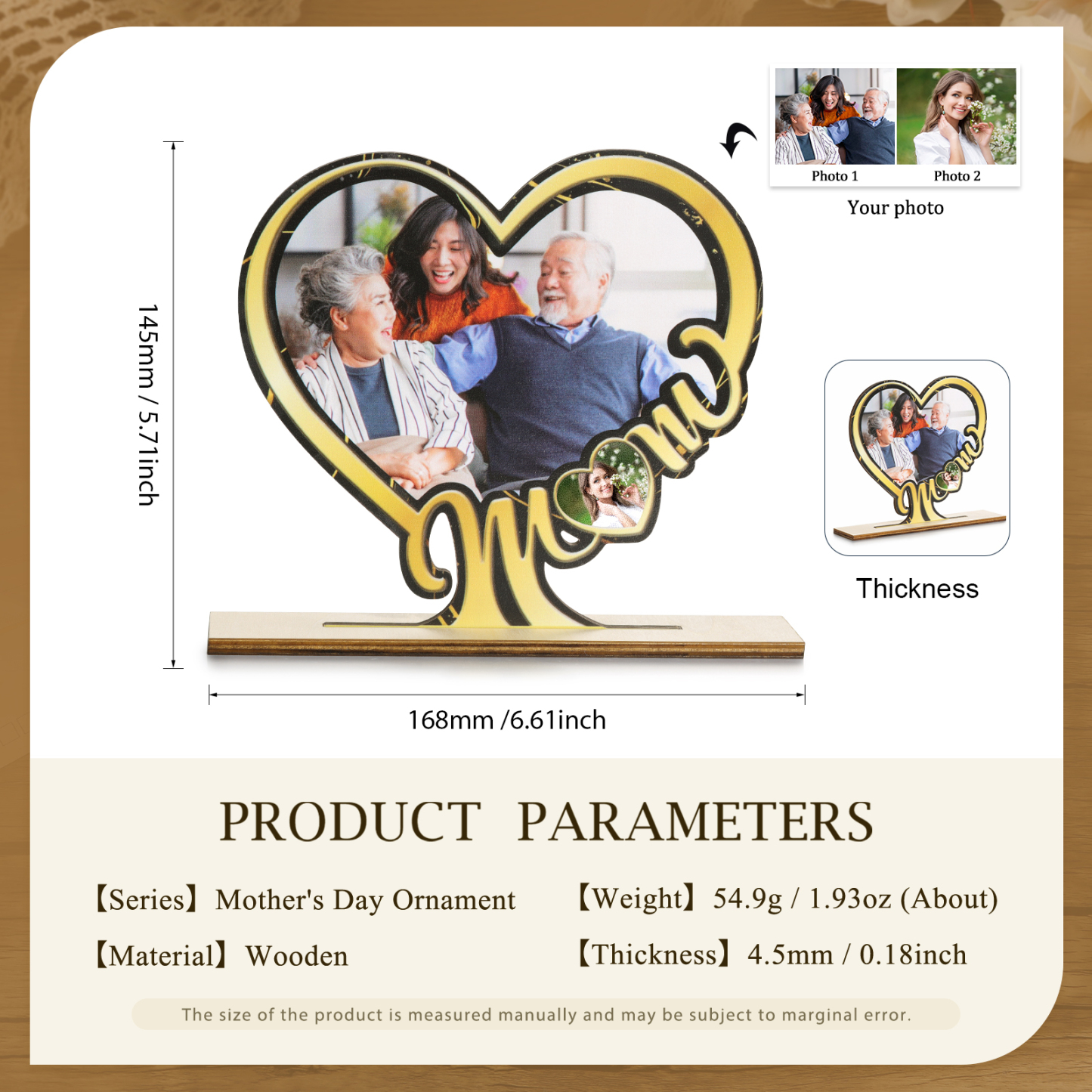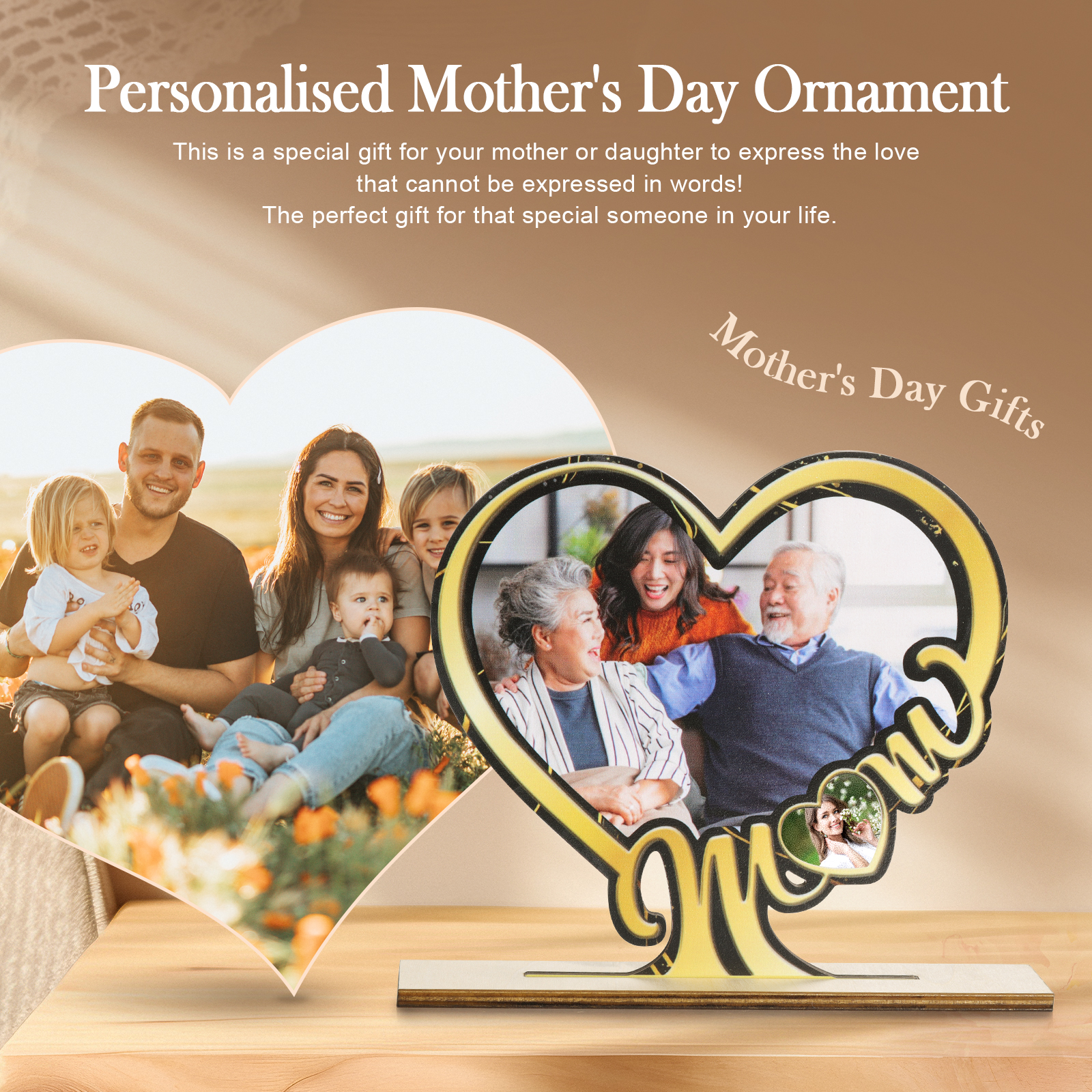 Herz Holz Deko-Personalisierbare 2 Fotos MOM Ornament für Mutter-Holzdekoration