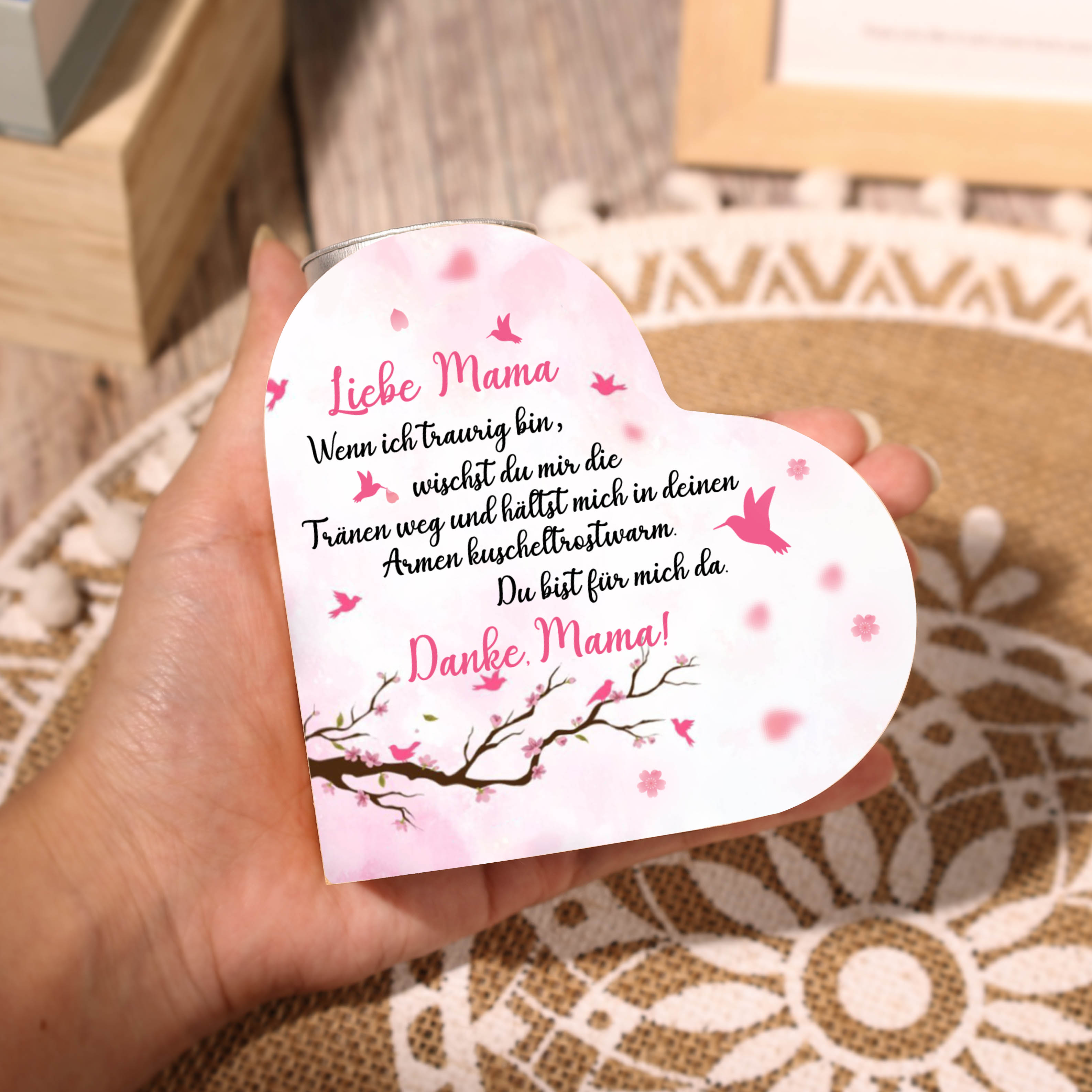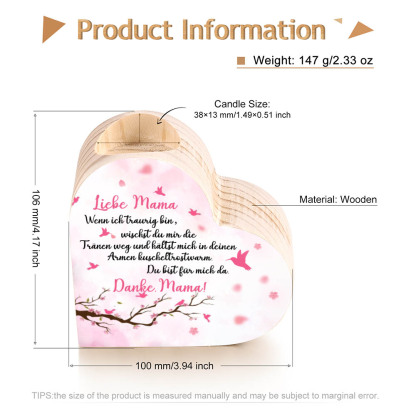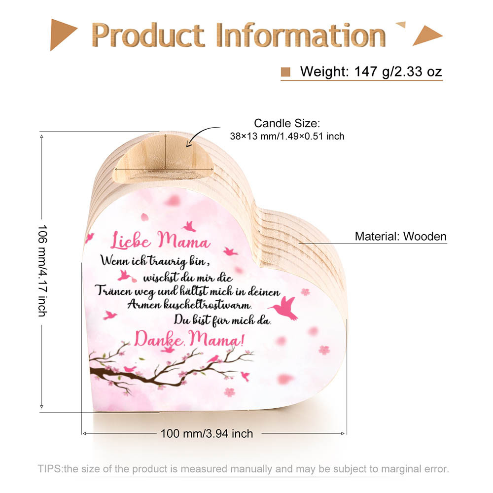 Herzform Kerzenhalter-Danke Mama Du bist für mich da-Geschenk für Mutter